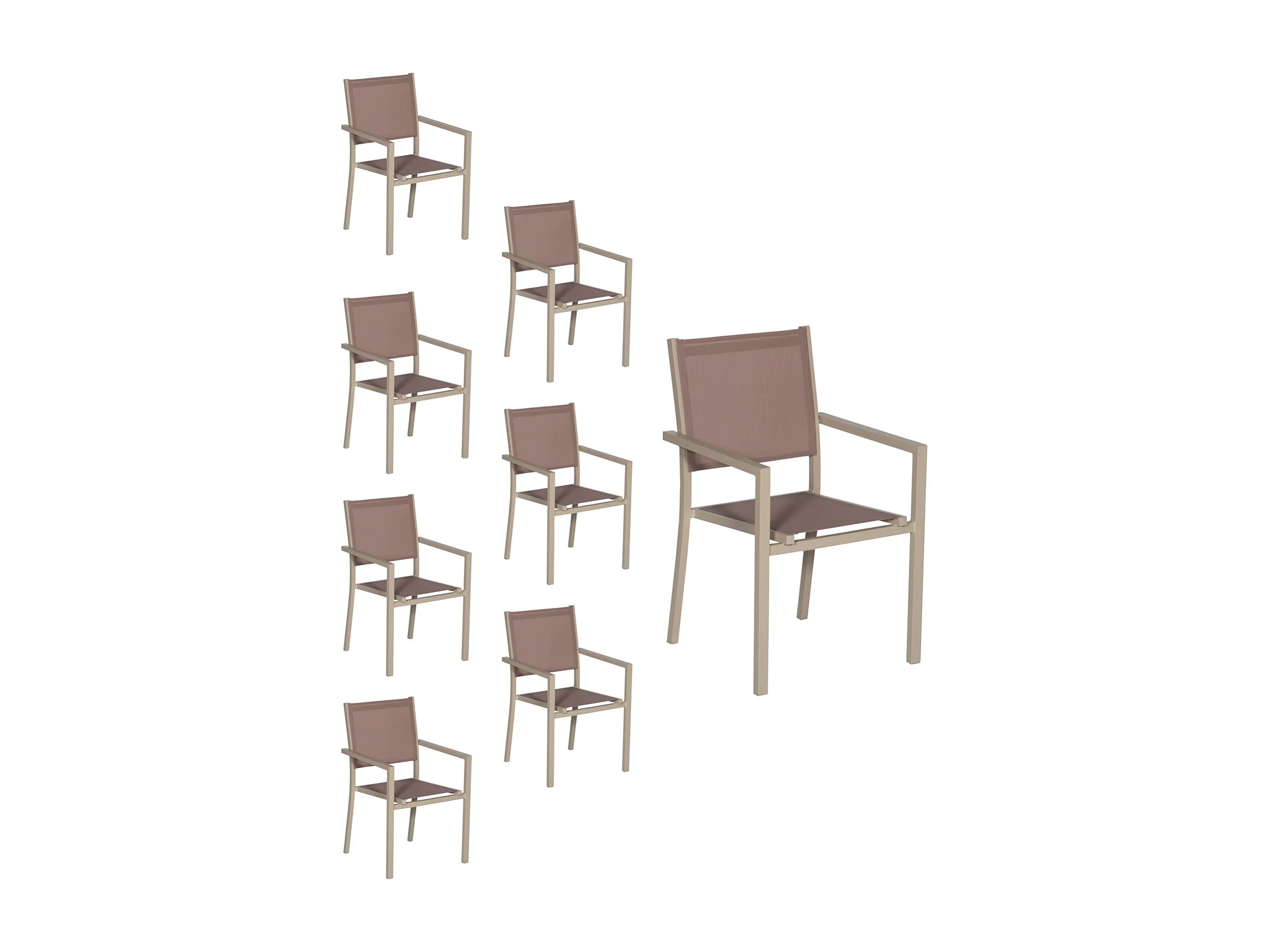 Lot de 8 chaises en aluminium taupe - textilène taupe