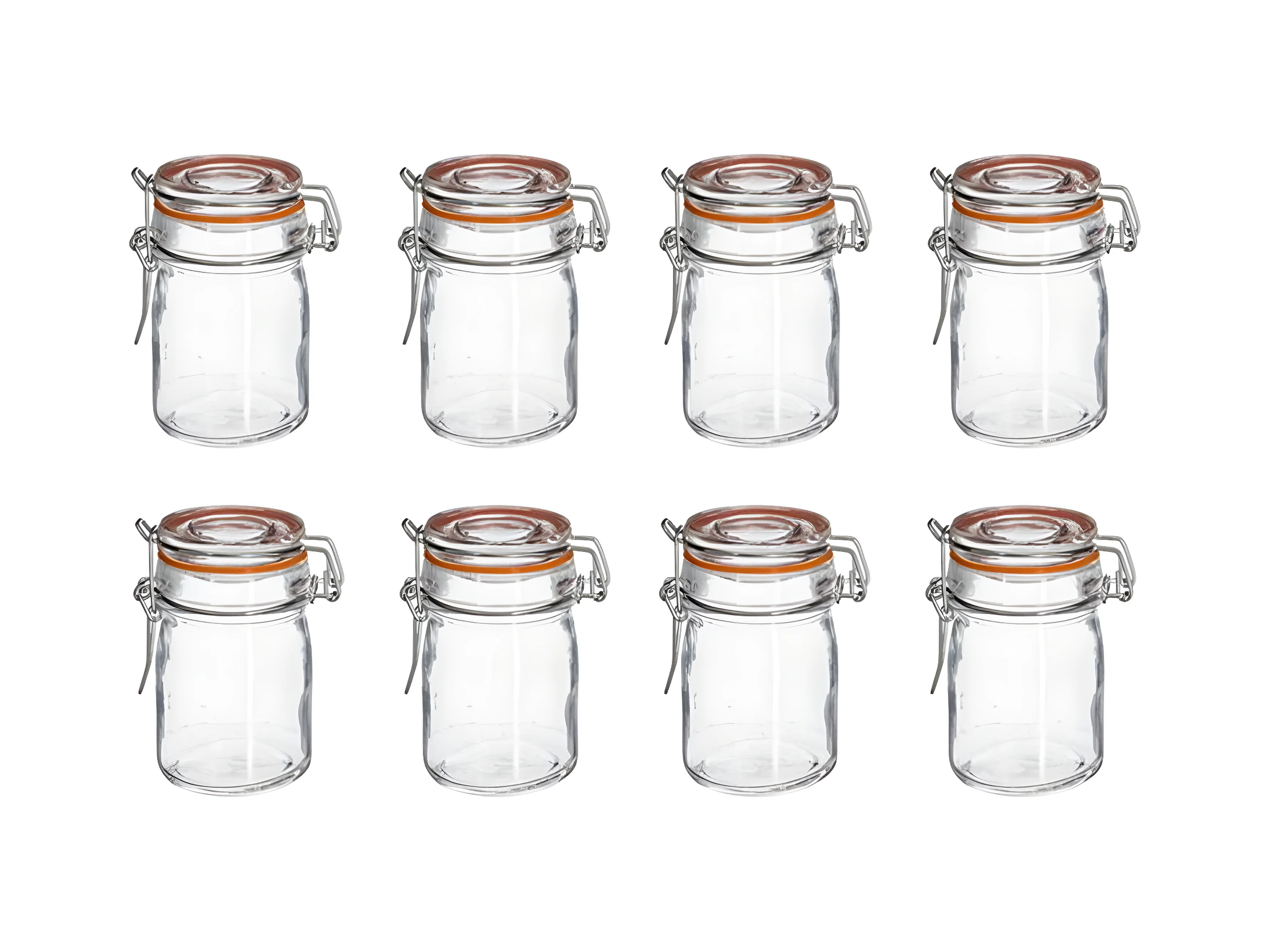 Lot de 8 Pots en Verre "Hermétique" 15cL Transparent