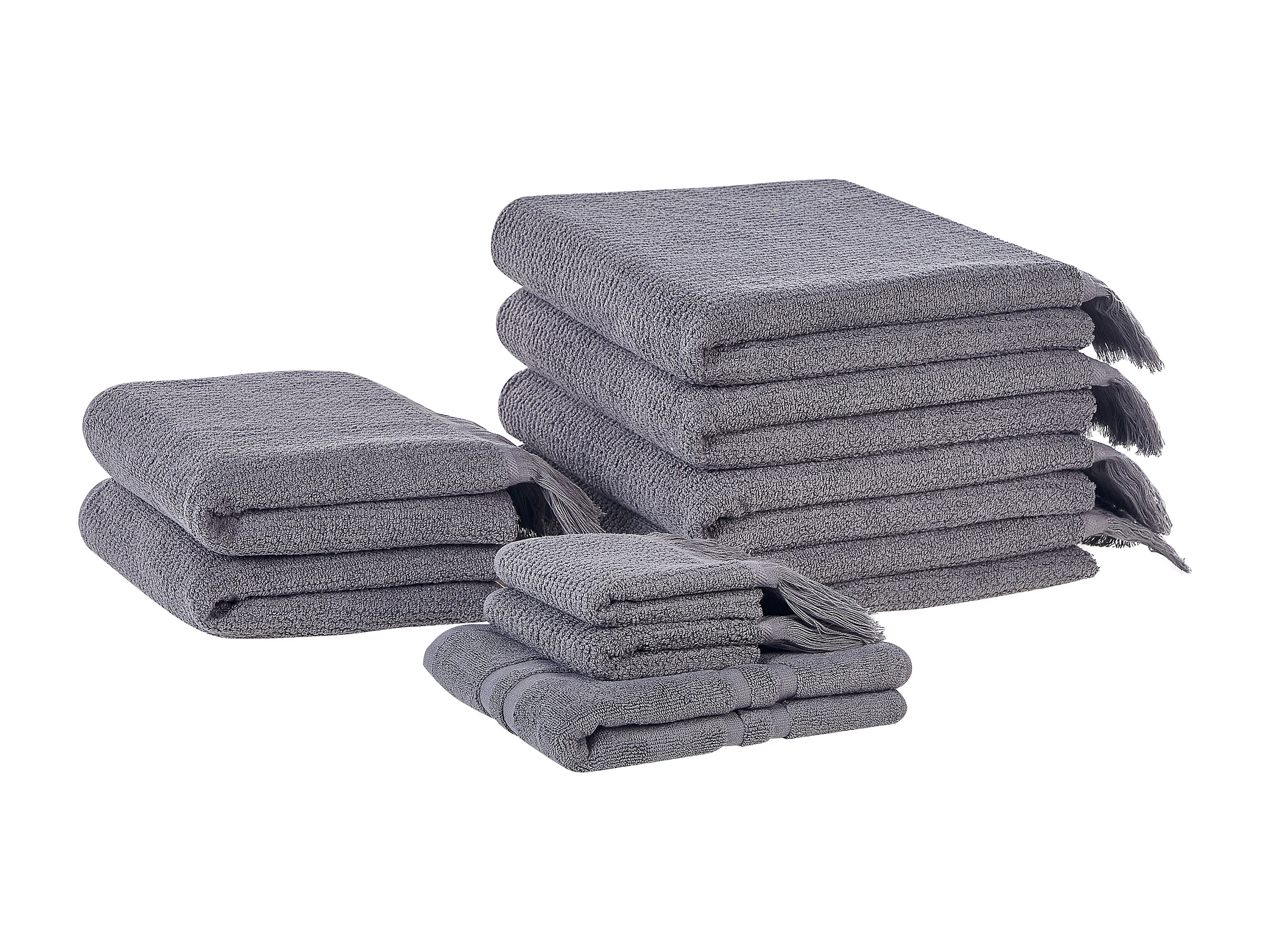 Lot de 9 serviettes ATIU Tissu éponge Gris