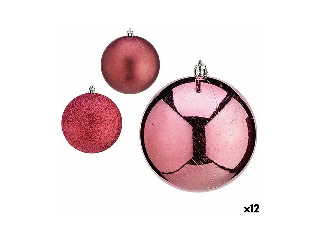 Lot de boules de Noël Rose Plastique 10 x 11 x 10 cm (12 Unités)