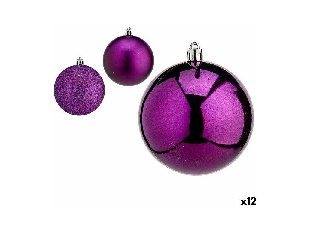 Lot de boules de Noël Violet Plastique 8 x 9 x 8 cm (12 Unités)