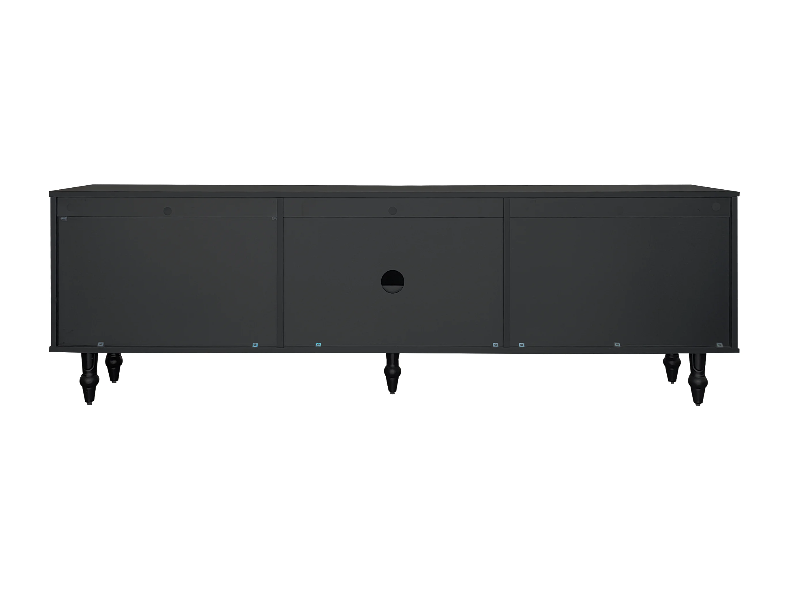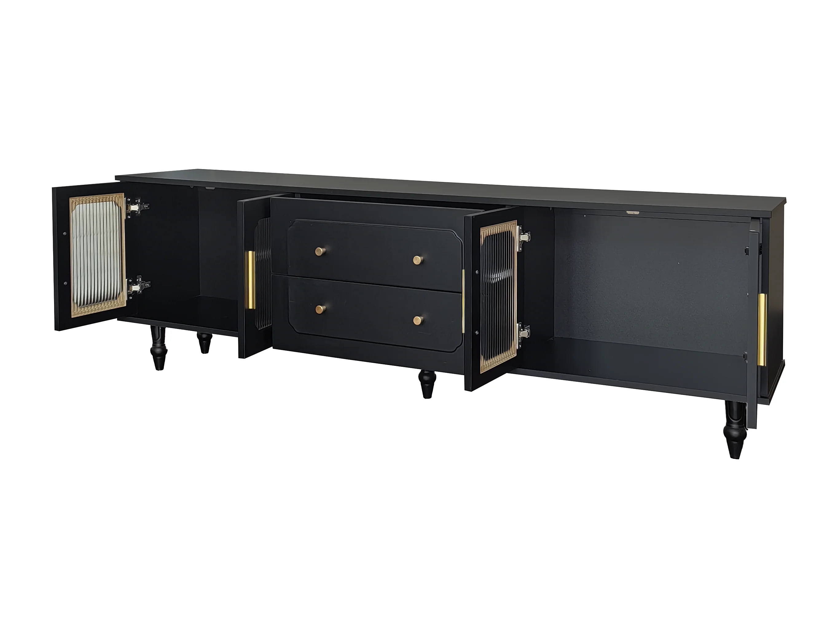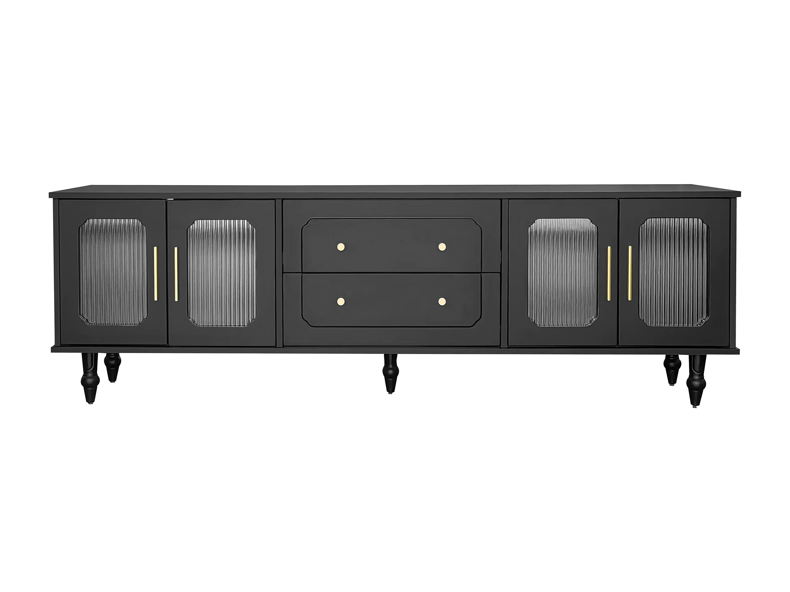 Lowboard, Meuble TV Style Rétro, Poignées Dorées, Grand Rangement, Porte en Verre, Pieds en Bois Massif