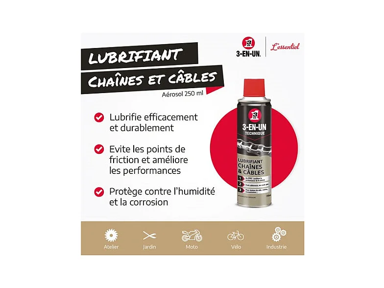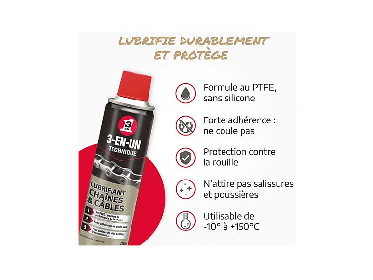 Lubrifiant Chaînes et Câbles 3-en-1 BBE 250ml - 33602/10