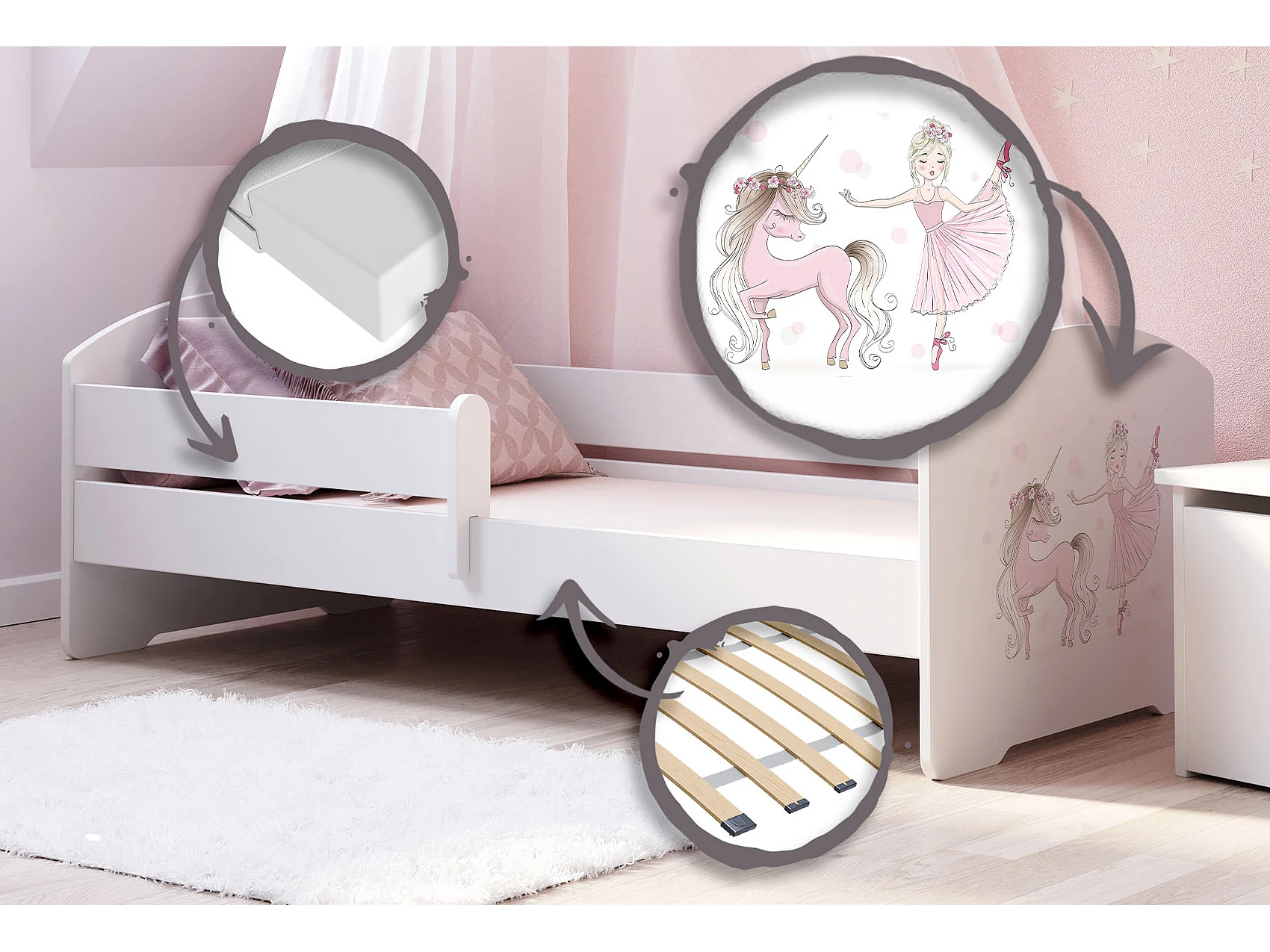 Luk - lit simple 140x70 avec graphisme pour enfants, dans un ensemble avec garde-corps, matelas et cadre