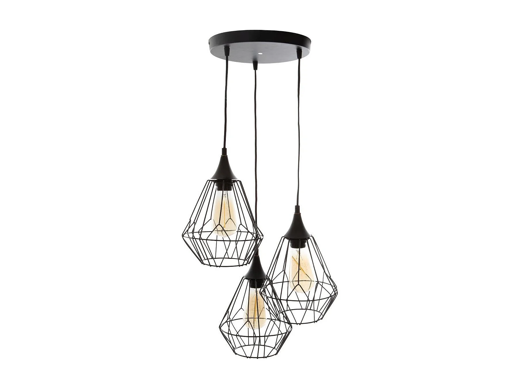 Luminaire Lustre 3 Suspensions en Métal filaire Noir