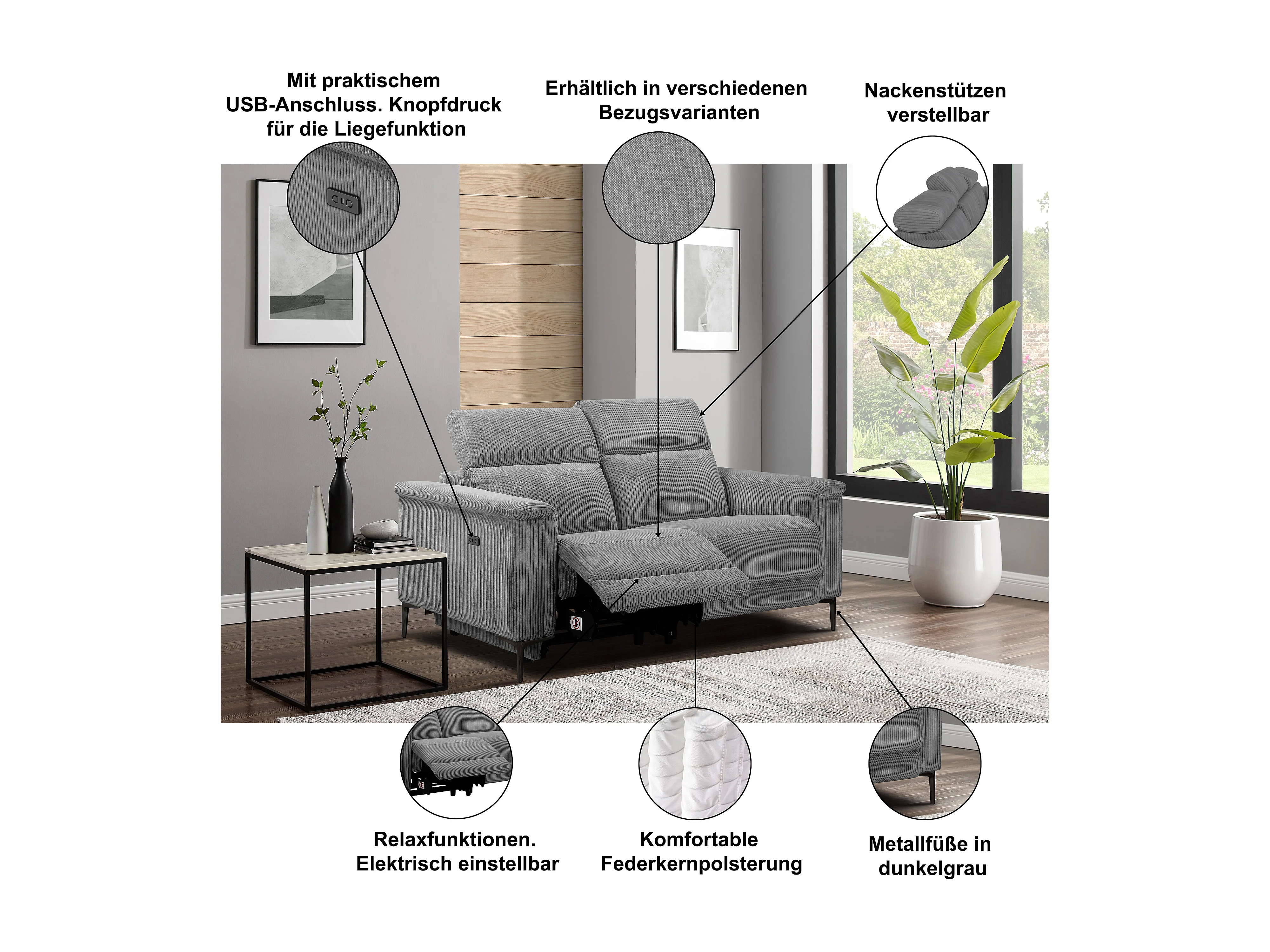 Lund | Canapé 2 places avec 1 fauteuil inclinable électrique en cuir cuir artificiel gris