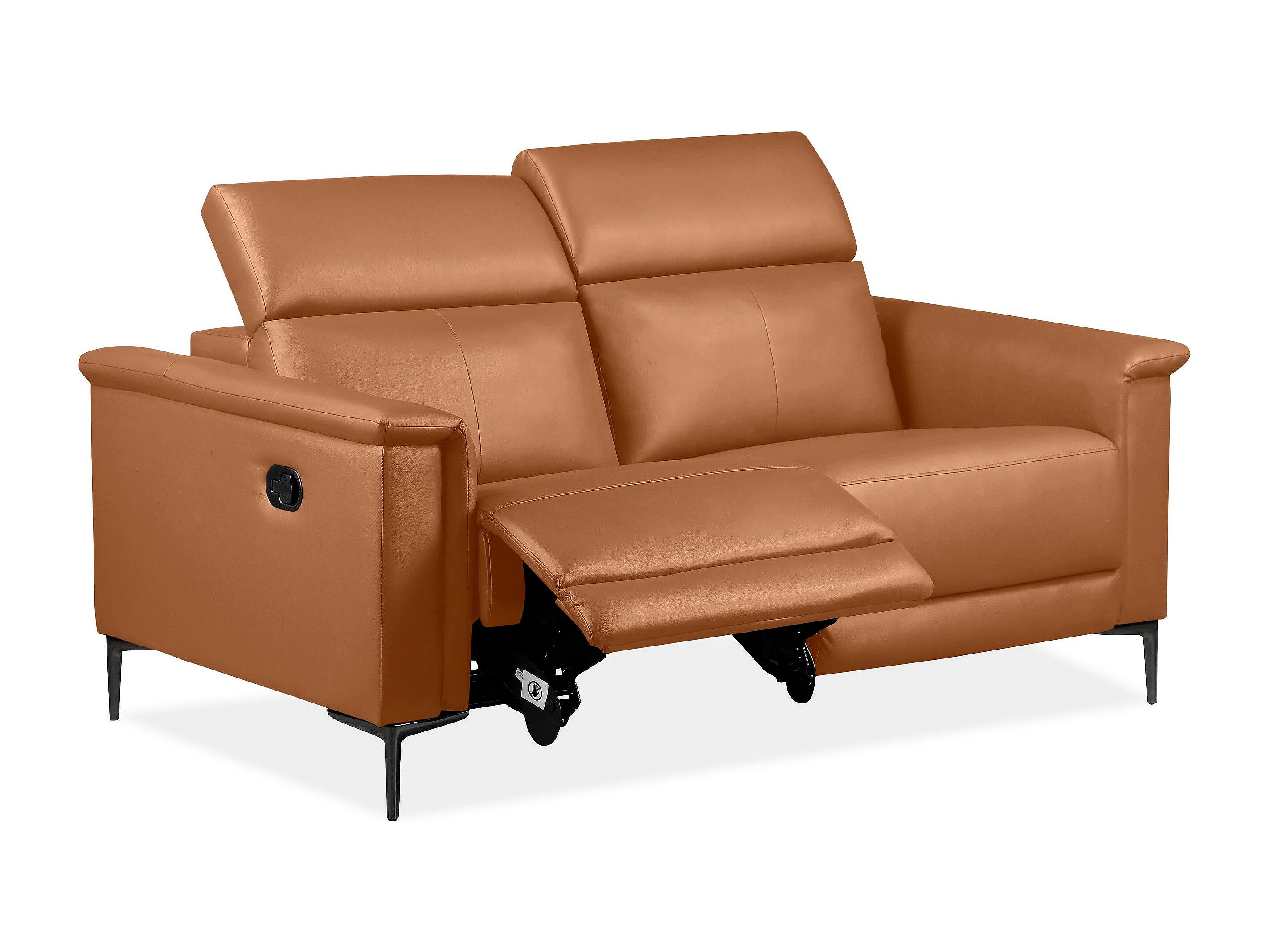 Lund | Canapé 2 places avec 1 fauteuil inclinable manuelleuel en cuir artificiel Cognac