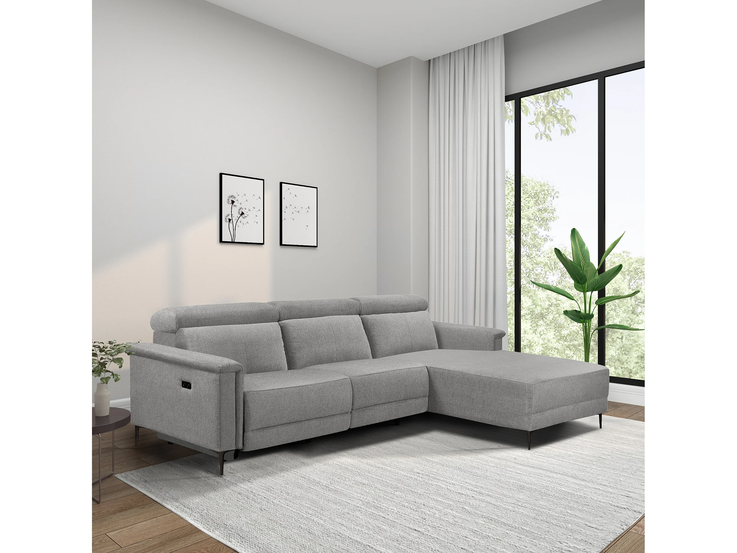 Lund | Canapé chaise lounge avec 1 fauteuil inclinable électrique en tissu gris clair