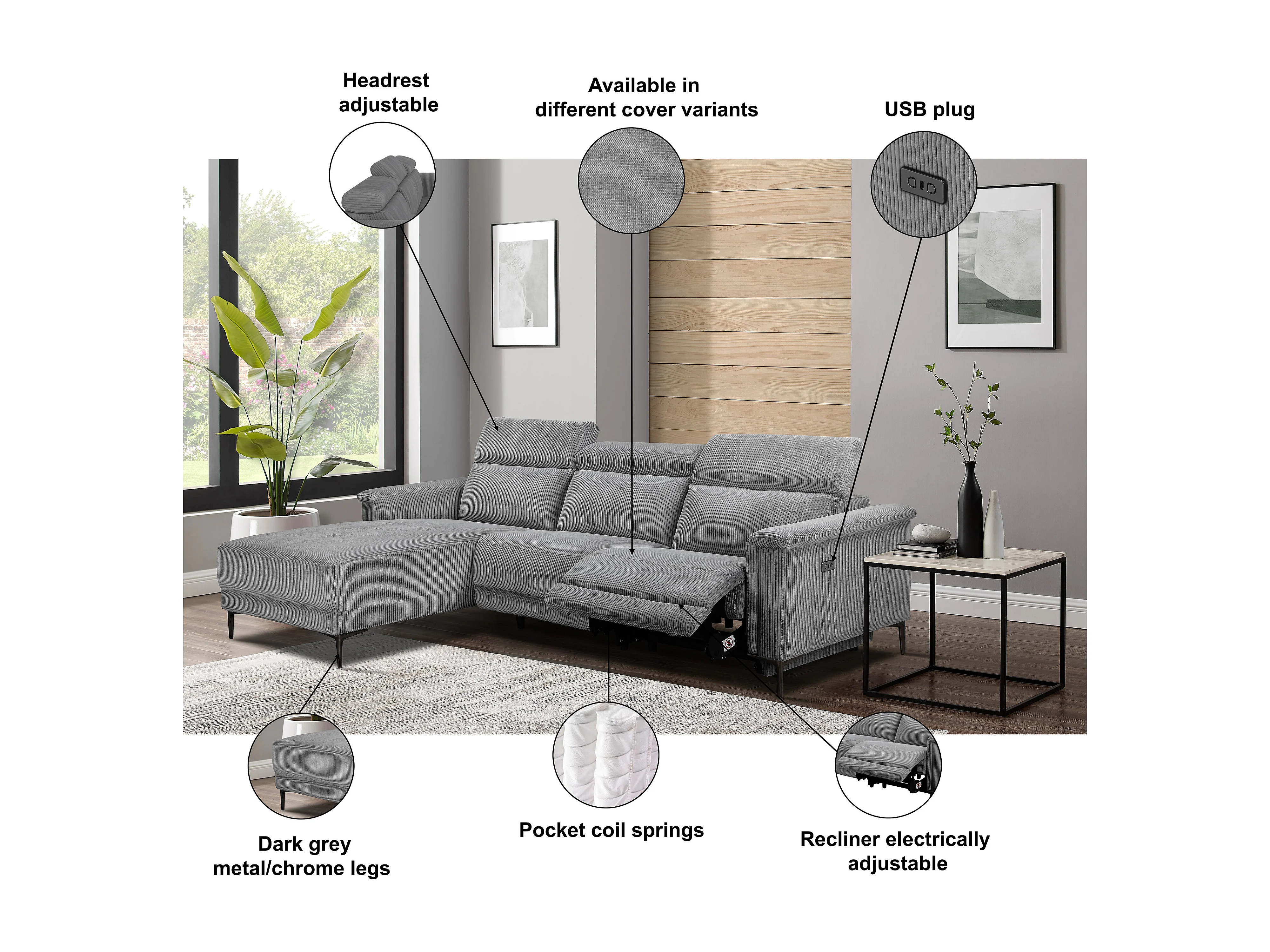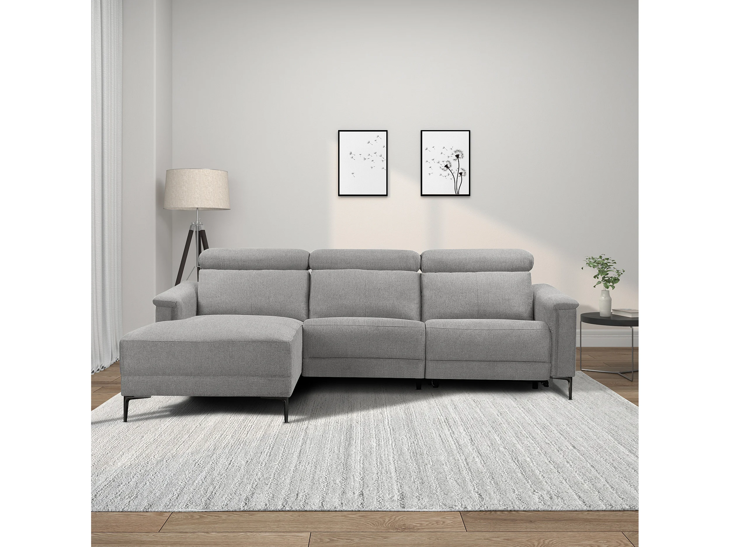 Lund | Canapé chaise lounge avec 1 fauteuil inclinable électrique en tissu gris clair