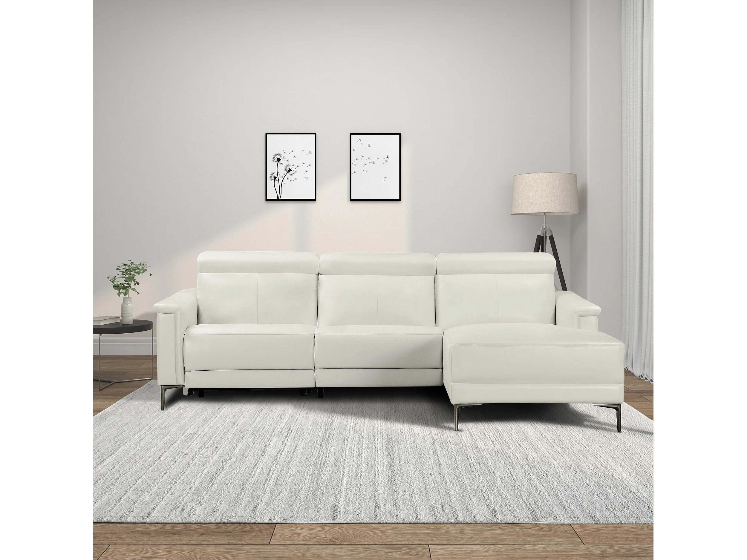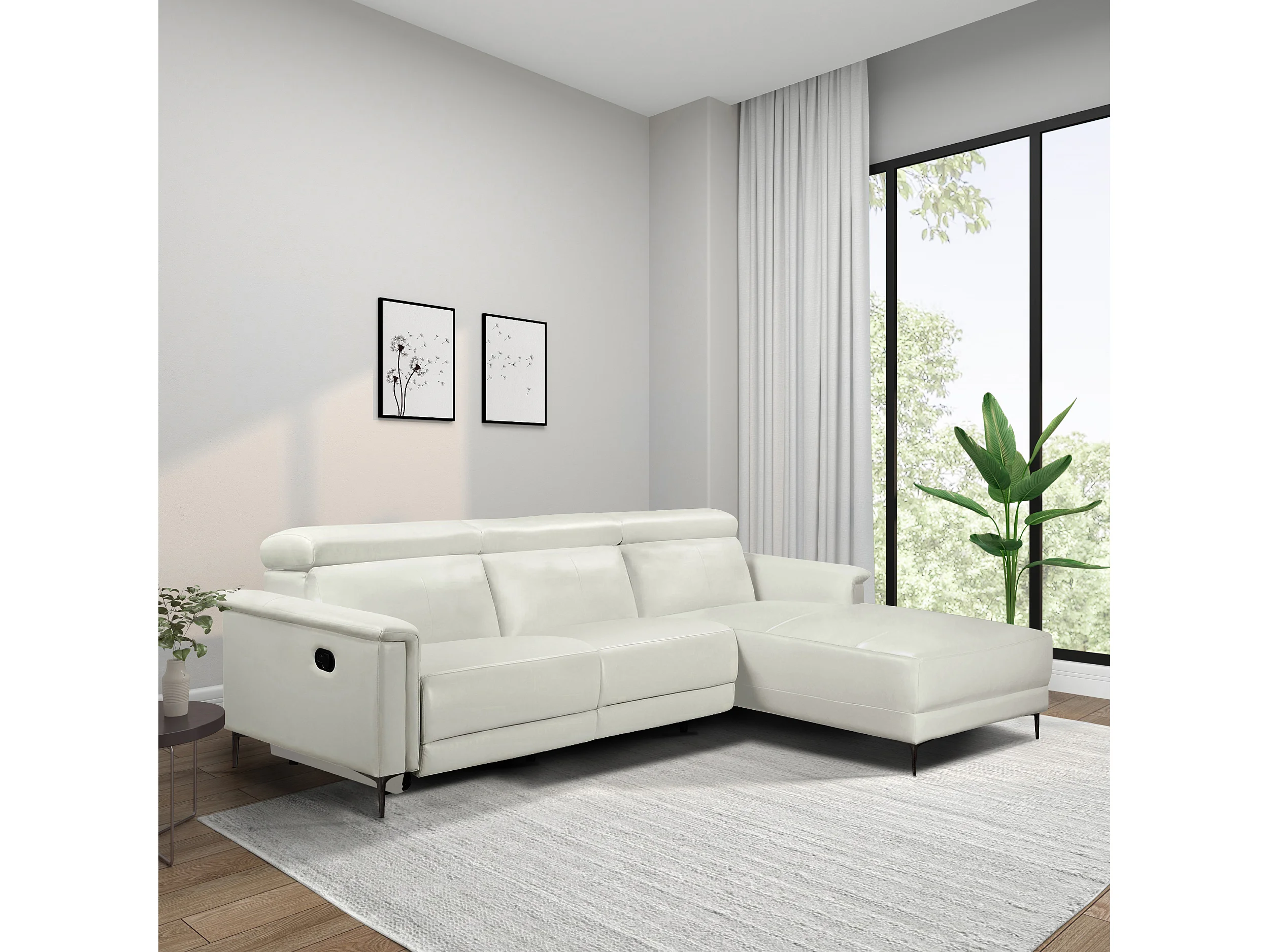 Lund | Canapé d’angle 3 places avec 1 fauteuil inclinable manuelleuel en cuir artificiel crème