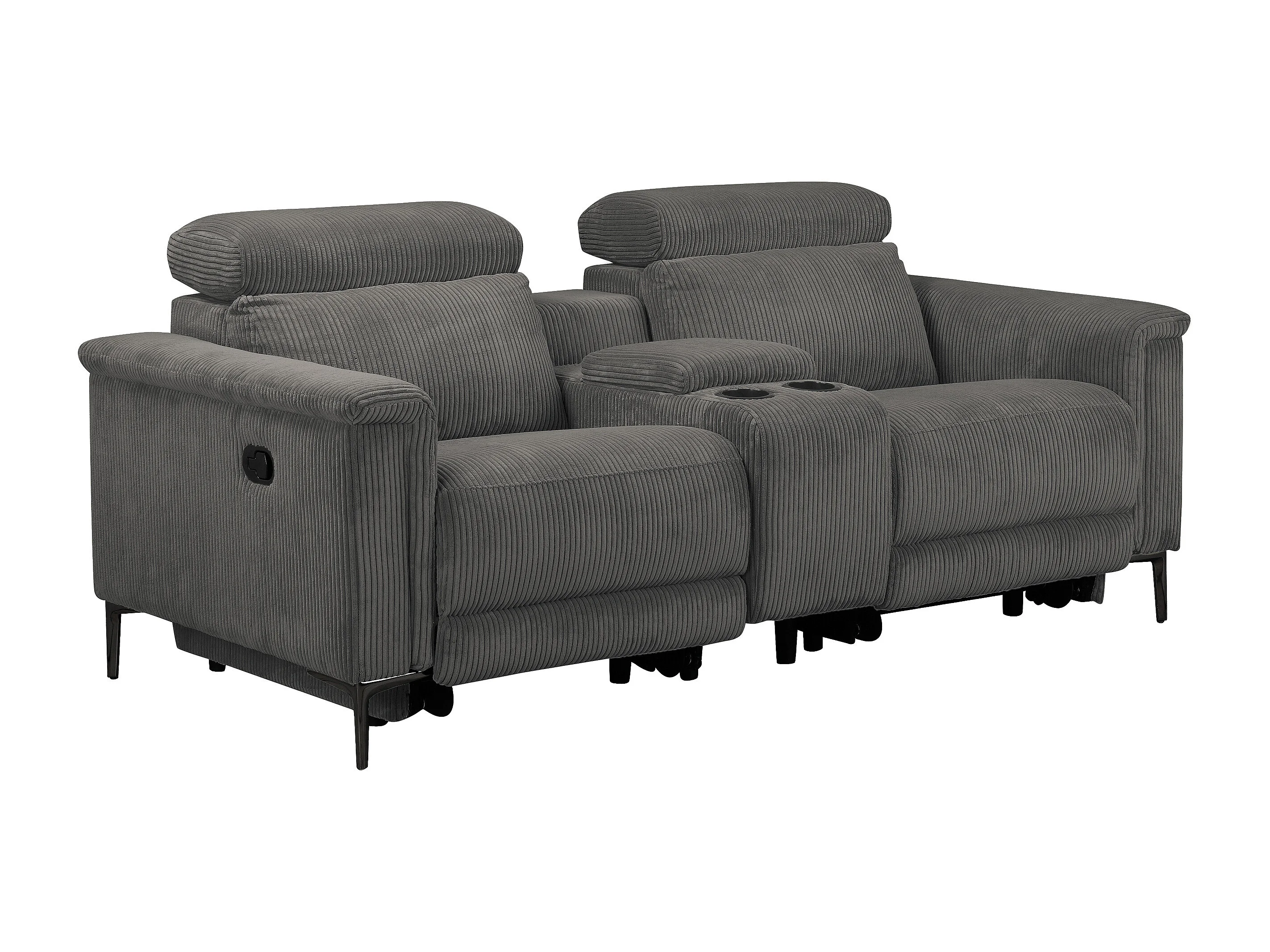 Lund | Fauteuil inclinable double avec fonction manuelle en velours côtelé anthracite
