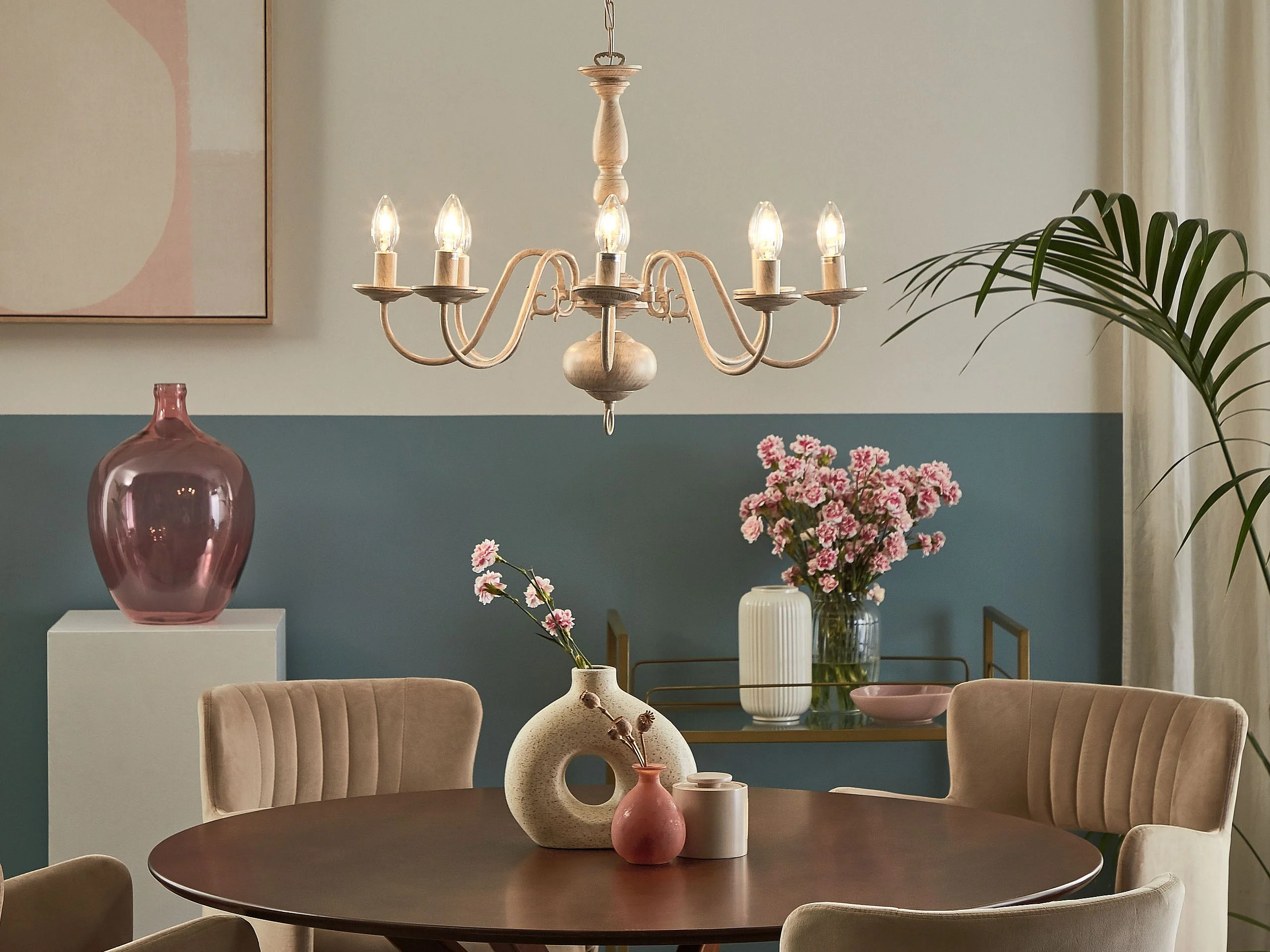 Lustre Dallas ivoire, effet décapé/or antique, verre albâtre d.13, 8 lumières déco élégante et lumineuse