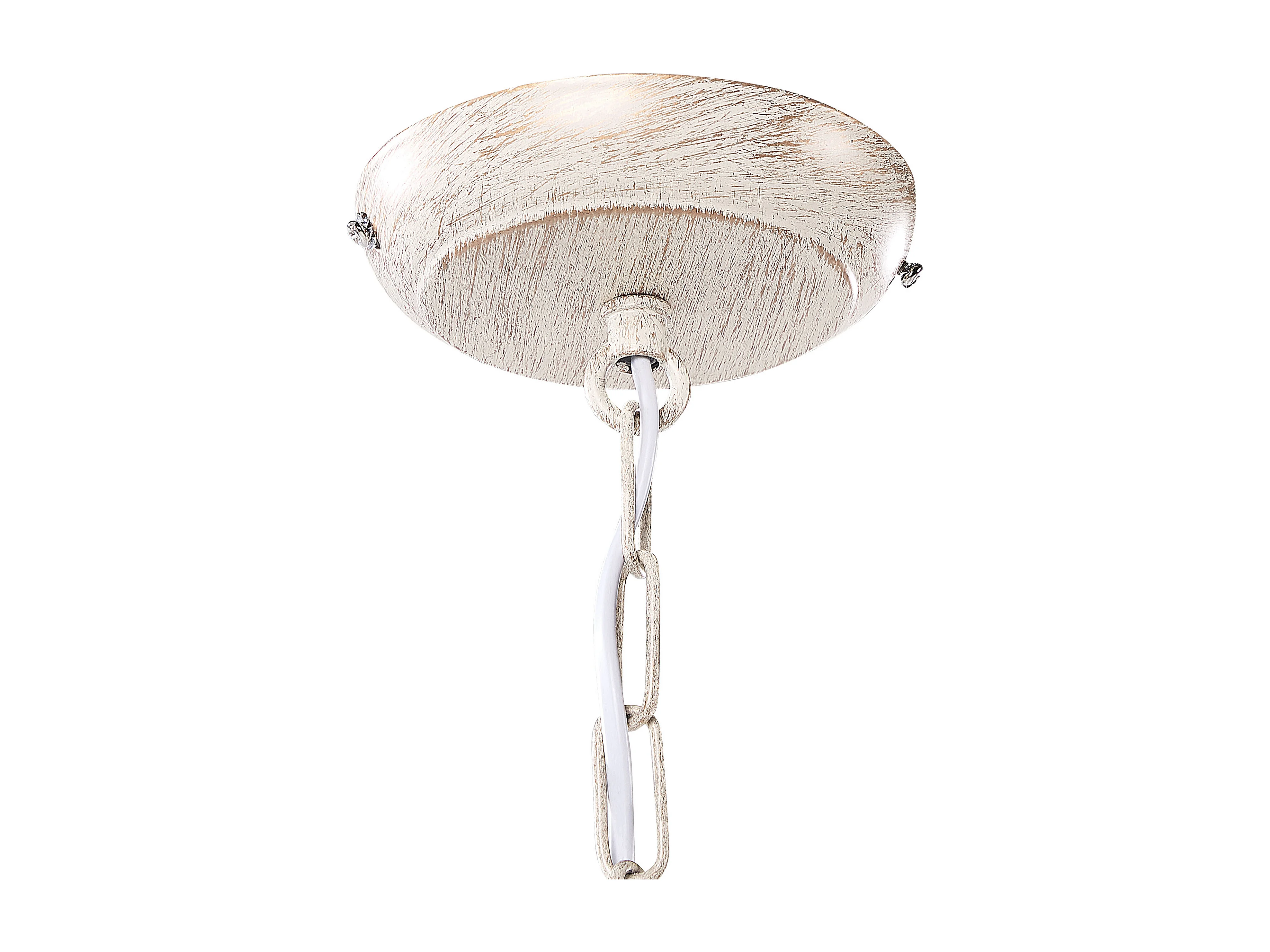 Olga Lustre en fer laqué blanc décor argent antique et diffuseurs en verre d'albâtre blanc 3 lumières 103 d.60 BL155-3-BA