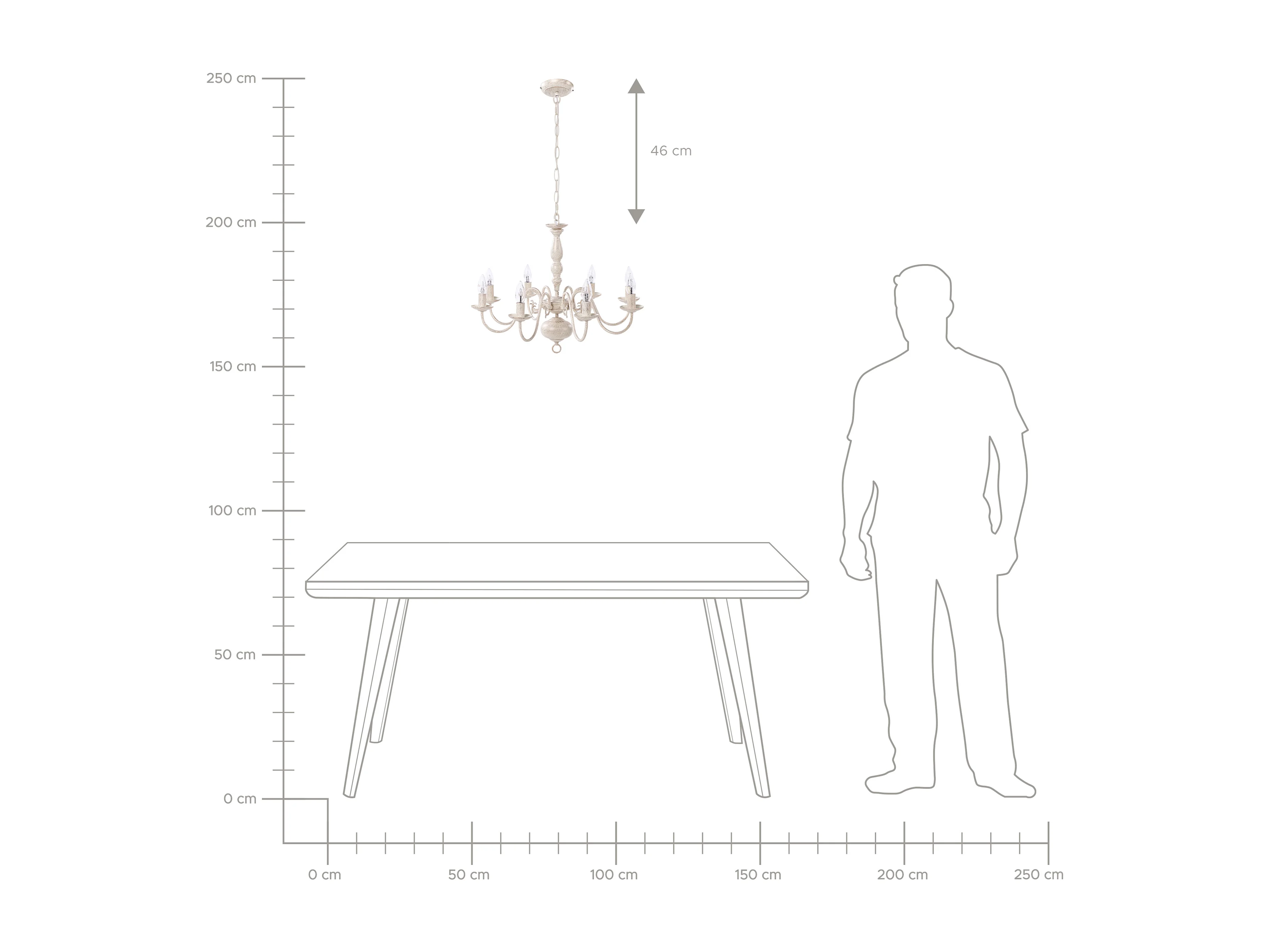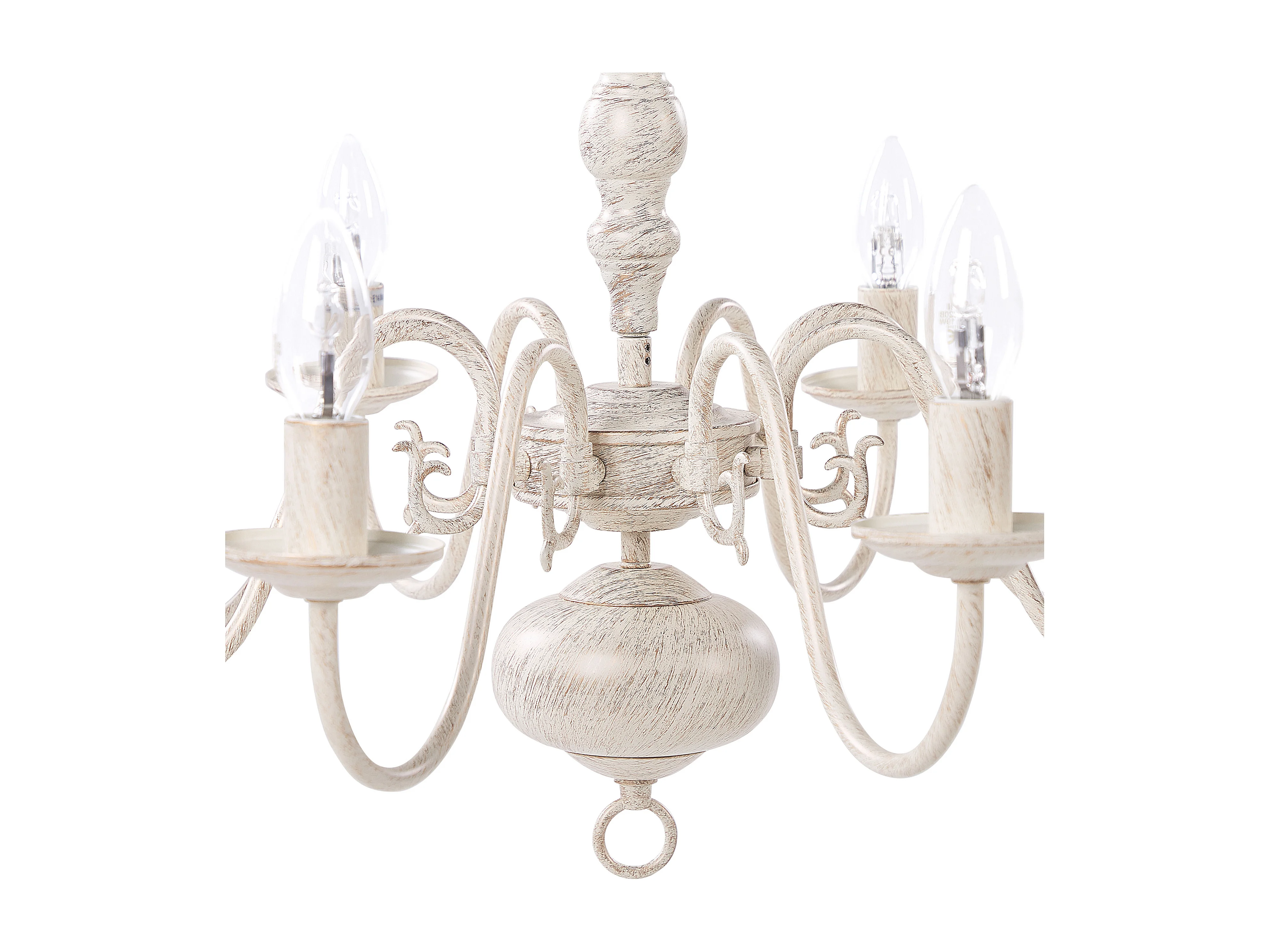 Lustre Olga fer ivoire, déco or antique, verre albâtre d.14, 5 lumières d.68 cm style rétro chaleureux