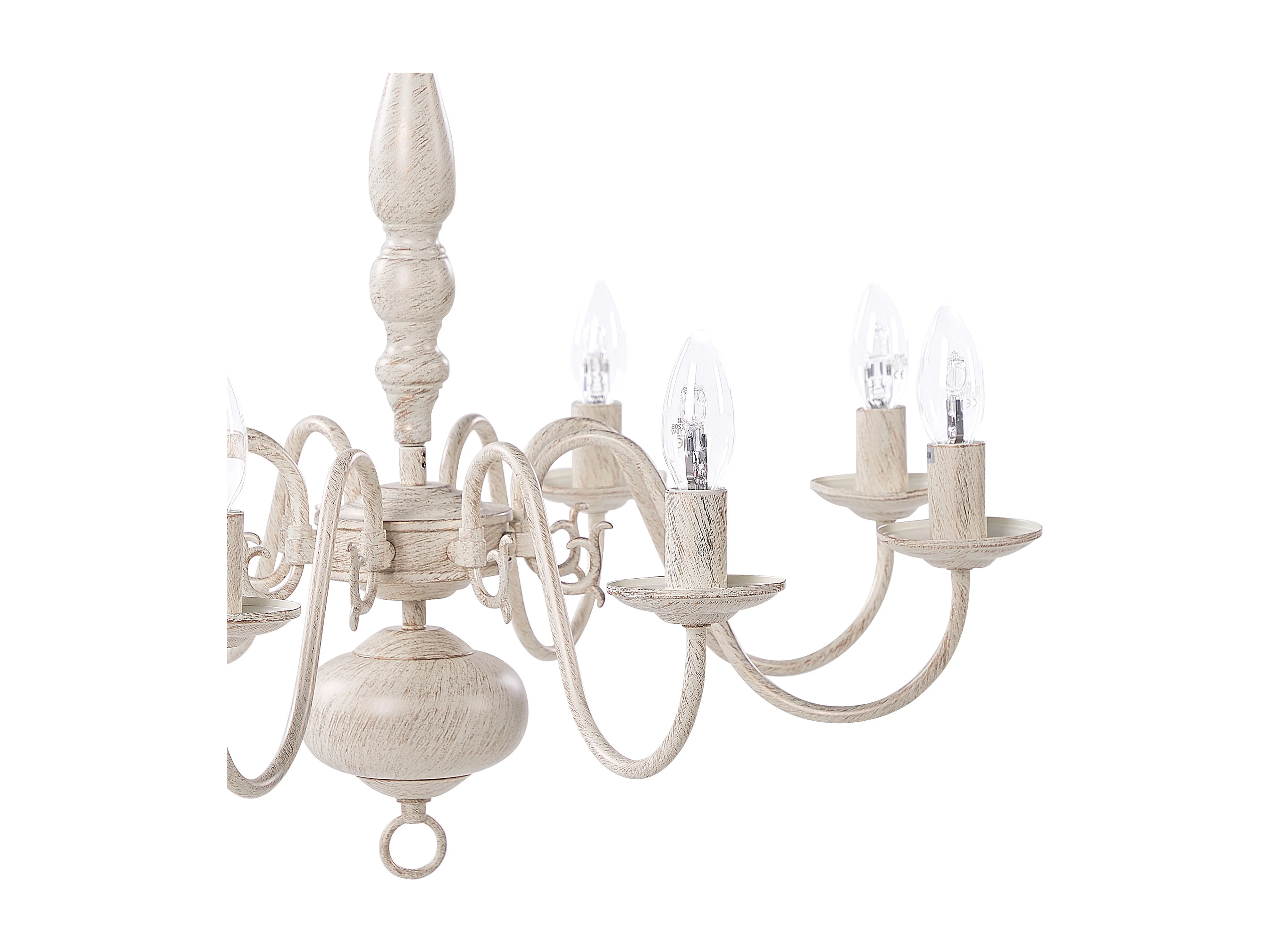 Lustre Vienna fer ivoire, décor or antique, abat-jour jute d.13, 8 lumières d.78 cm, look raffiné et classique