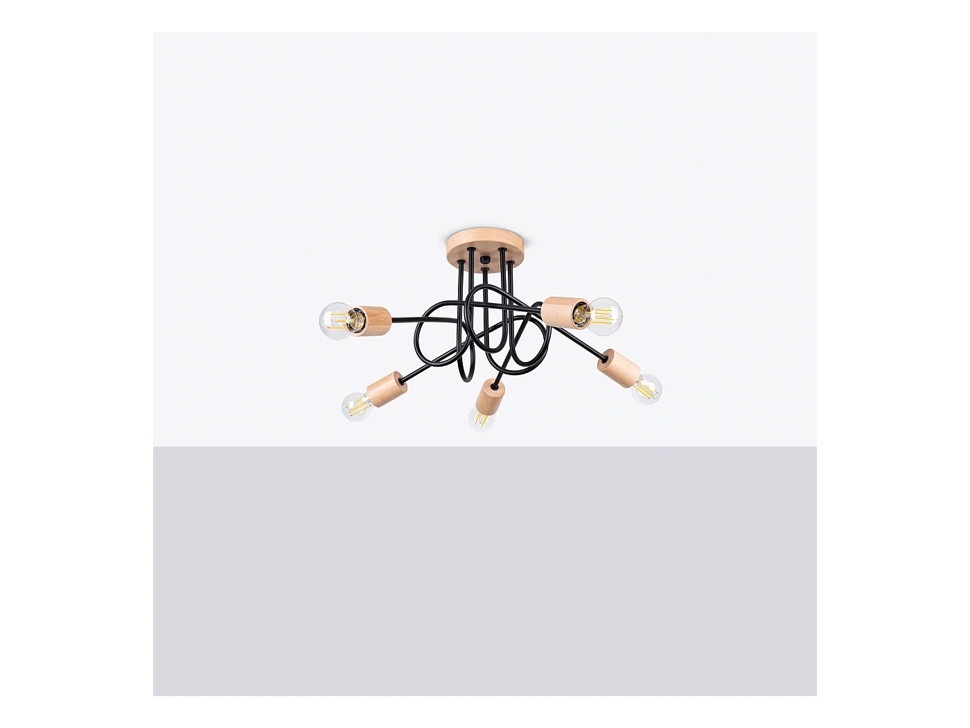 Lustre Ember Minimaliste En Acier/Bois - 5 Sources Lumineuses - L.15 X H.26 Cm - Noir/Bois Naturel