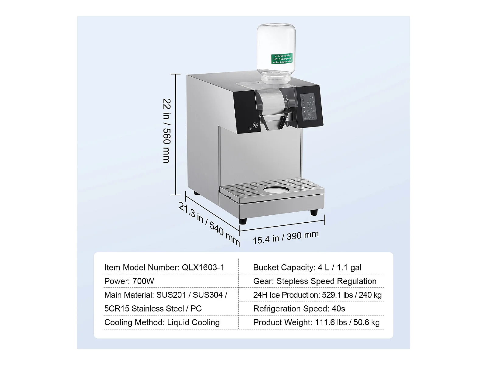 Machine à Glace Commerciale en Flocons de Neige SucceBuy, Sorbetière Capacité de 4 L, Jusqu'à 240 kg/24H en Acier Inoxydable pour Crème Glacée