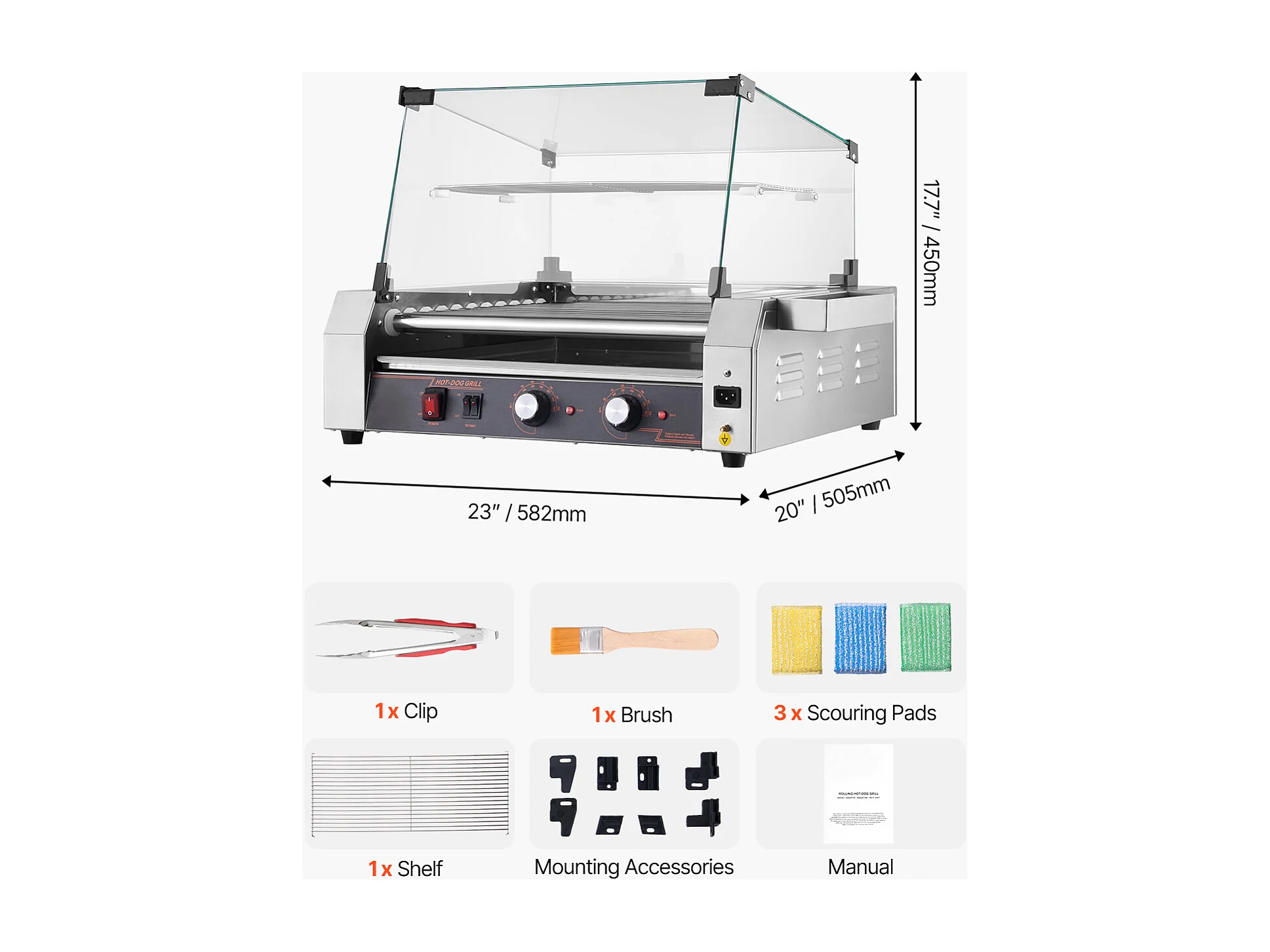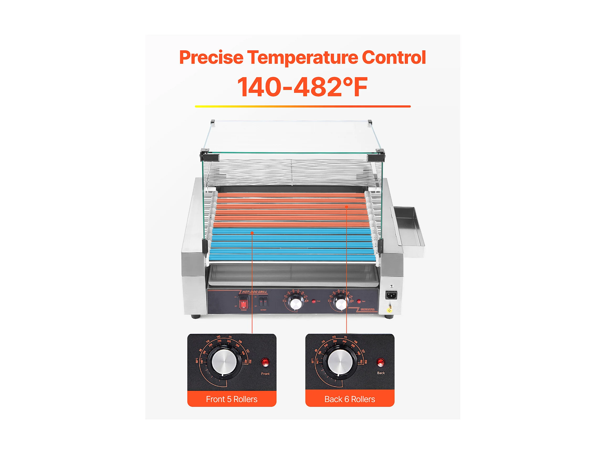 Machine à Hot-Dogs Commerciale SucceBuy, avec 11 Rouleaux et Étagère Amovible, Grille en Acier Inoxydable, Contrôle de Température Indépendant