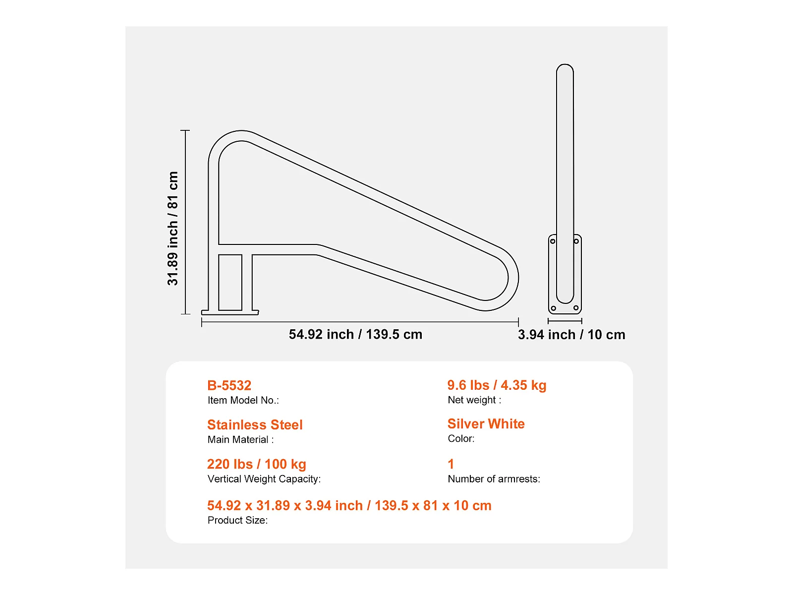 Rampe de Piscine SucceBuy 55 x 32 Po en Acier Inoxydable avec Revêtement Antidérapant