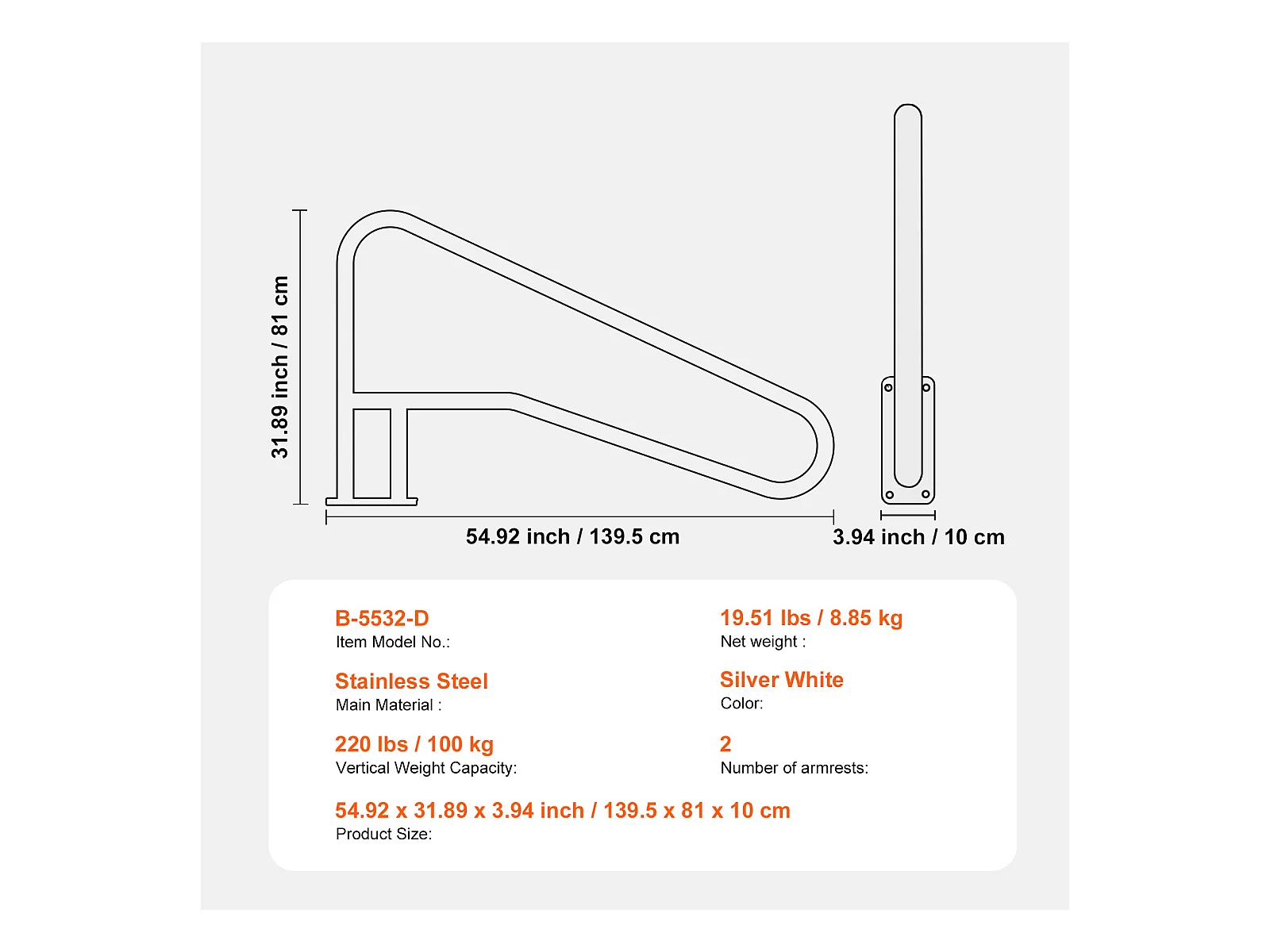 Rampe de Piscine SucceBuy 55 x 32 Po en Acier Inoxydable avec Revêtement Antidérapant