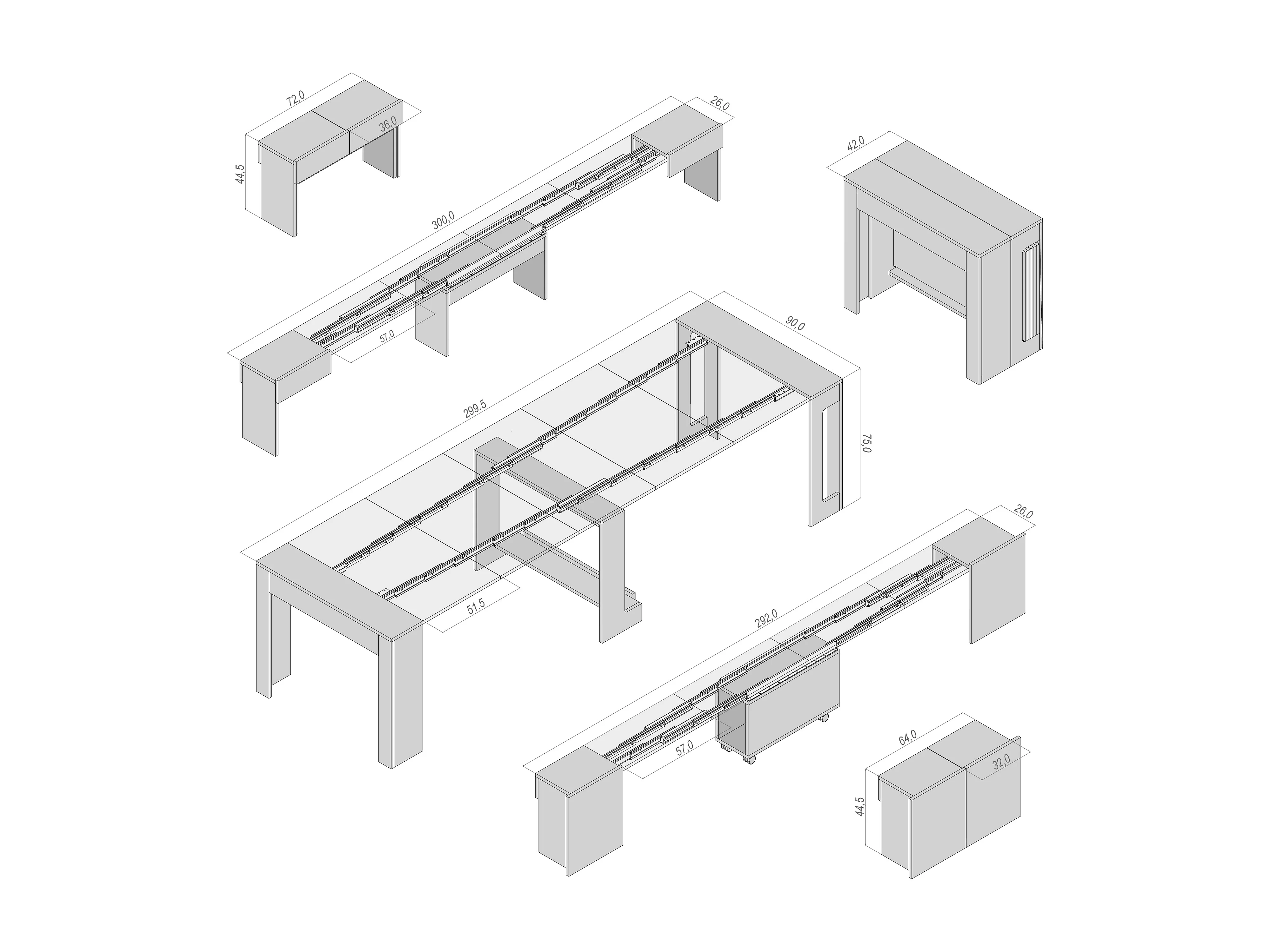 MAIRA - Ensemble console avec deux bancs extensibles - Dimensions intégrées 42 x 90 x 75 cm Anthracite - Livraison gratuite