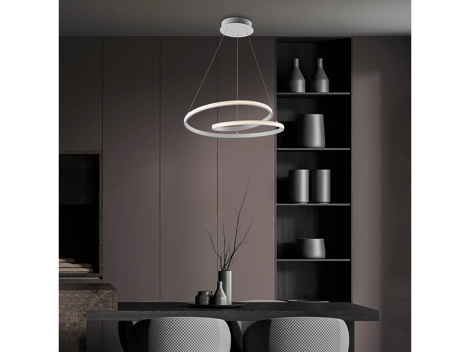 Suspension Malena métal blanc, LED CCT, télécommande incluse, câbles réglables d.50 cm, style contemporain
