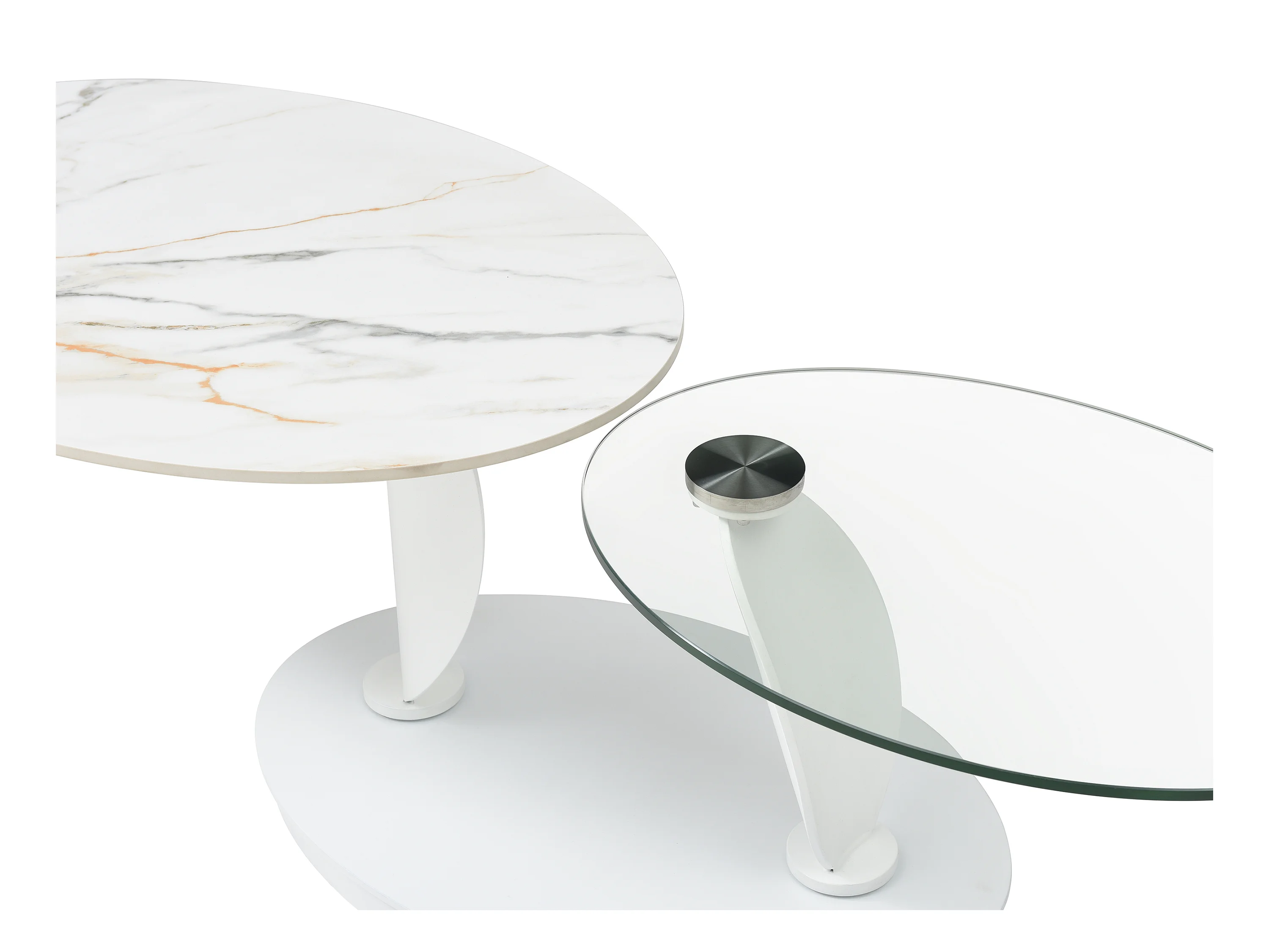Table basse avec plateaux pivotants en céramique, verre trempé et métal - Effet marbre blanc - MANEYA de Maison Céphy