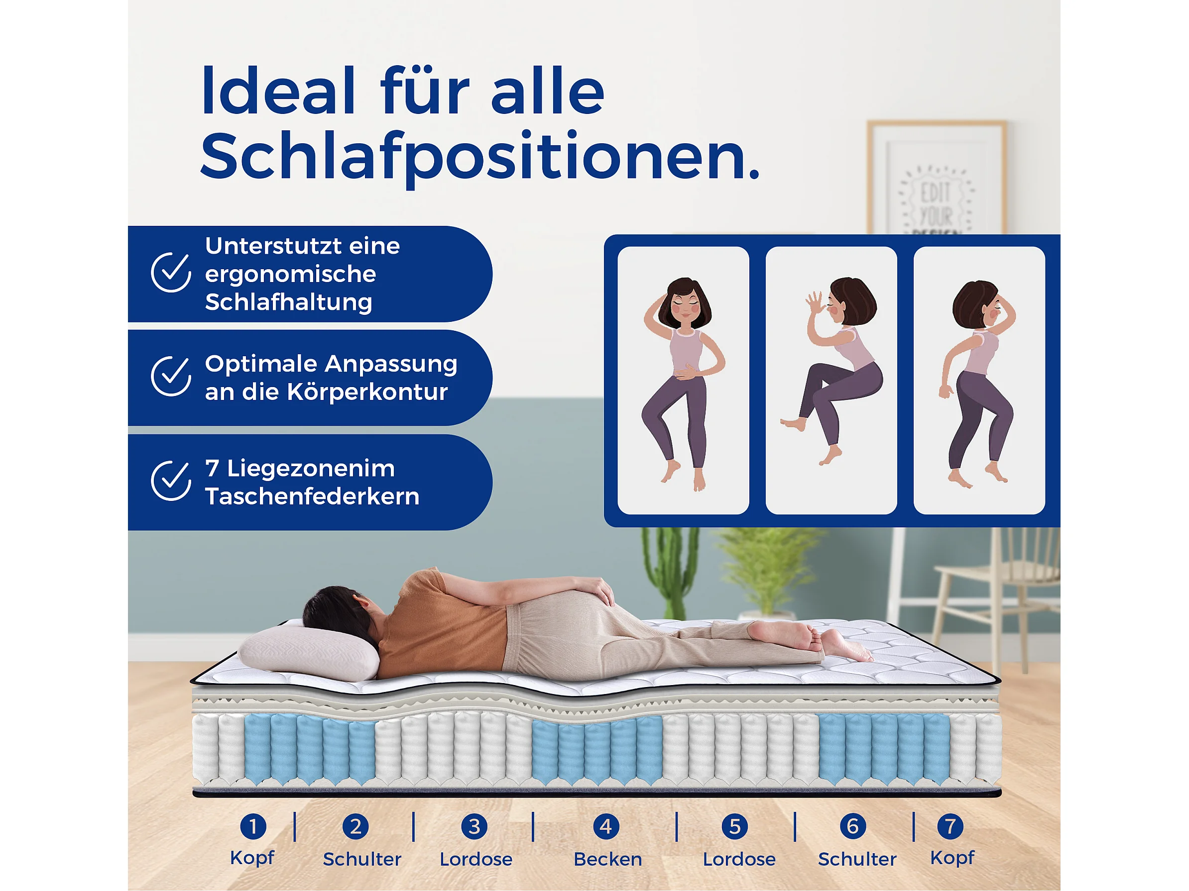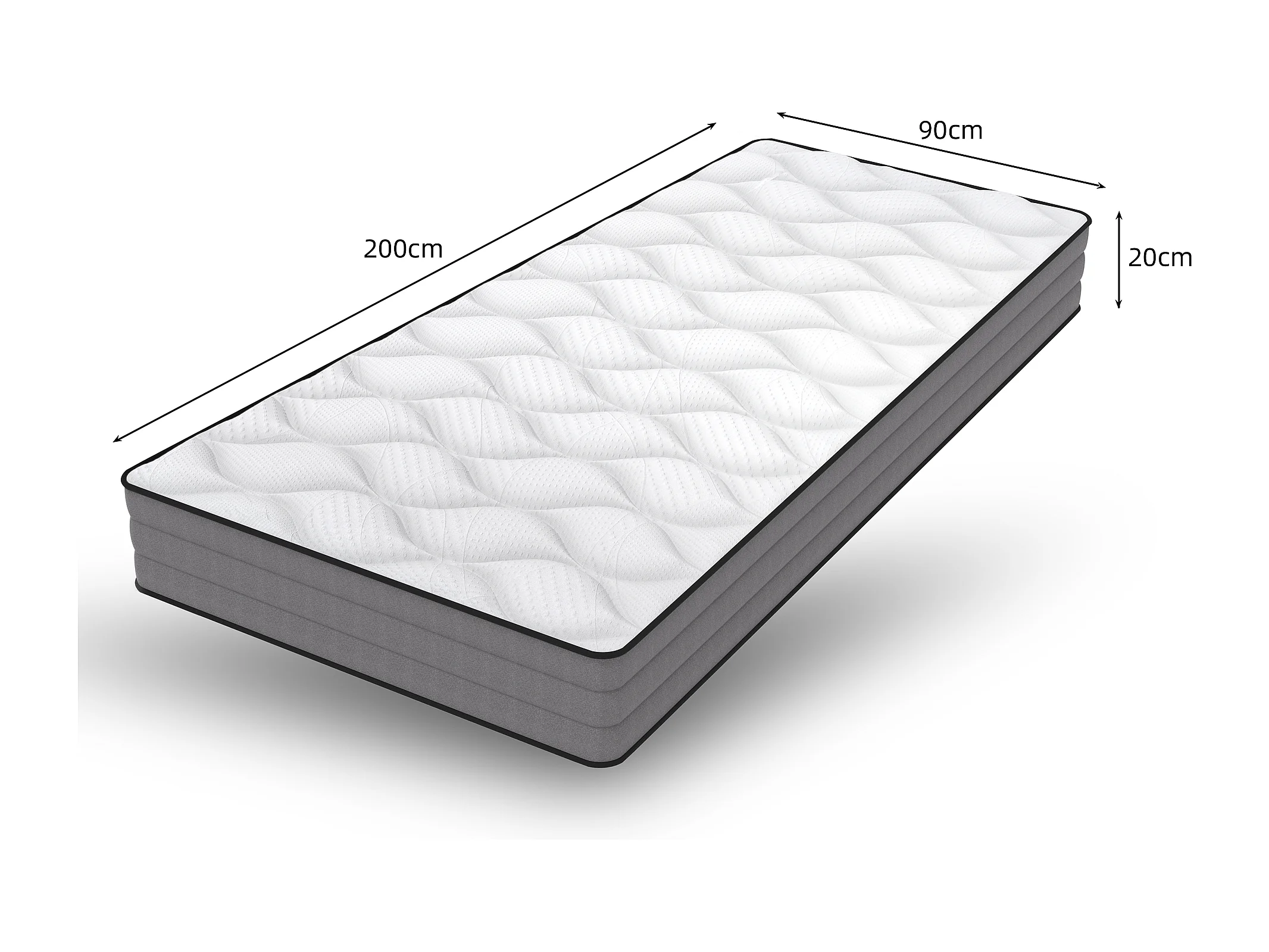 Matelas à ressorts ensachés 90x200 cm H3, 20 cm, 1000 ressorts, housse en Lyocell, 7 zones, certifié Oeko-TEX - Idéal pour un sommeil réparateur.