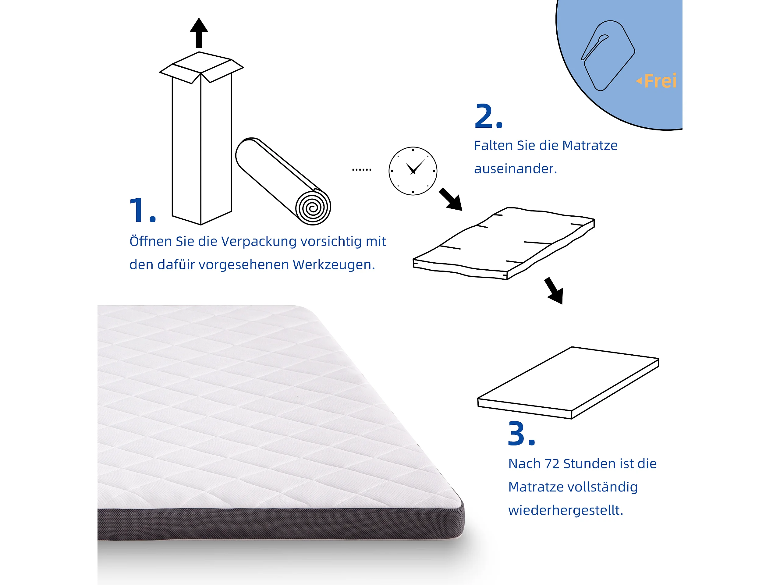 Matelas confortable H3, soutien moyen, certifié Eco-Tex, hauteur 7 cm, taille 90x200 cm, mousse à 7 zones, soutien efficace pour la taille.