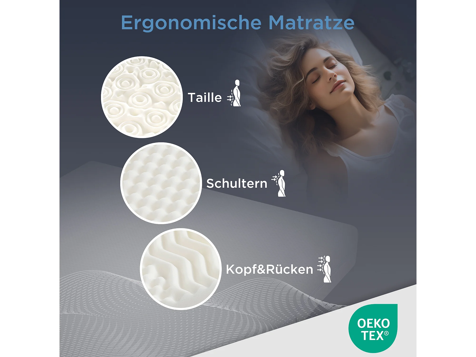 Matelas en mousse - 140 x 200 cm - matelas confort 7 zones avec poignées et housse lavable - blanc