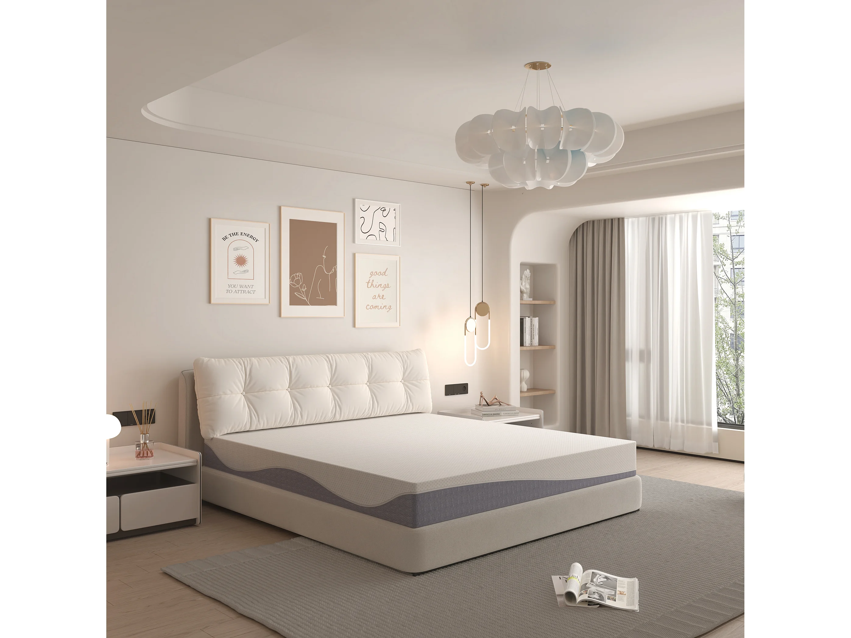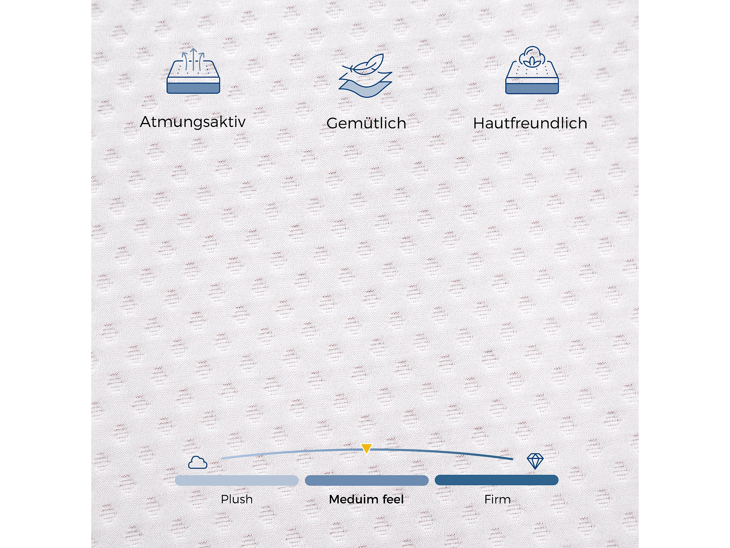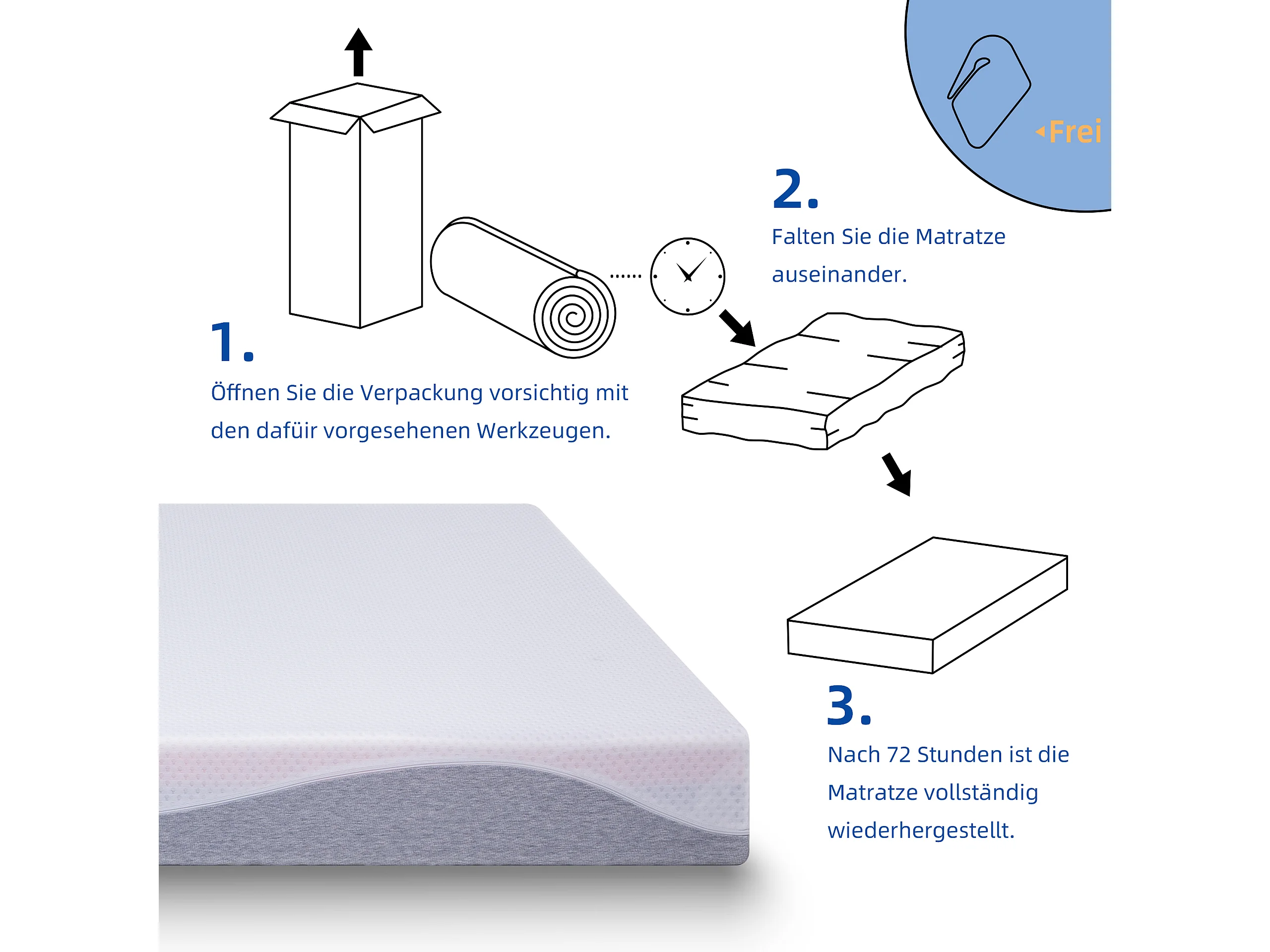 Matelas en mousse 90x200 cm, confort moyen H3/H4, hauteur 20 cm, certifié Oeko-TEX, réversible, housse amovible, gris et blanc.