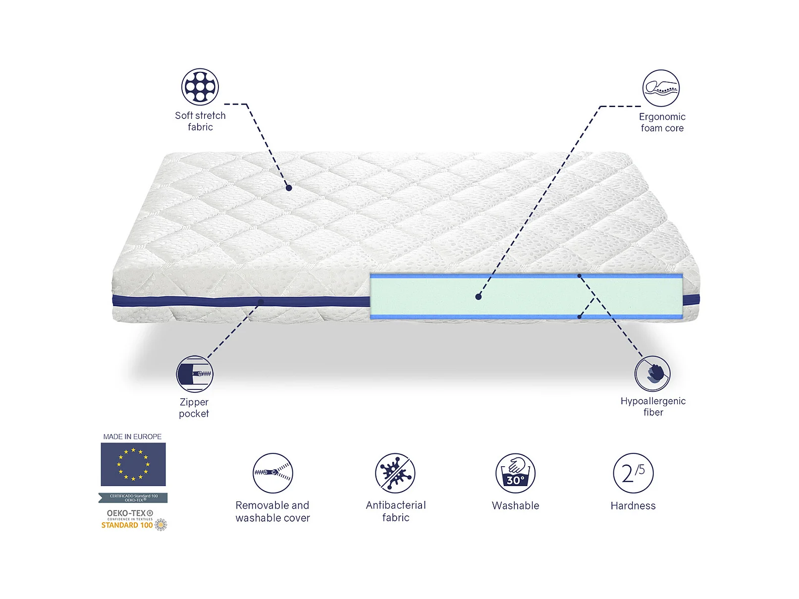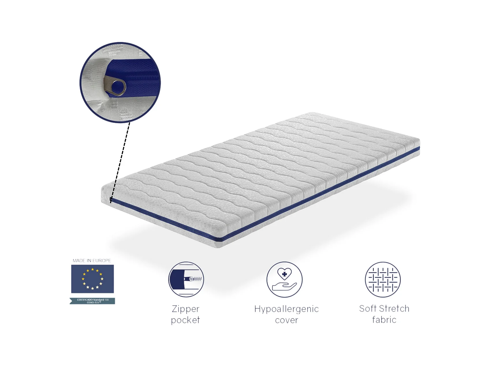 Matelas mousse respirante 90X190 HERMES, Epaisseur 11 CM, Dehoussable, ergonomique et adaptable