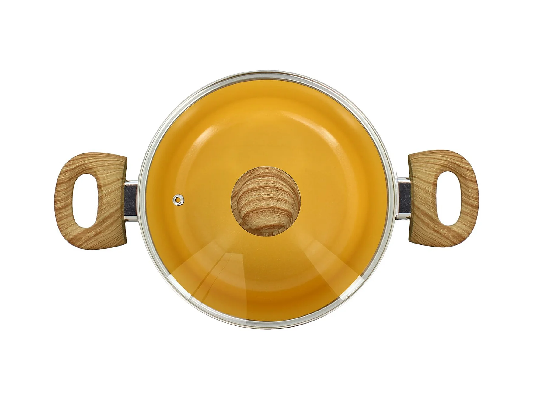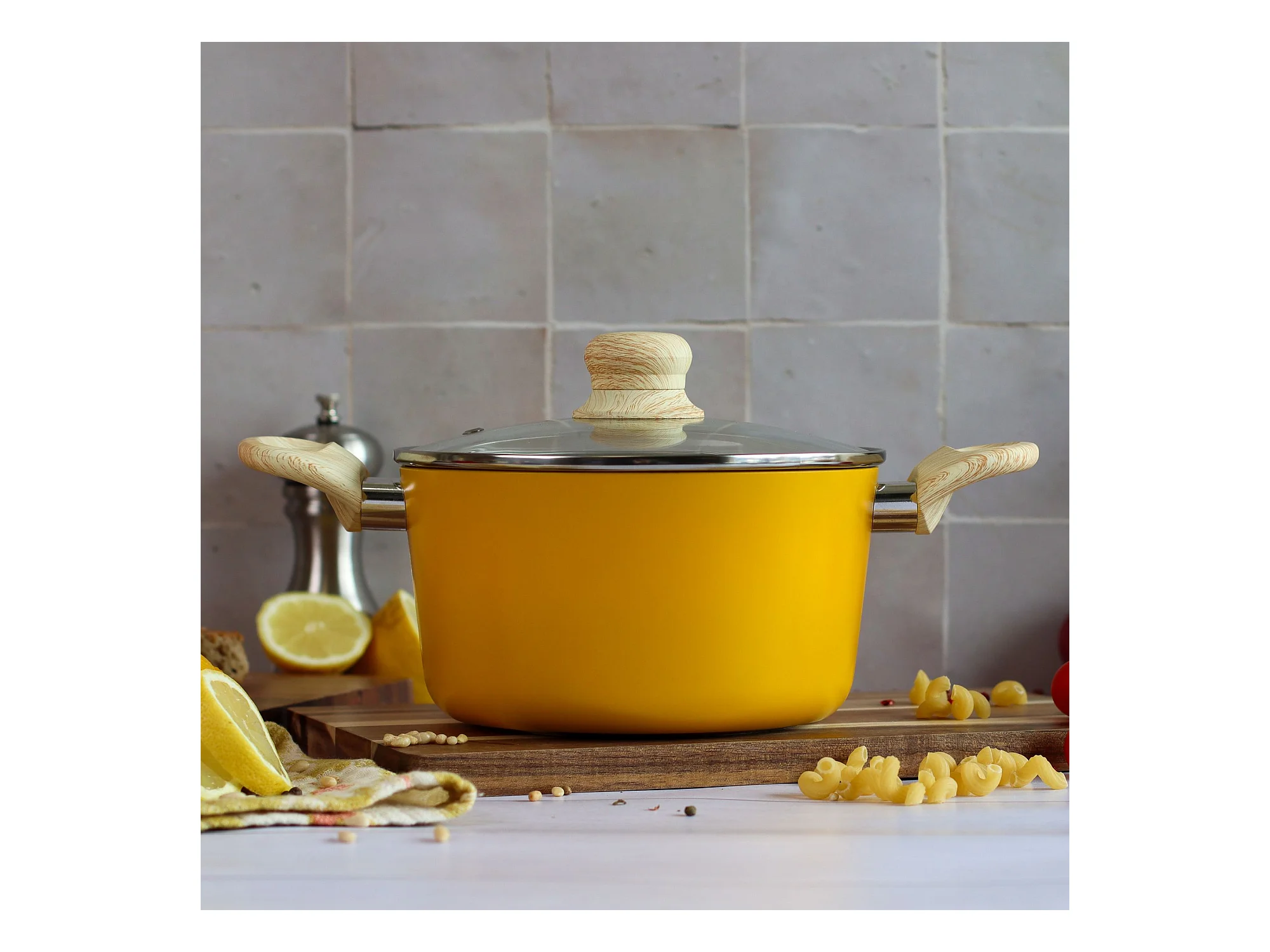 Ogo Living - Faitout Ector 24cm En Alu Revetement Ceramique Jaune Avec Manche Bois