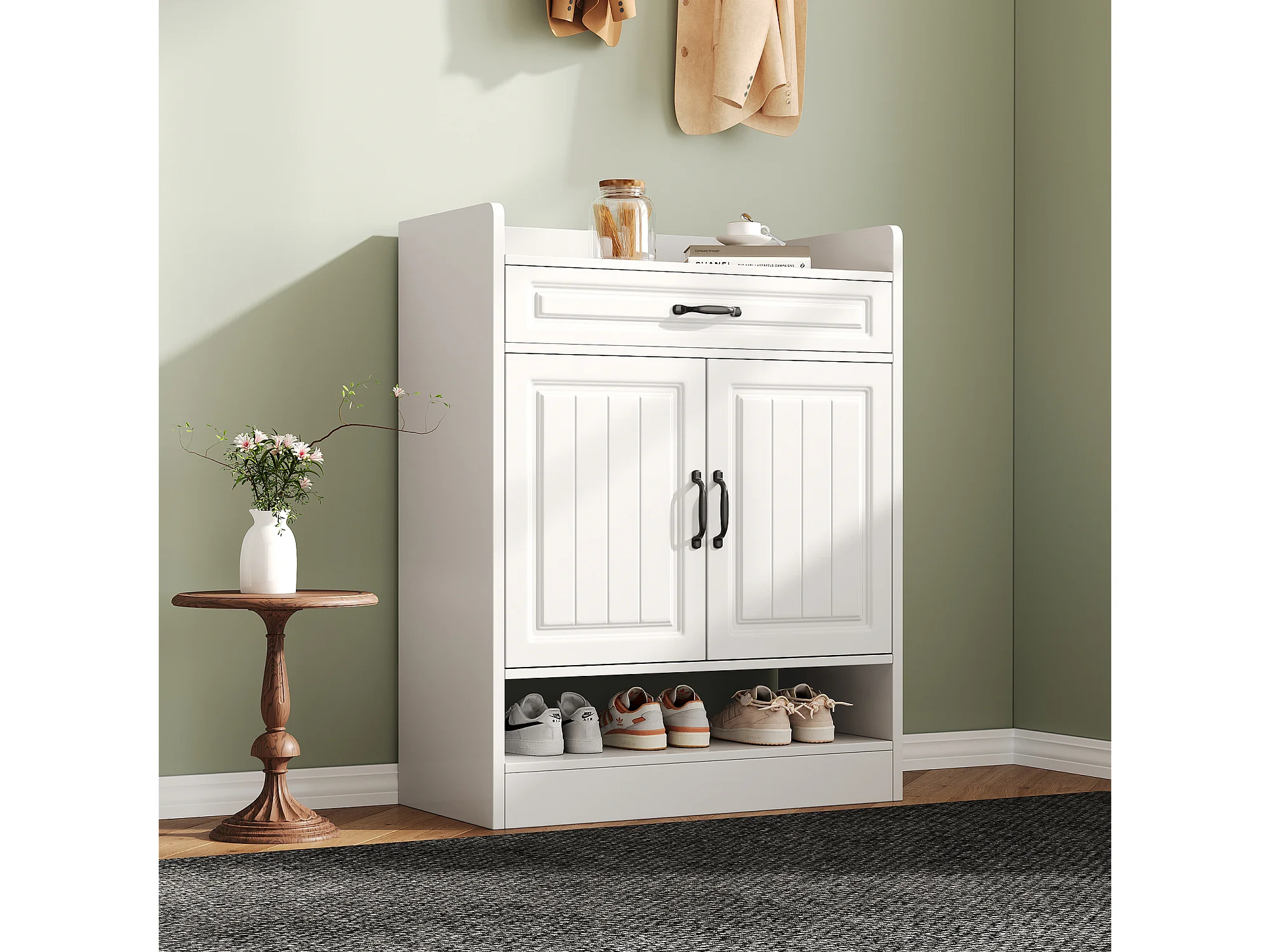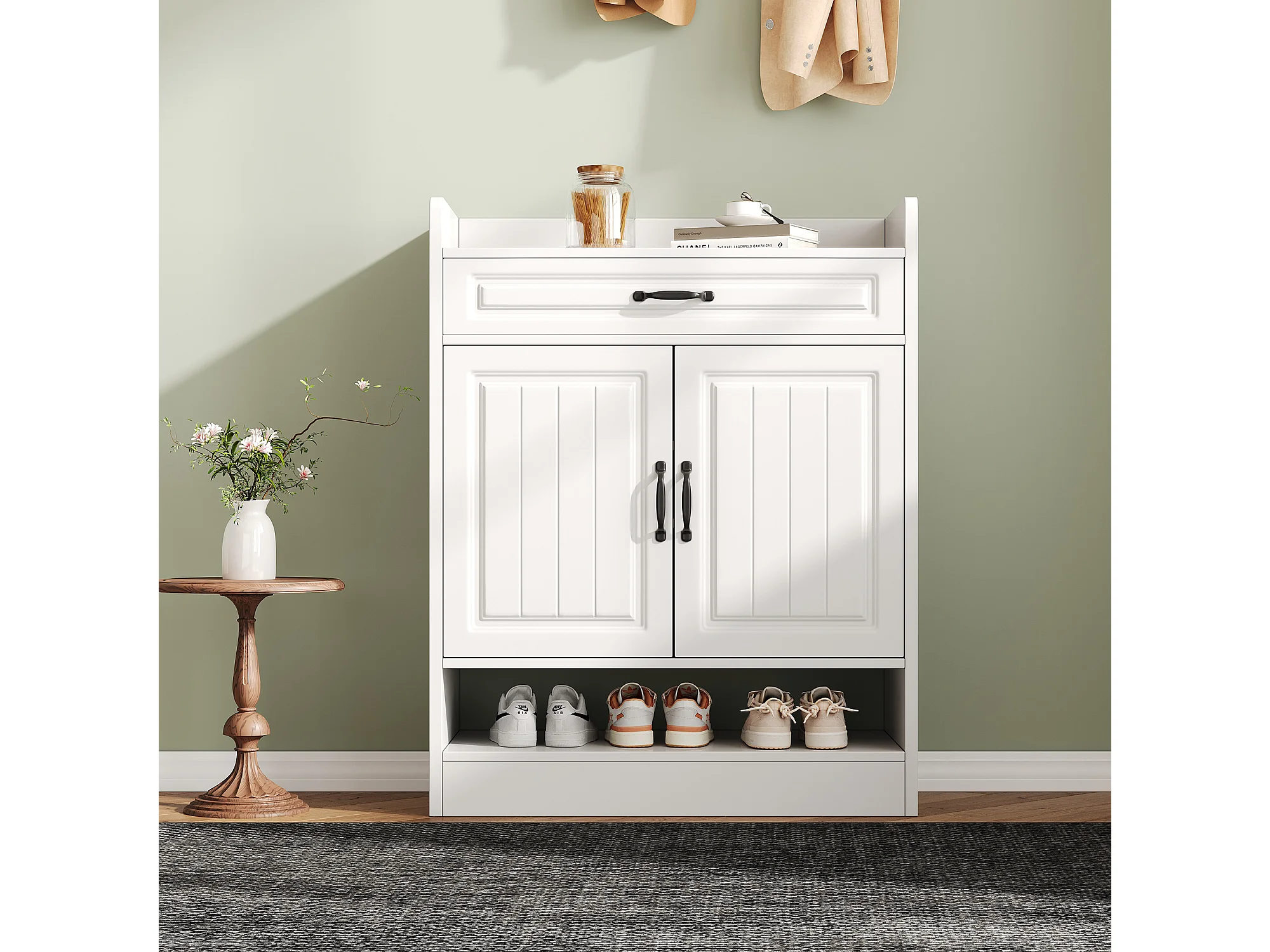 Meuble à chaussures 75x36x20.5cm - avec étagères réglables - avec 1 tiroir et 2 portes - Blanc