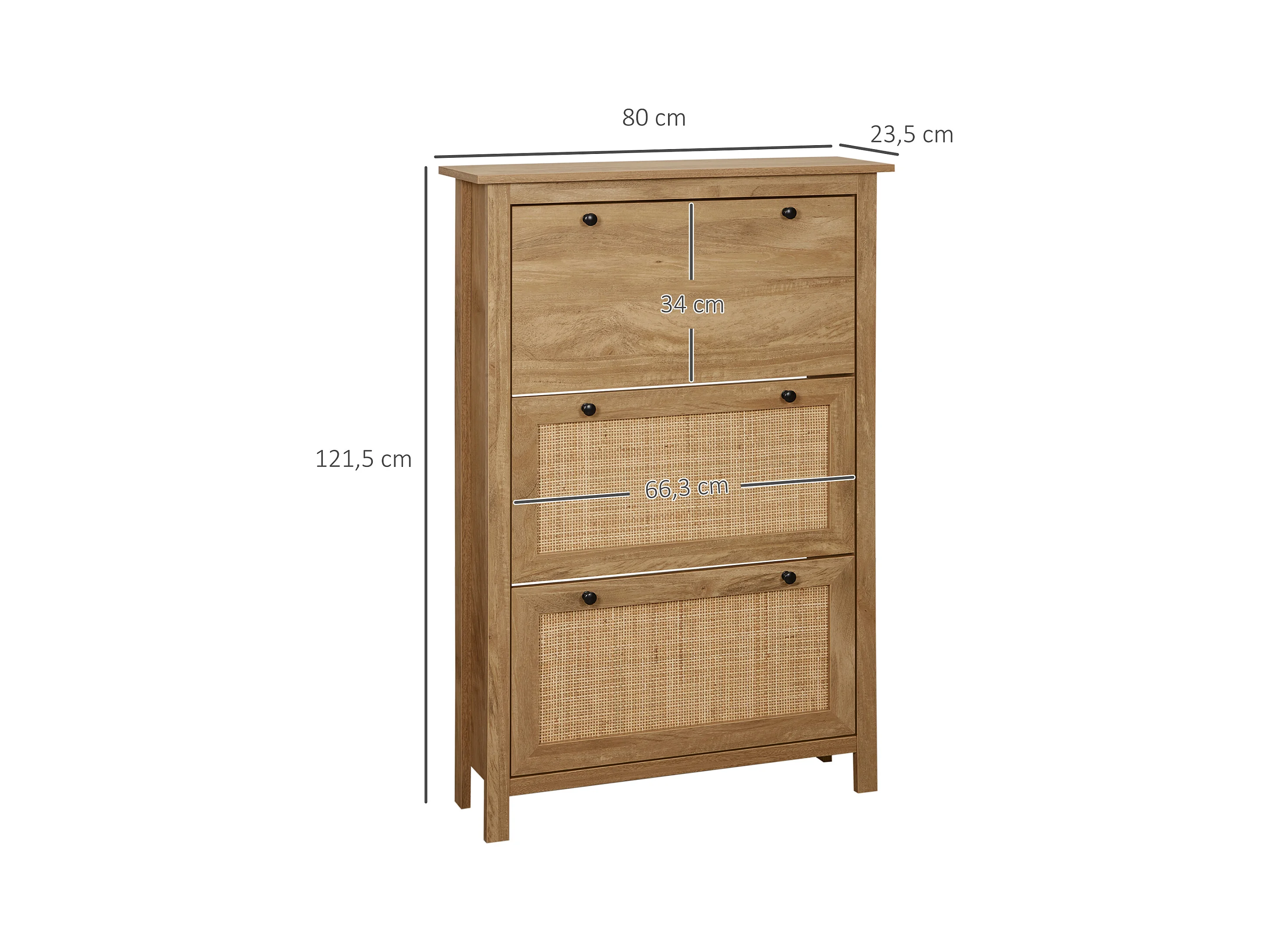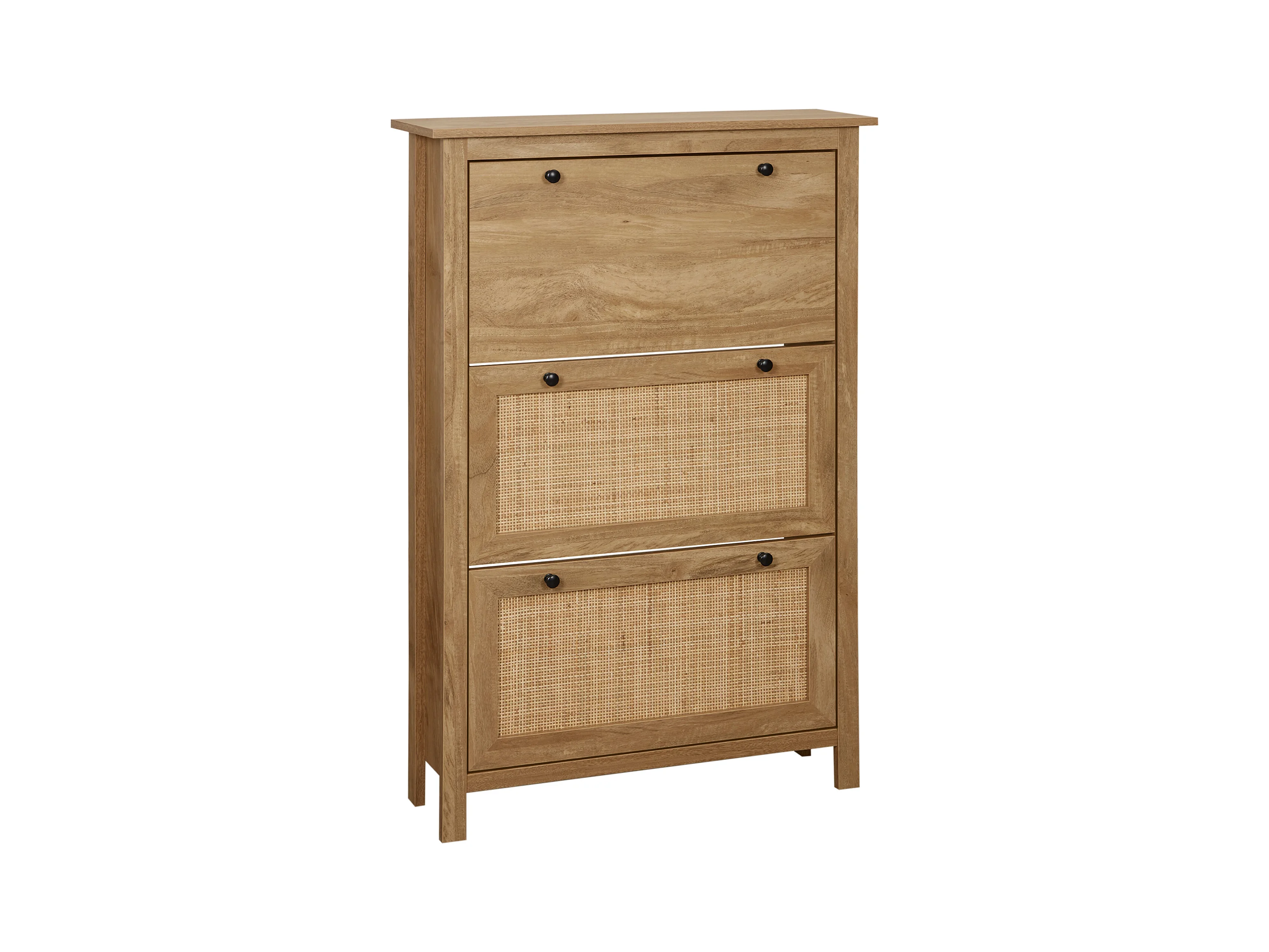 Meuble à chaussures 3 portes abattants dim. 80L x 23,5L x 121,5H cm aspect bois effet cannage rotin