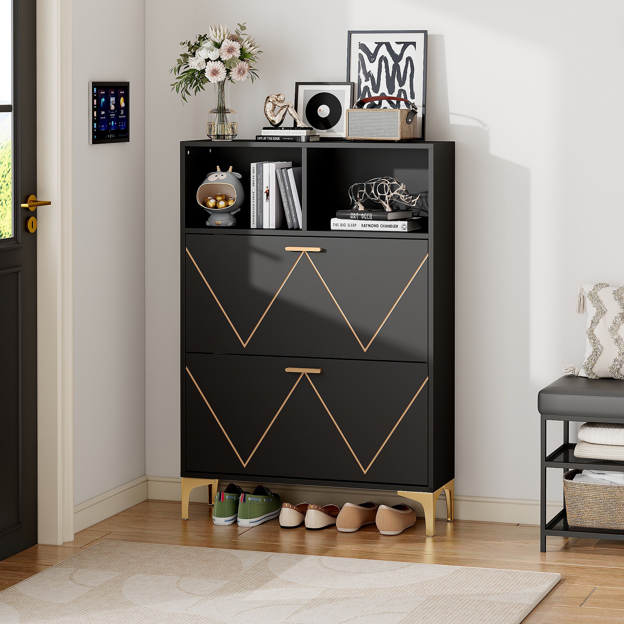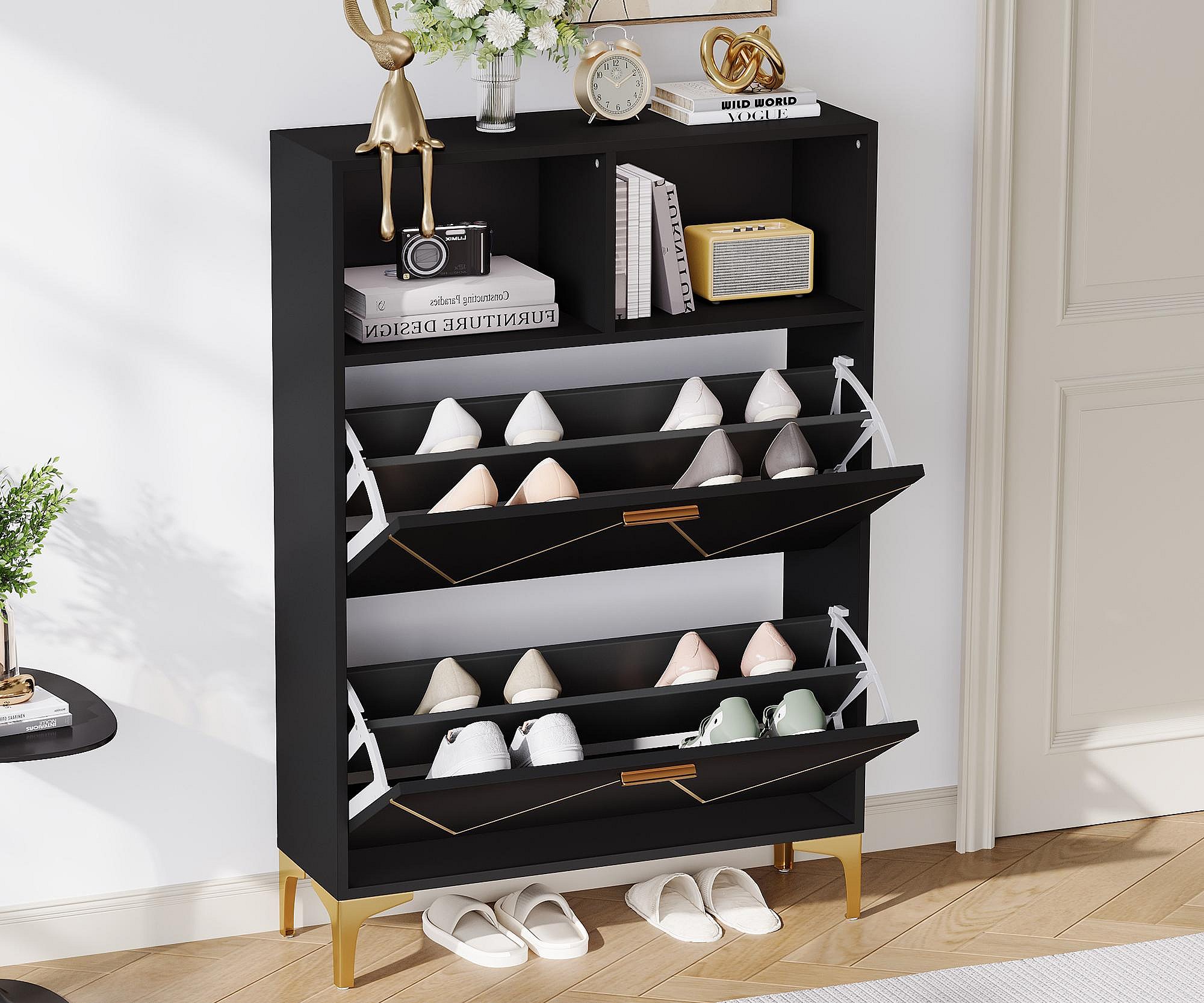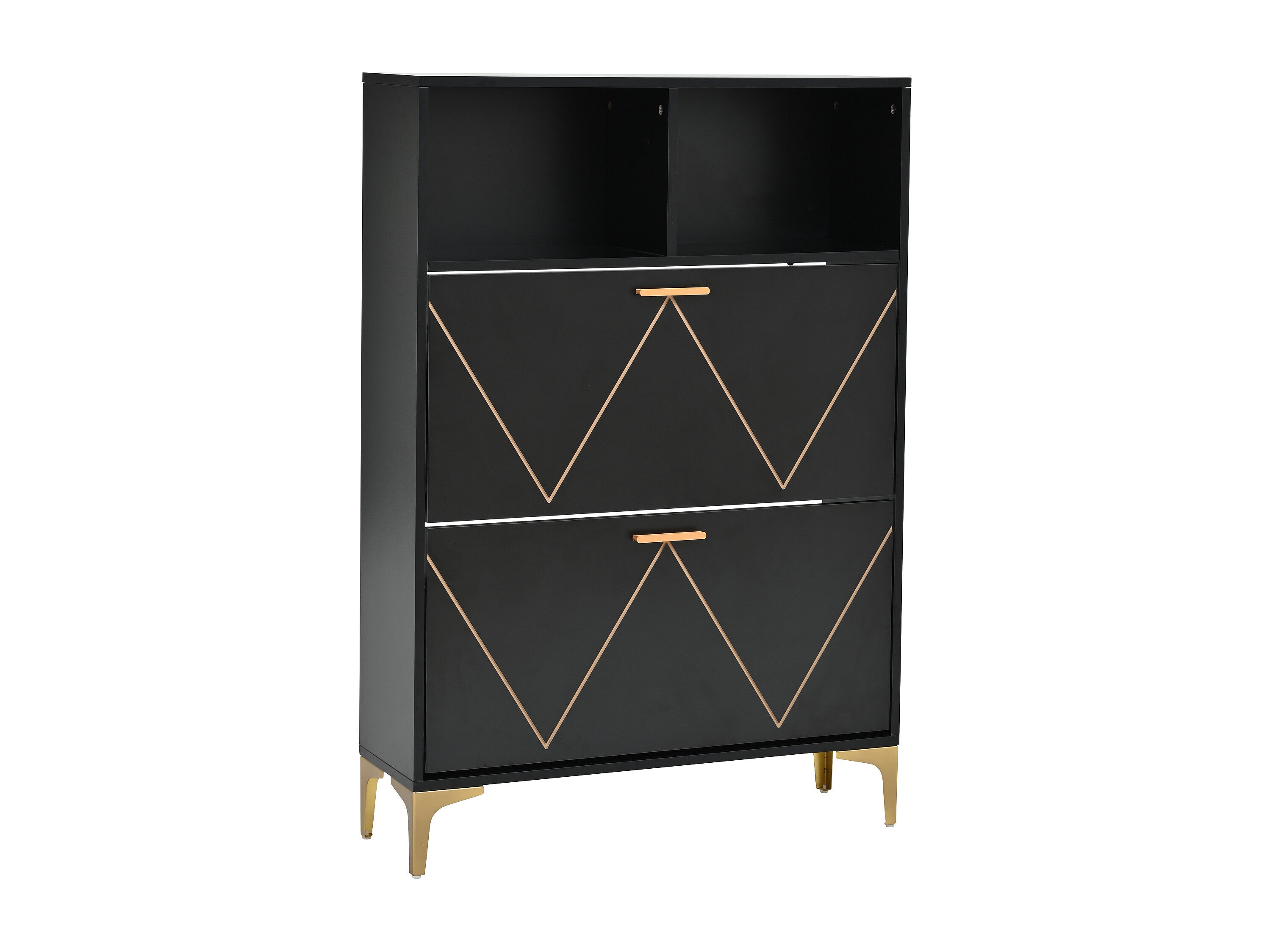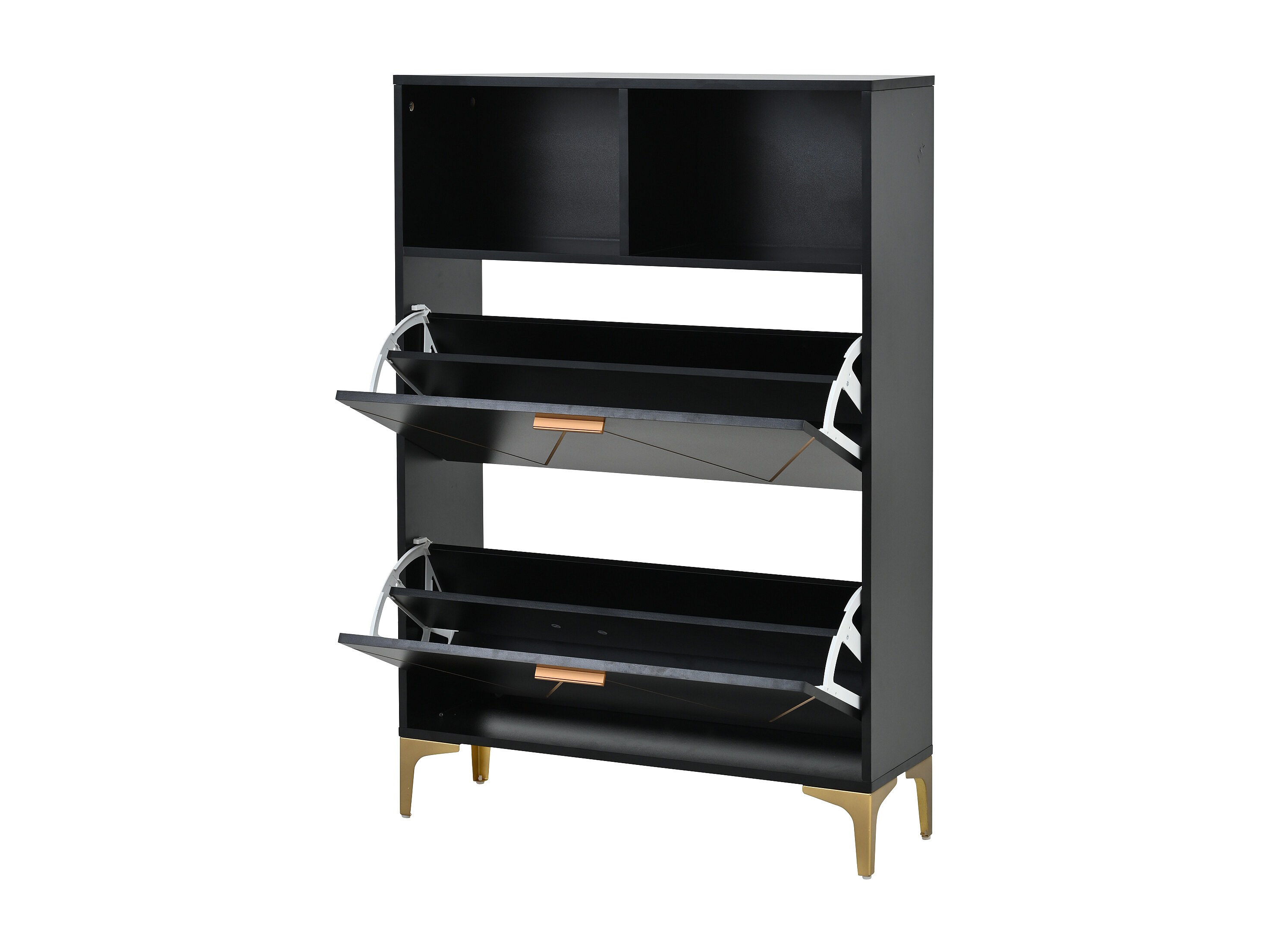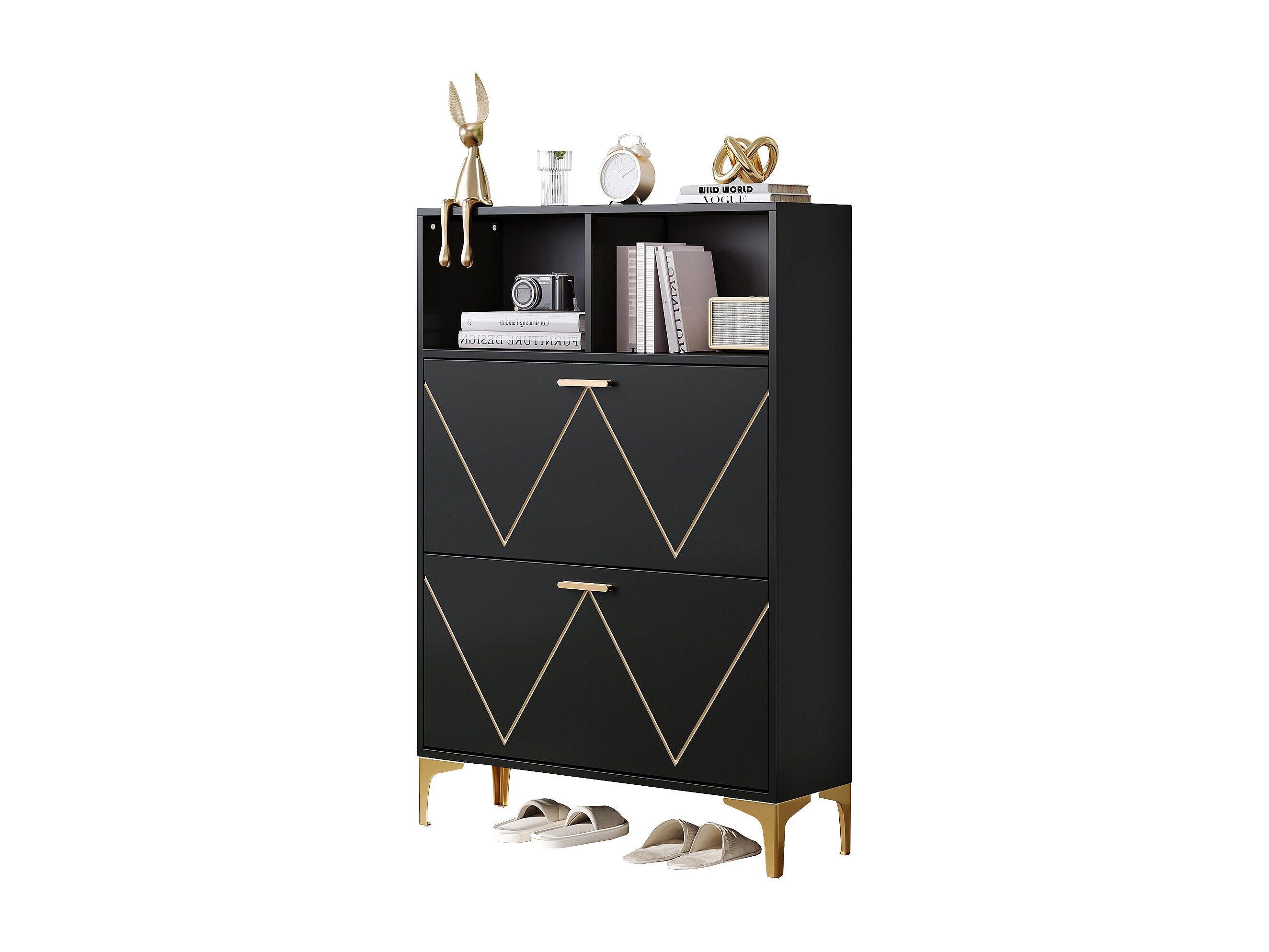 Meuble à chaussures 80x25x117cm - avec 2 portes abattantes - avec 2 étagères semi-ouvertes - MDF + Métal - Noir