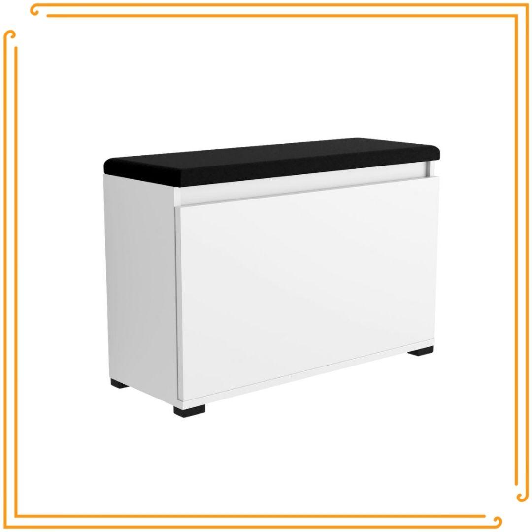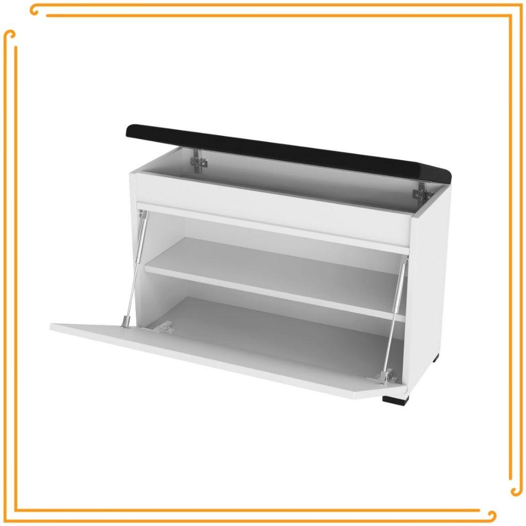 Meuble à chaussures 90 cm avec rangement, assise rembourrée, étagère – Blanc