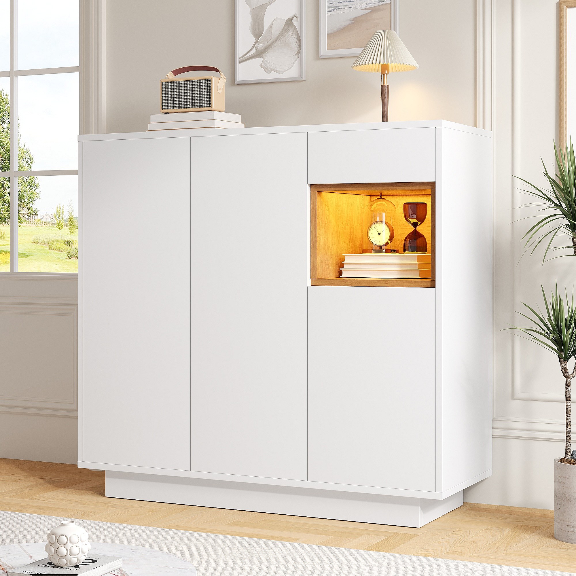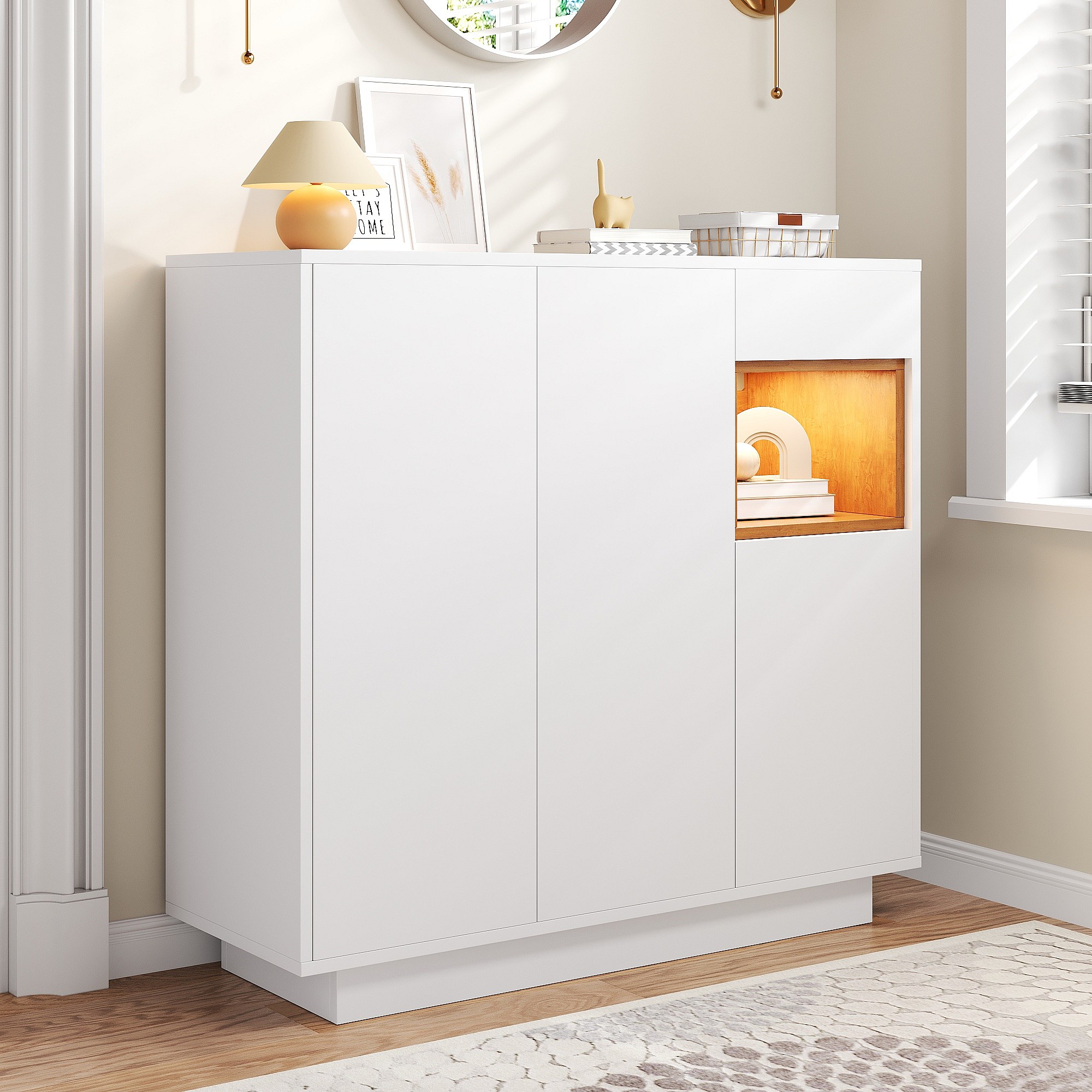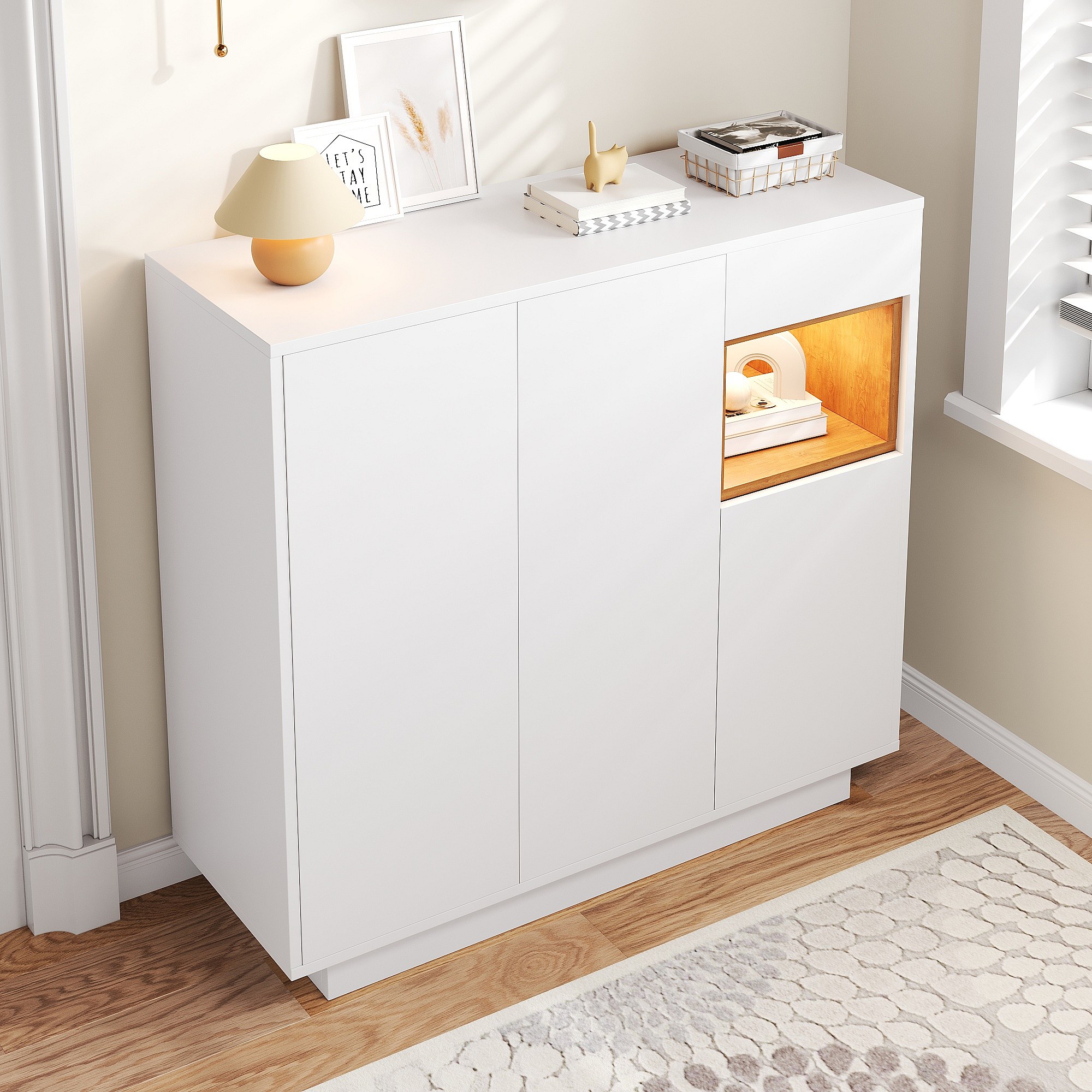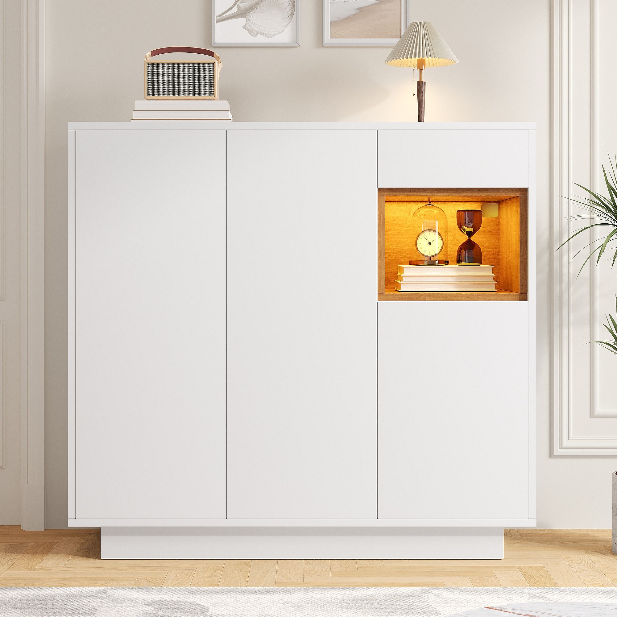 Meuble à chaussures avec 1 tiroir + 3 portes + Leds + étagères réglables - 105 x 39.5 x 100.5 cm - aggloméré - blanc