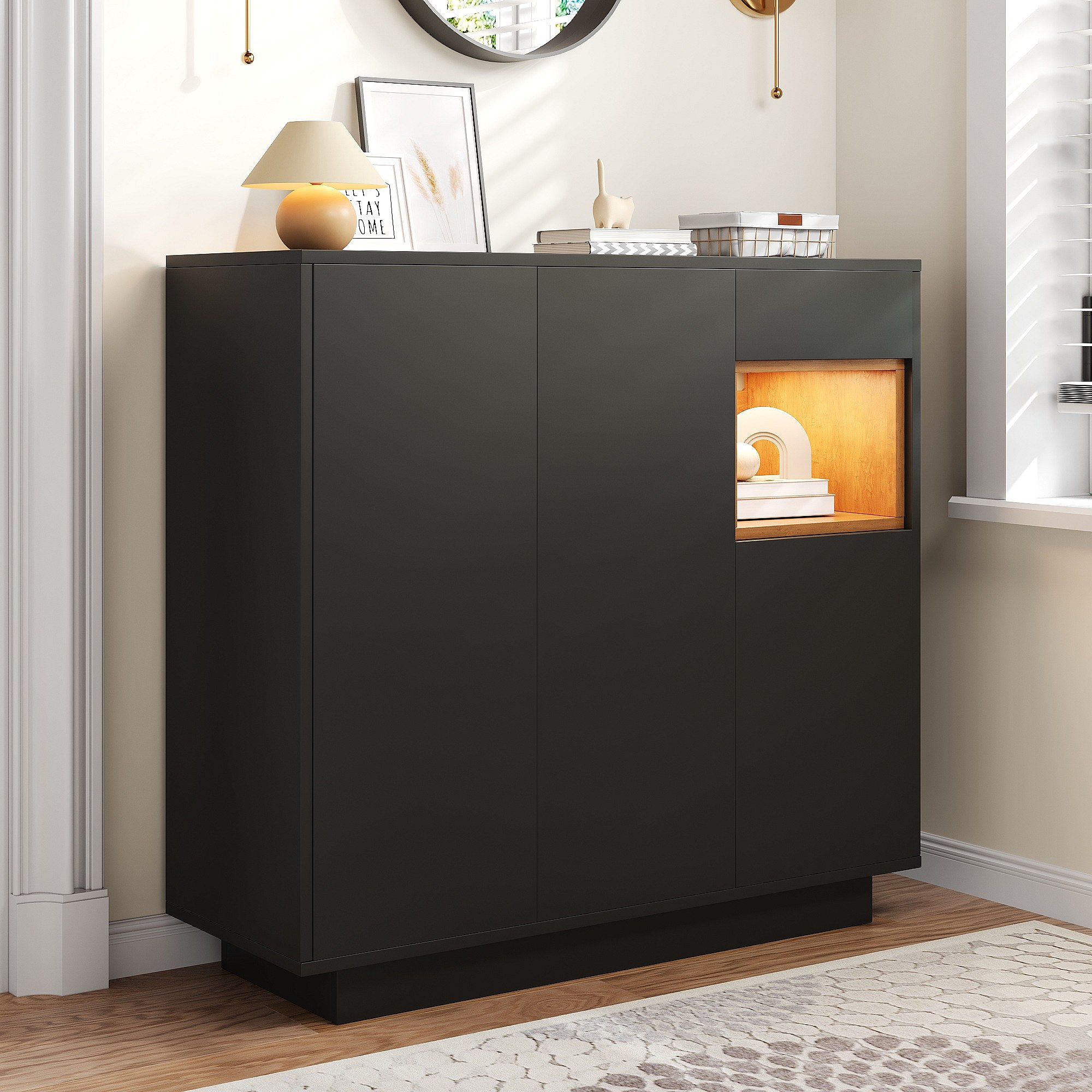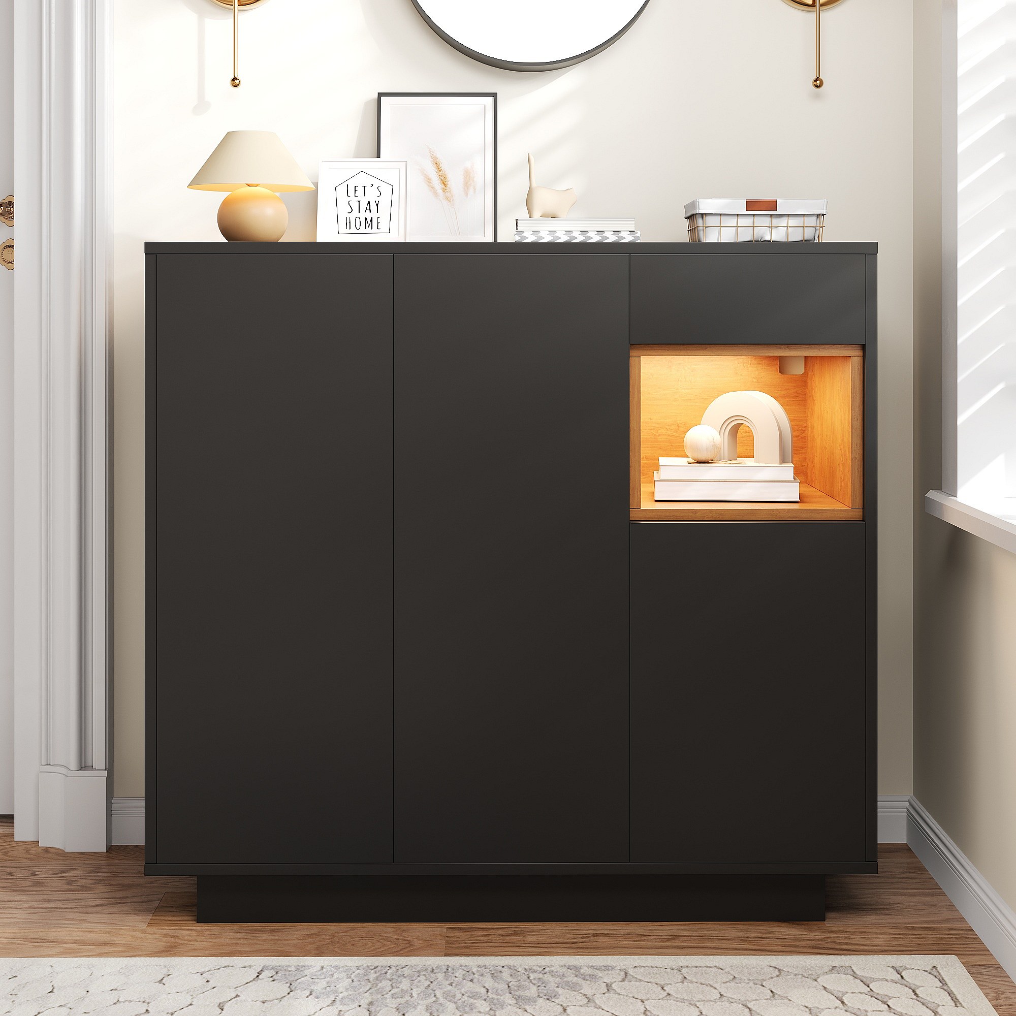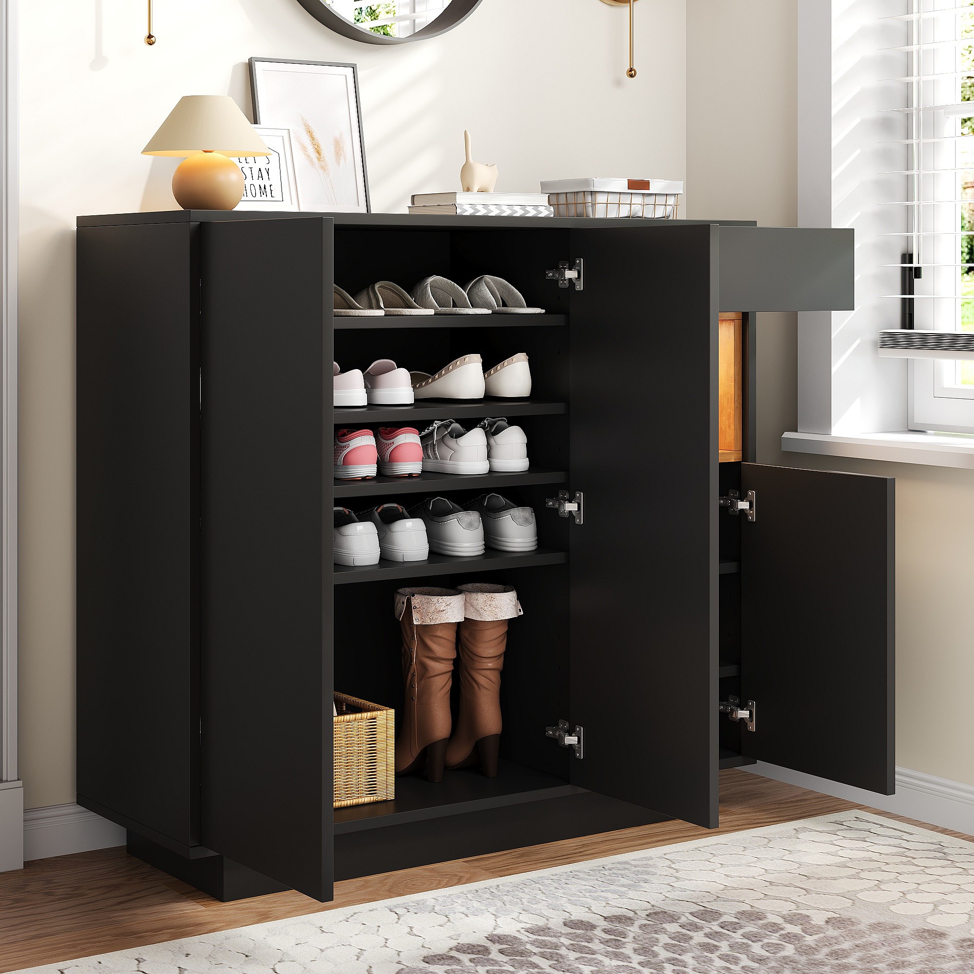 Meuble à chaussures avec 1 tiroir + 3 portes + Leds + étagères réglables - 105 x 39.5 x 100.5 cm - aggloméré - noir