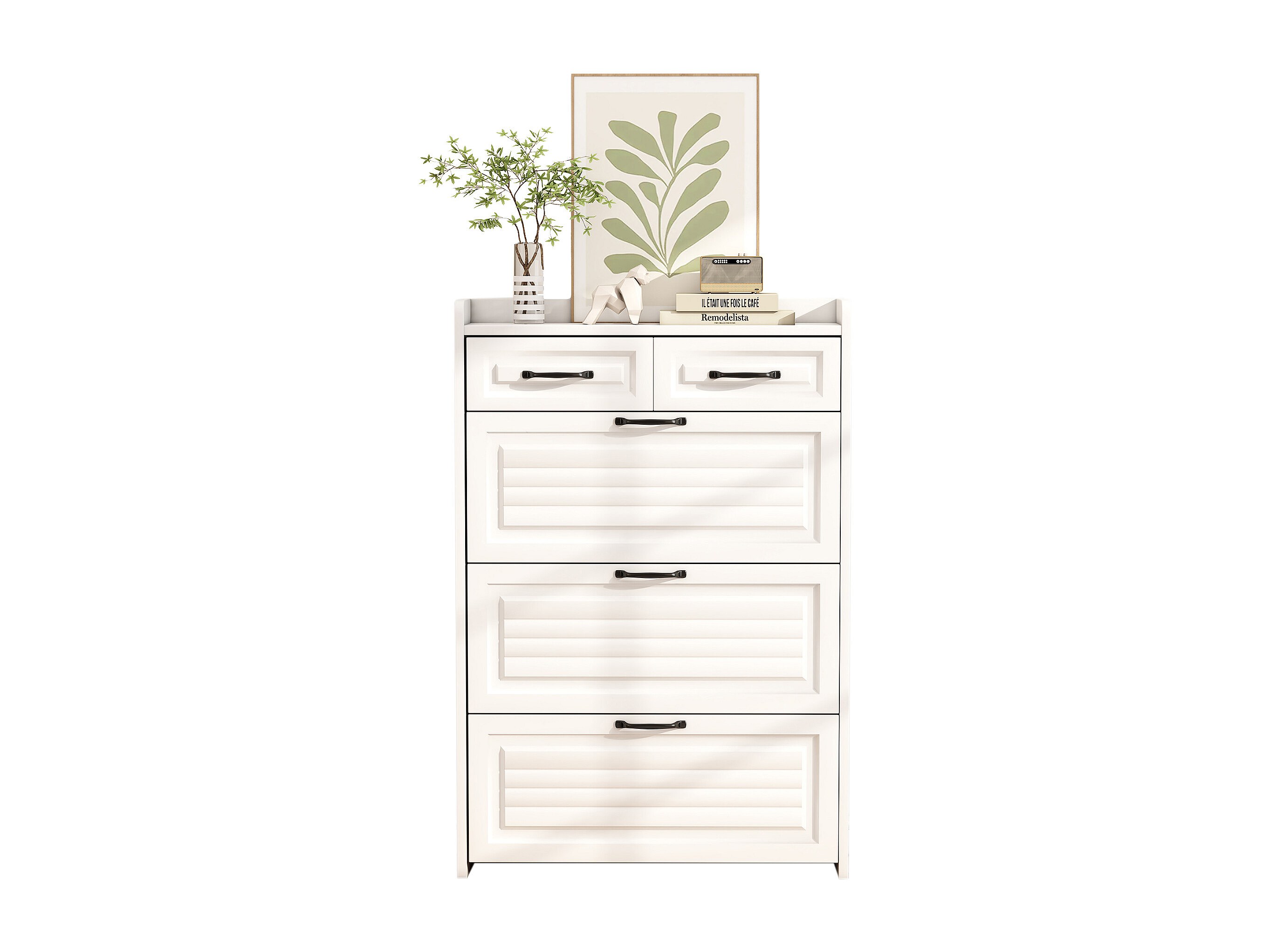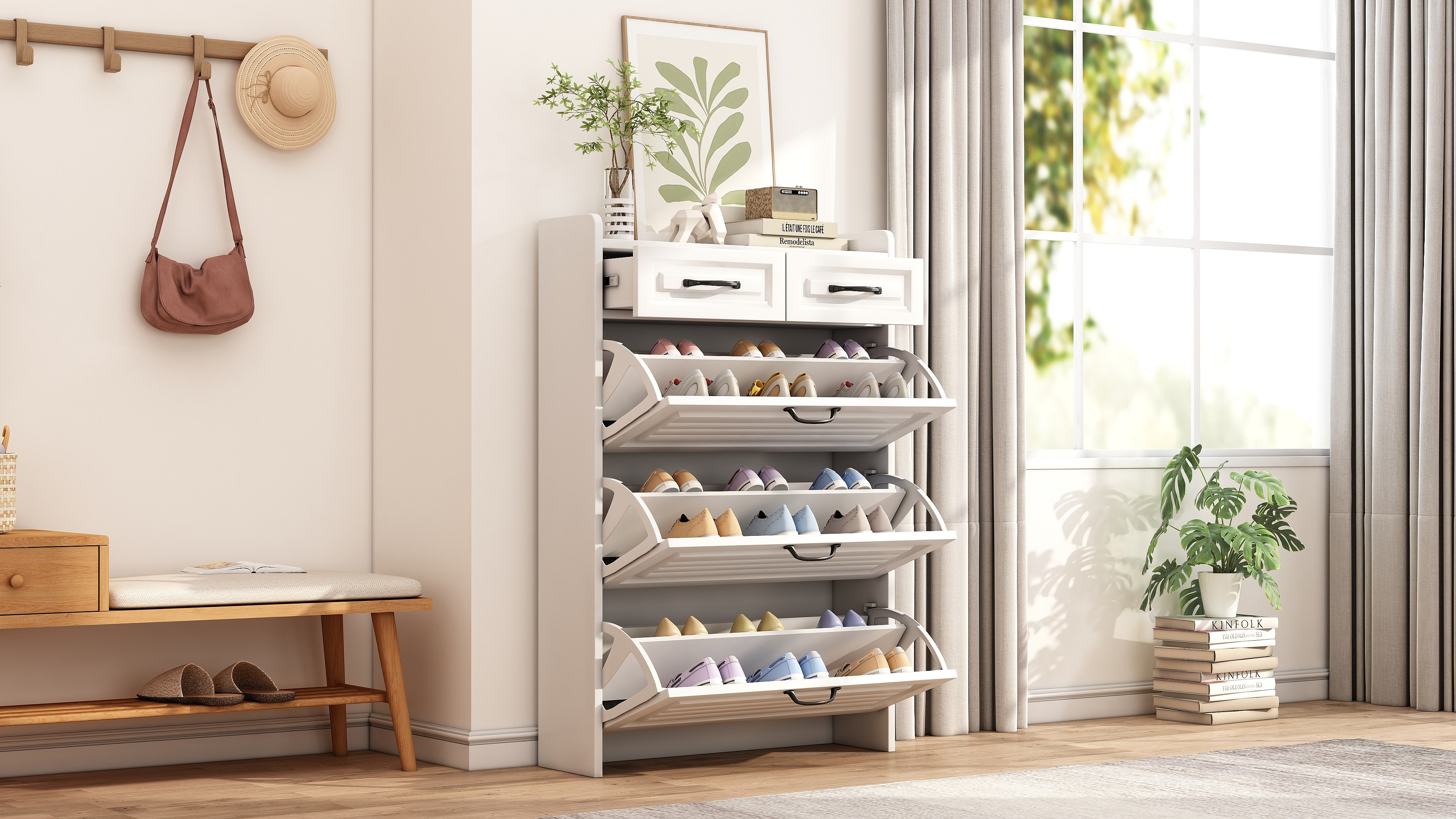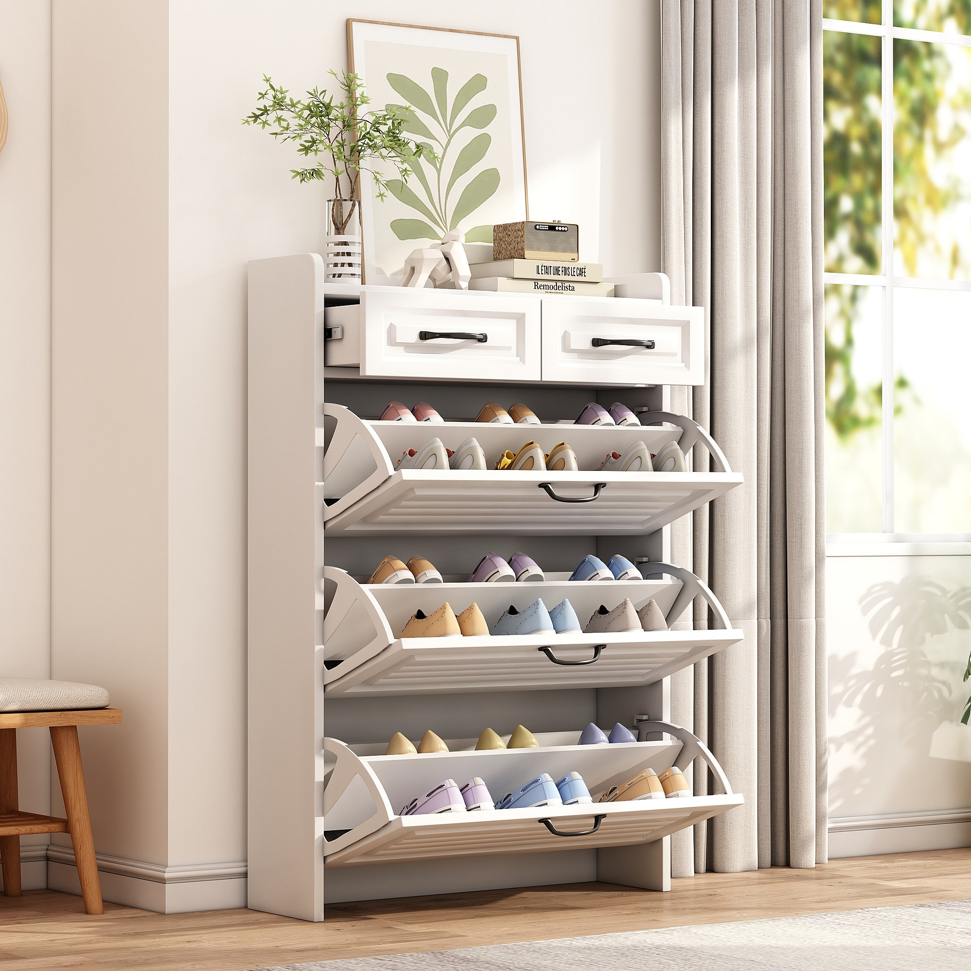 Meuble à chaussures avec 3 abattants + 2 tiroirs - étagère à chaussures - 80 x 23 x 131 cm - aggloméré - blanc
