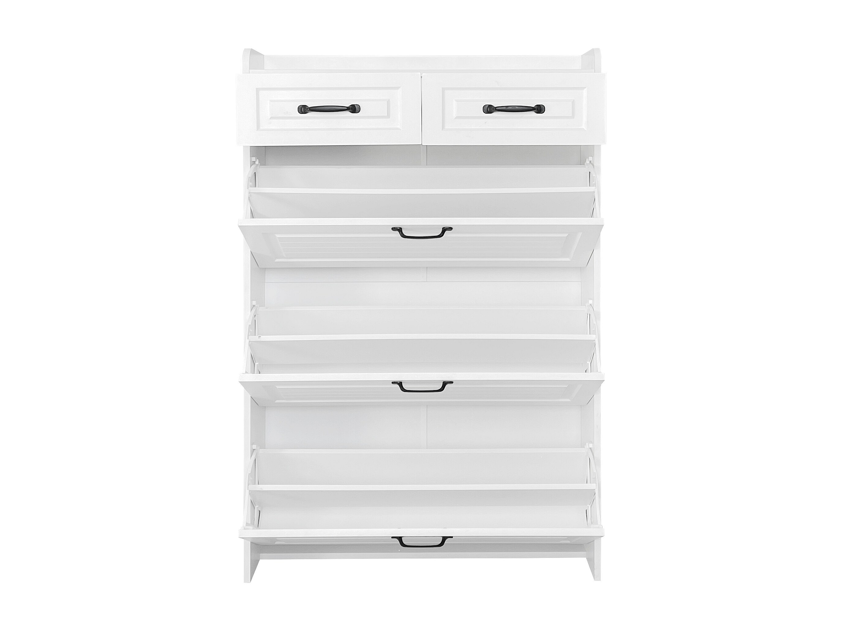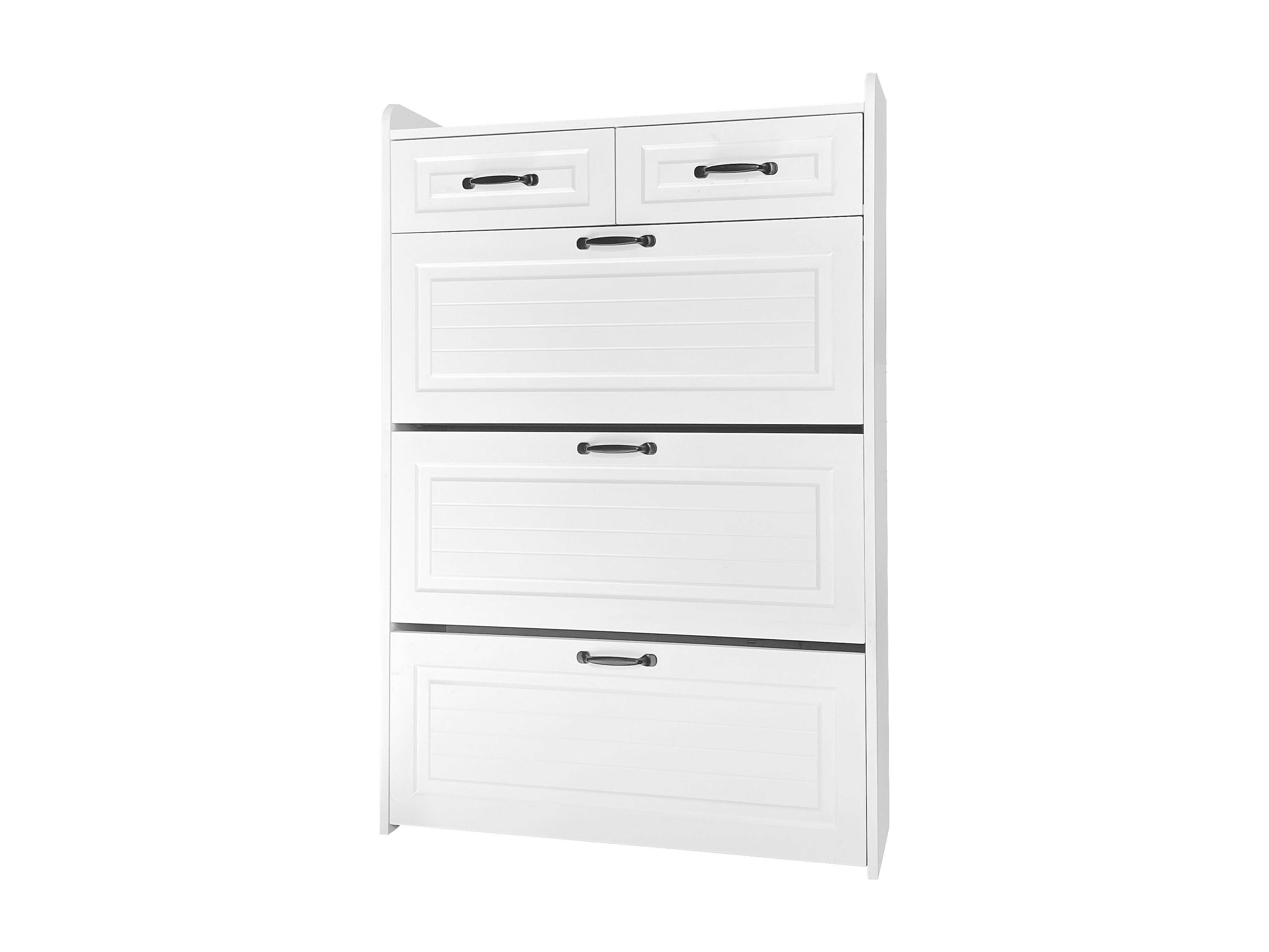 Meuble à chaussures avec 2 tiroirs et 4 portes - 130 x 37 x 100 cm - pieds en métal et panneaux de particules -Blanc