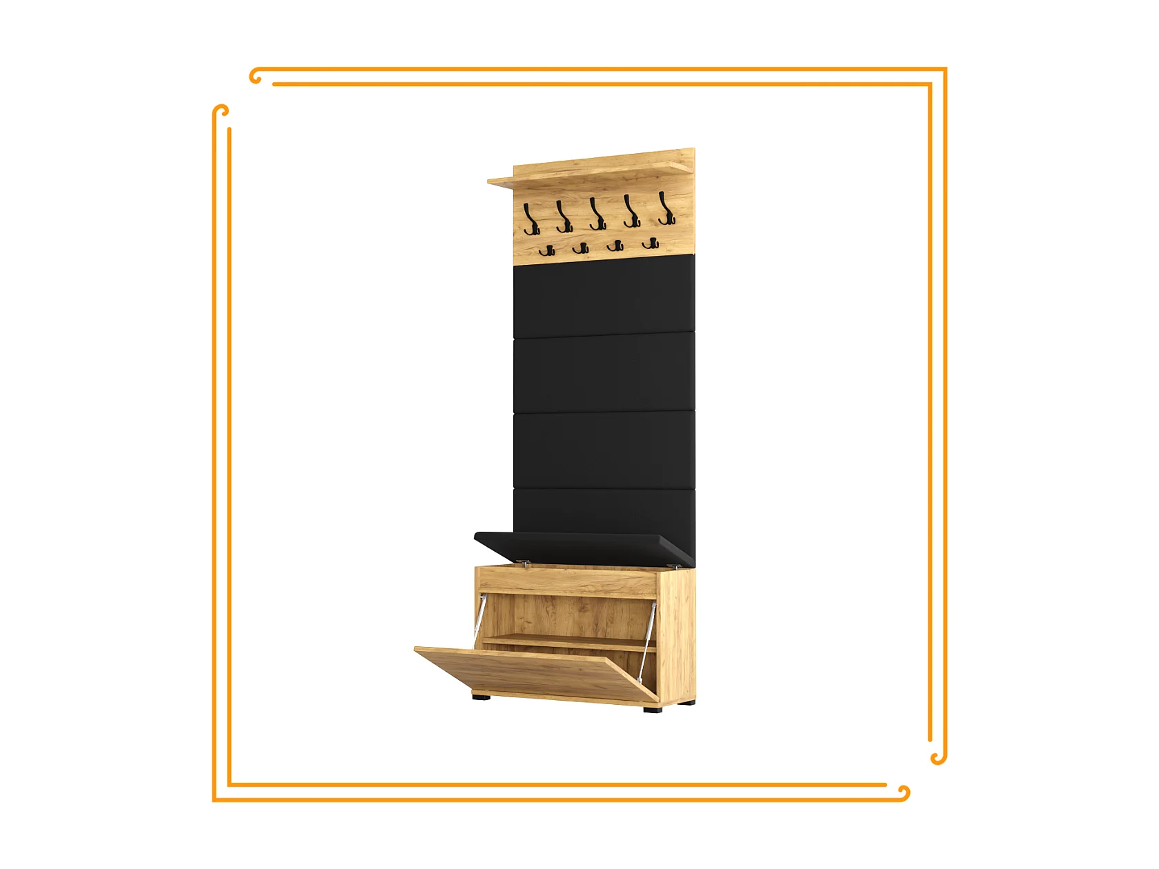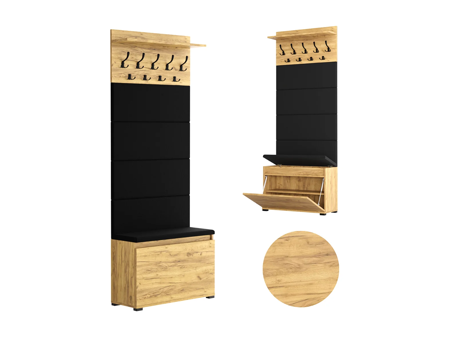Meuble à chaussures avec assise, banc rembourré et patère pour entrée