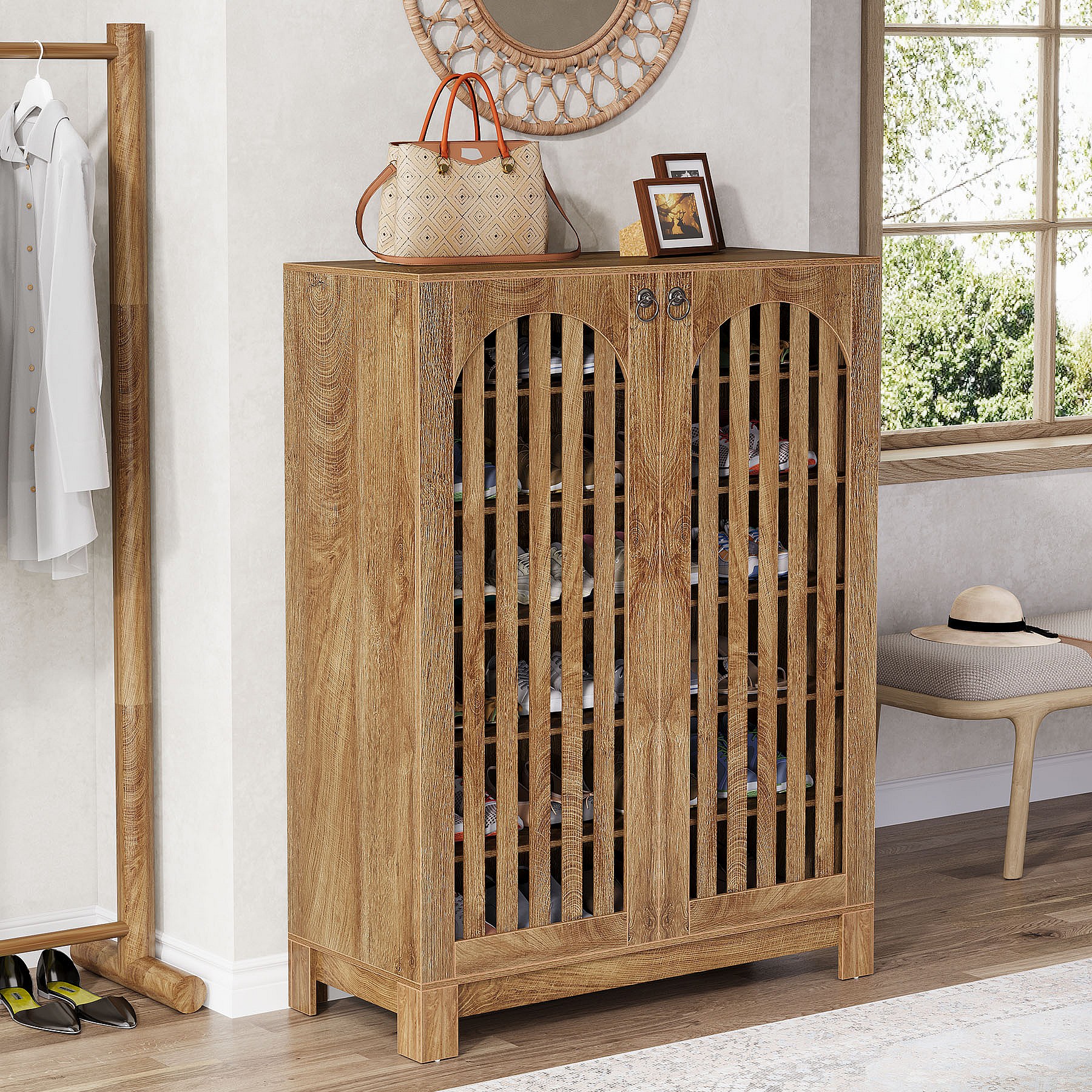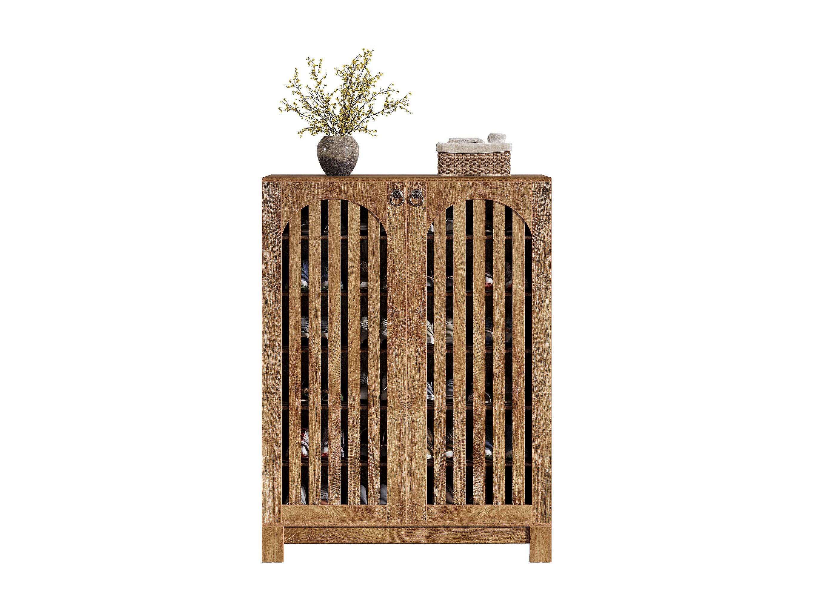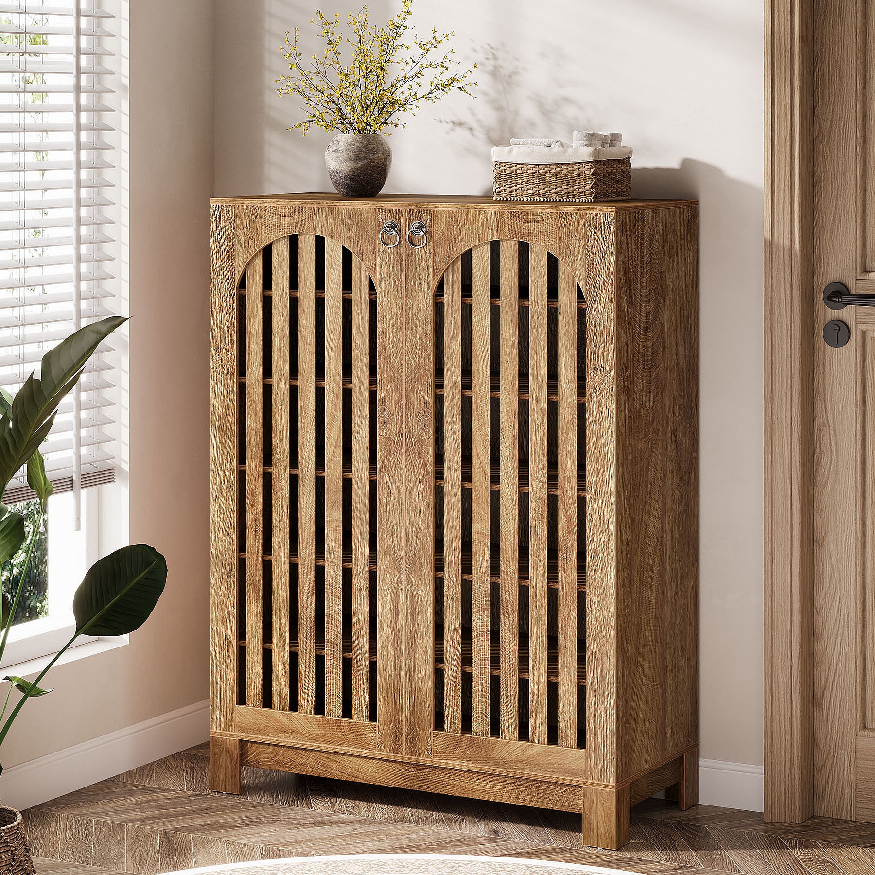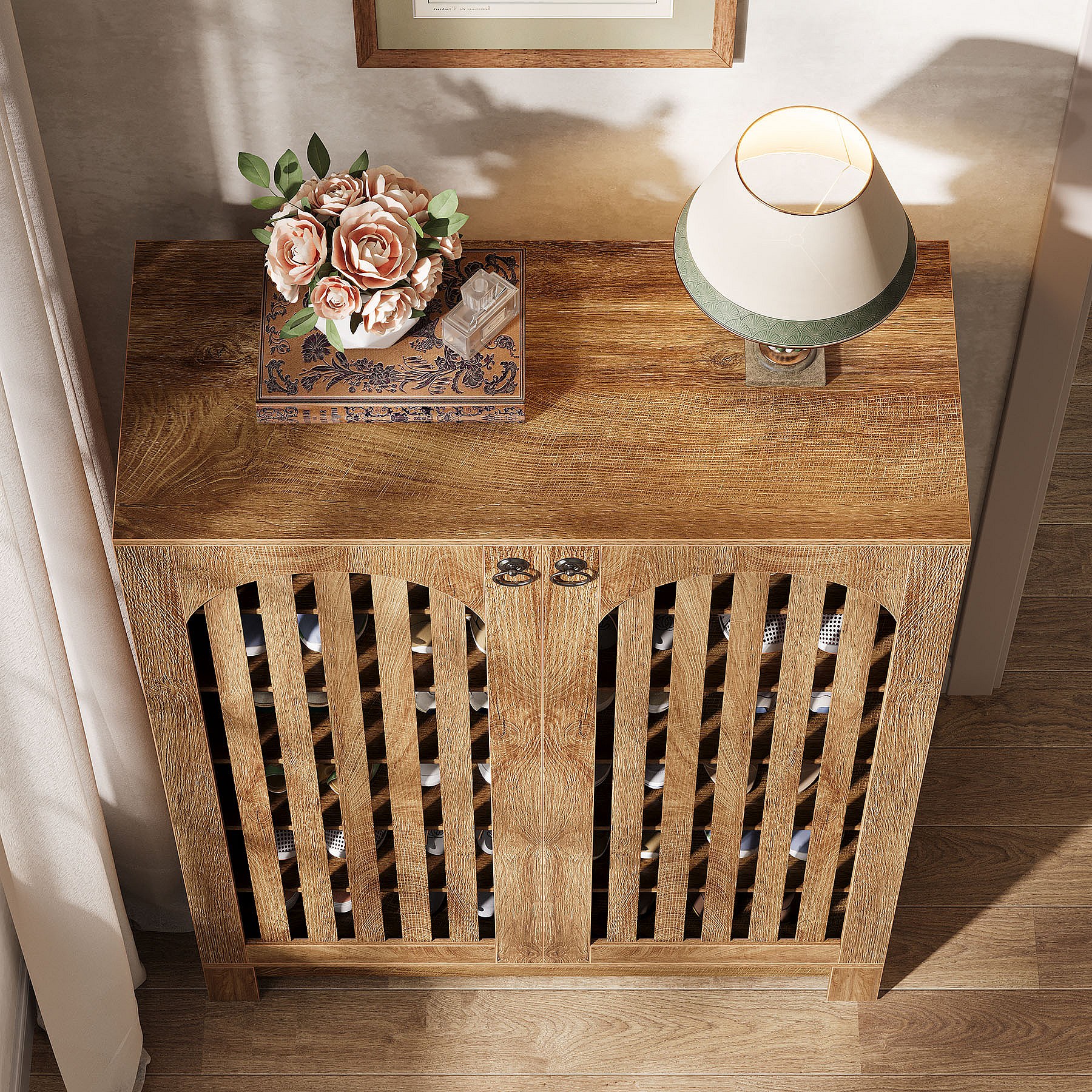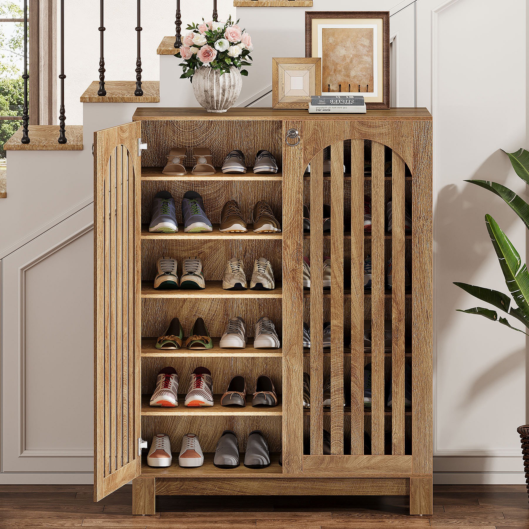 Meuble à chaussures avec portes aérées, rangement à chaussures d'entrée à 6 niveaux avec étagères réglables