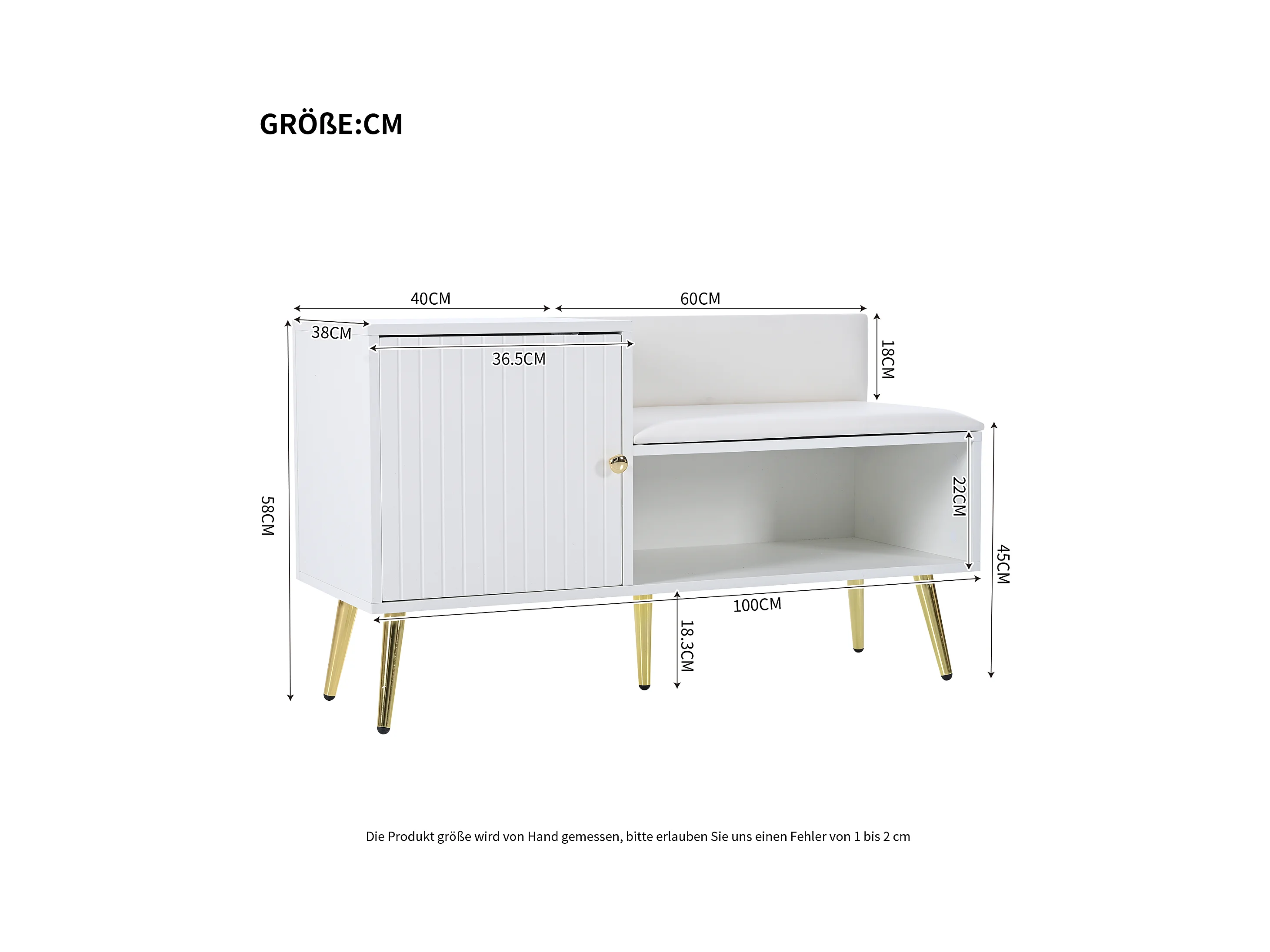 Meuble à chaussures blanc avec 1 porte et banc rembourré, pieds en métal 100x38x58cm
