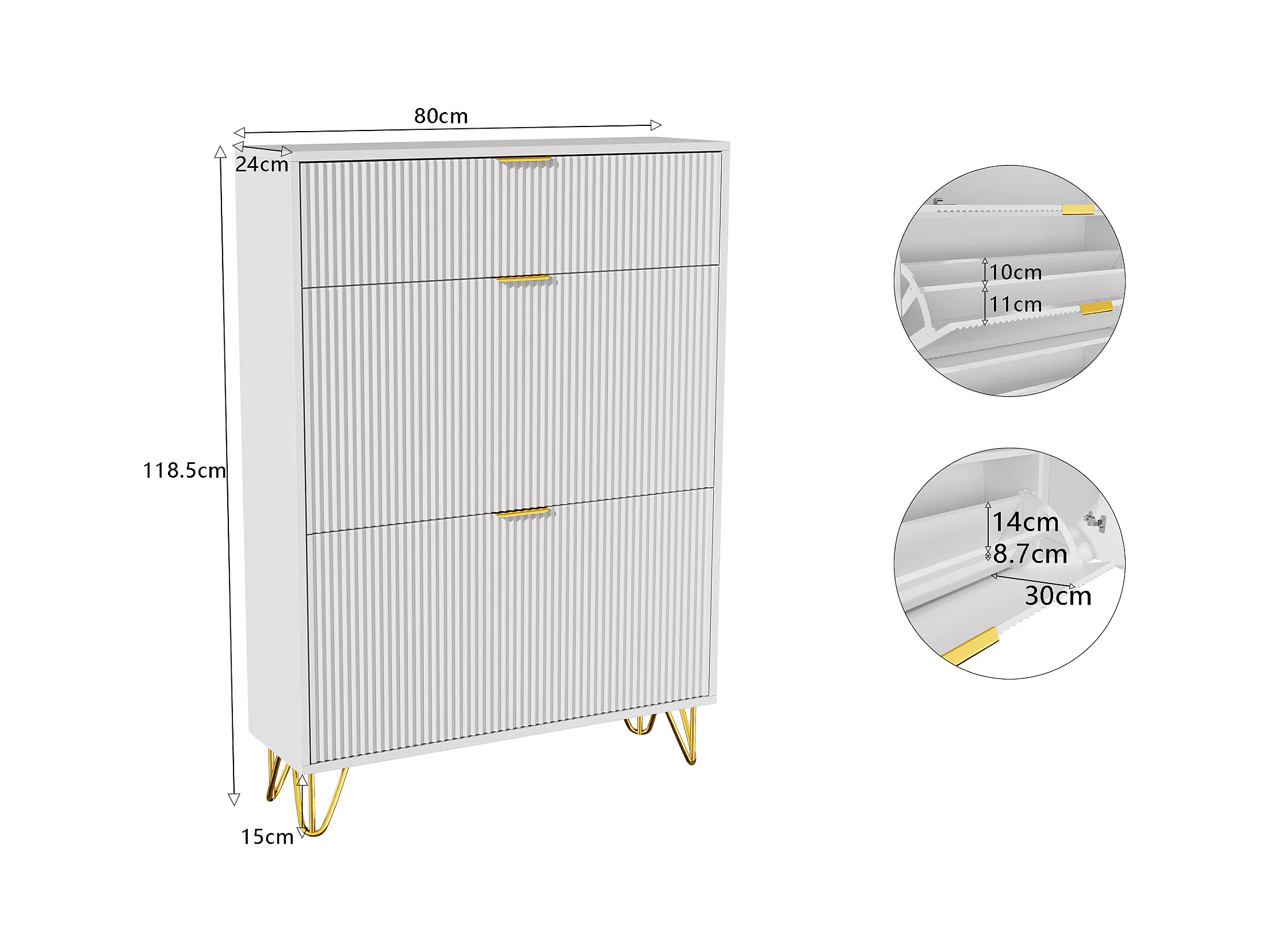Meuble à chaussures étroit avec 3 grands compartiments, étagère à chaussures réglable, 80 x 24 x 118,5 cm, blanc