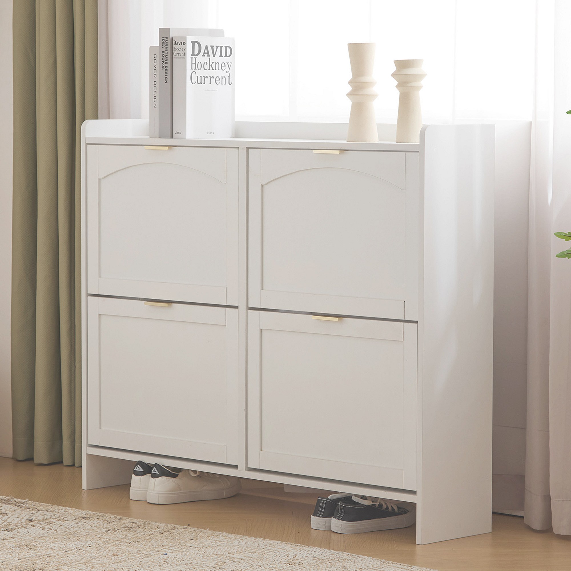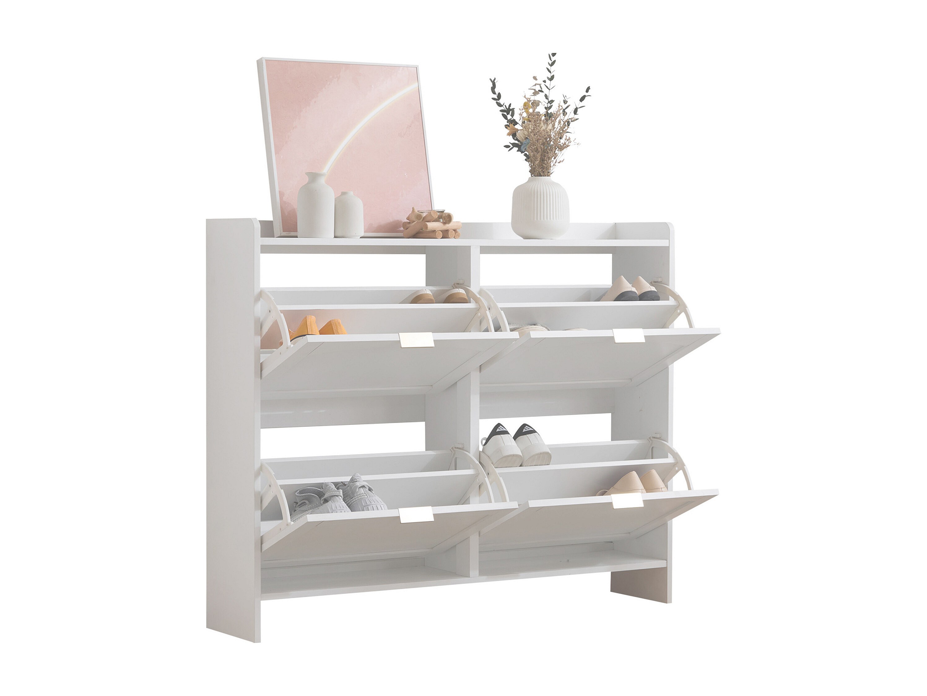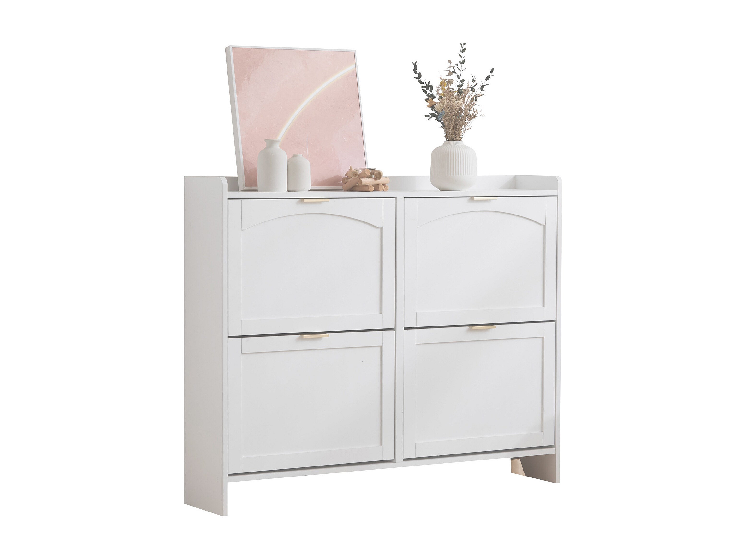 Meuble à chaussures moderne avec 4 rangement à rabat - 100 x 24 x 90 cm - aggloméré - blanc