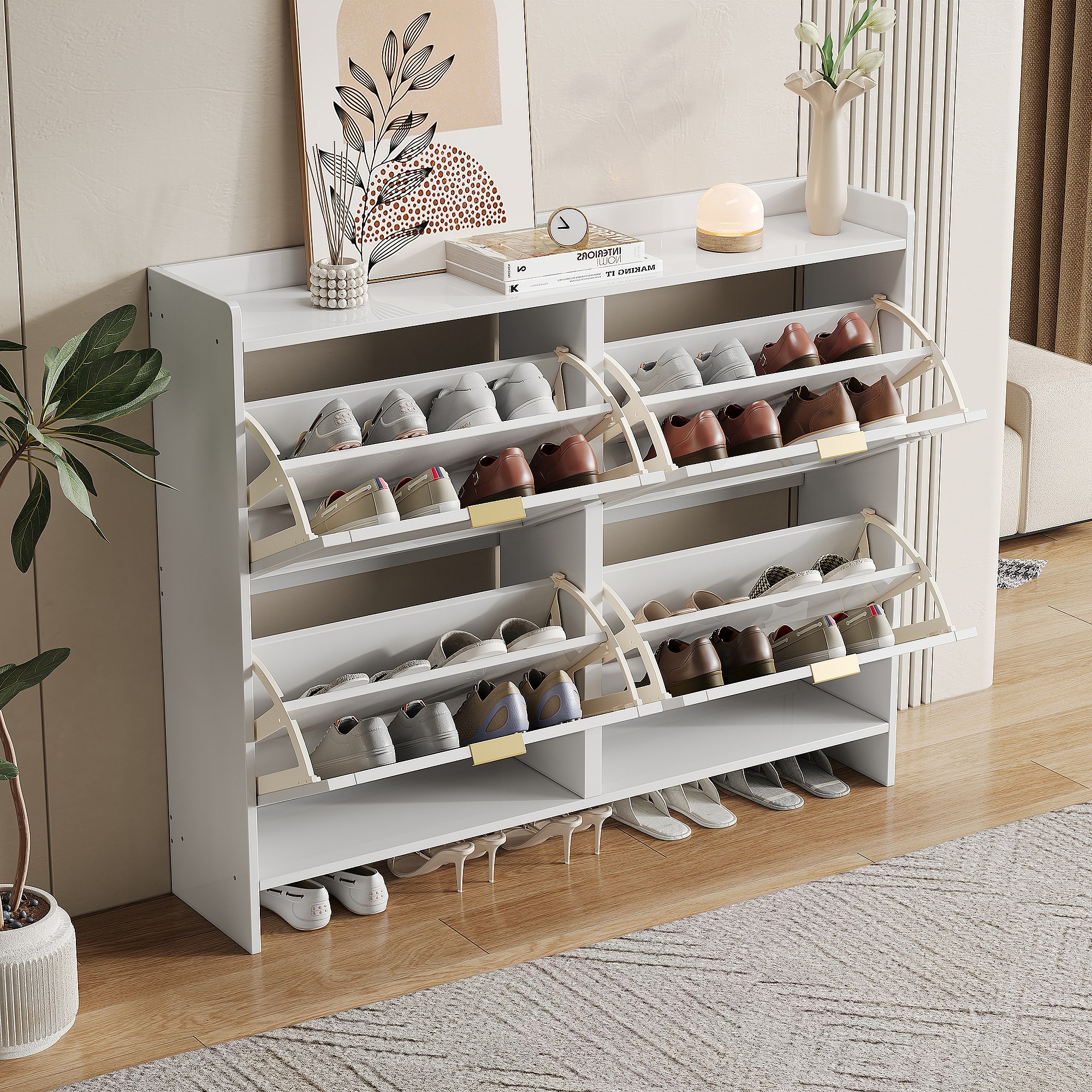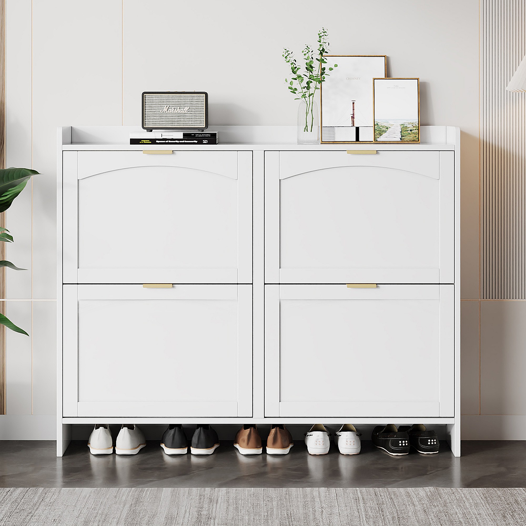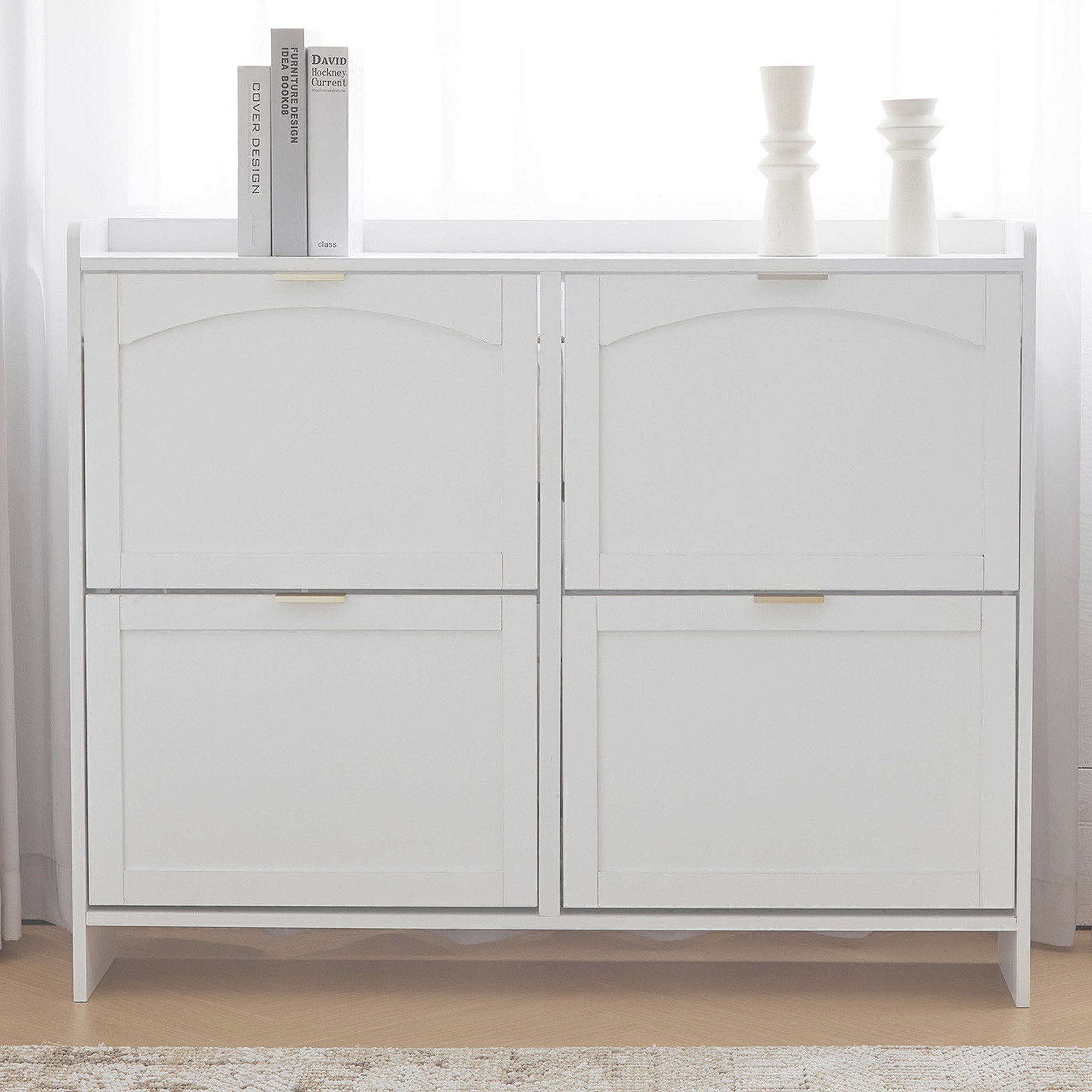 Meuble à chaussures moderne avec 4 rangement à rabat - 100 x 24 x 90 cm - aggloméré - blanc