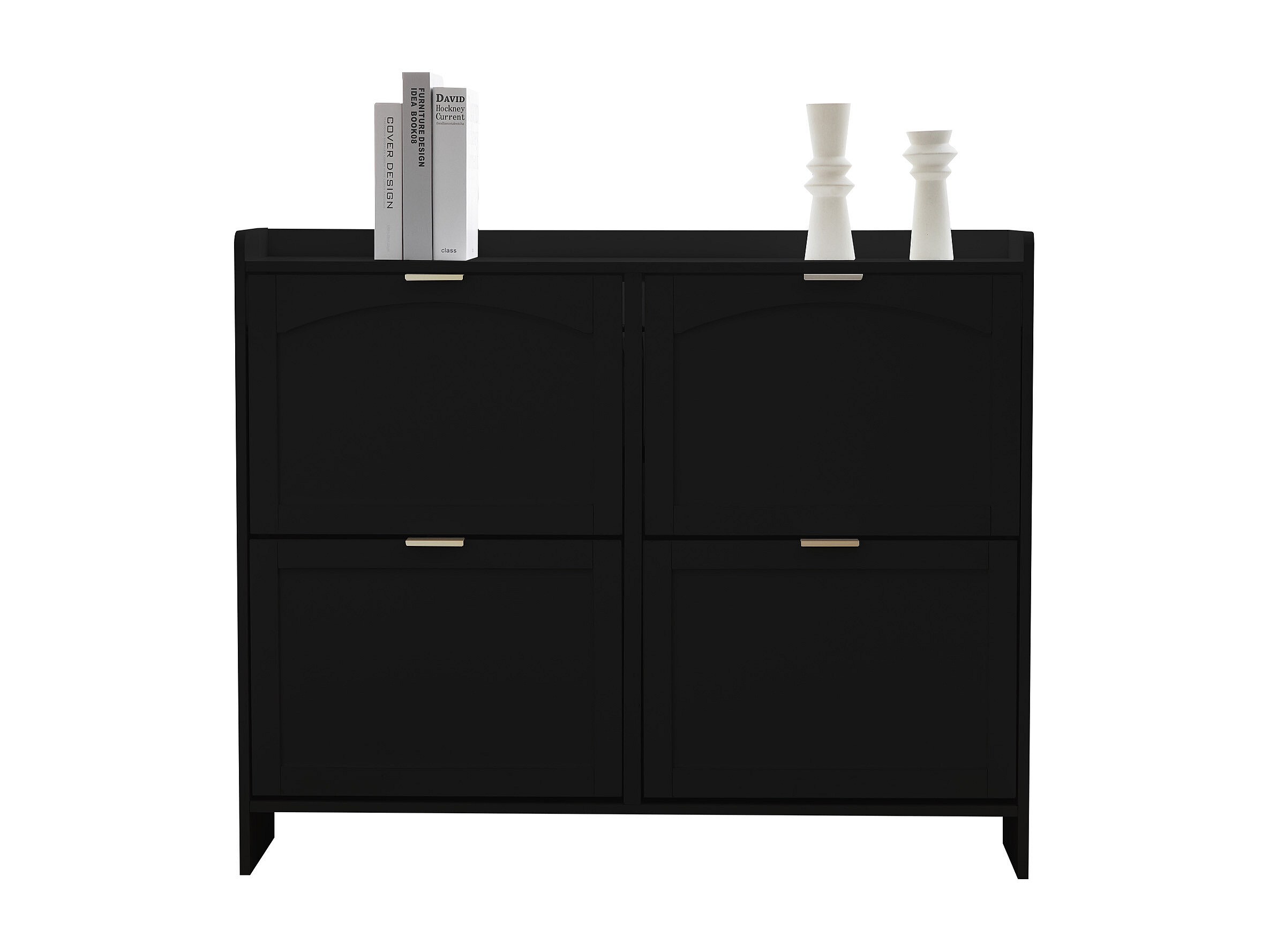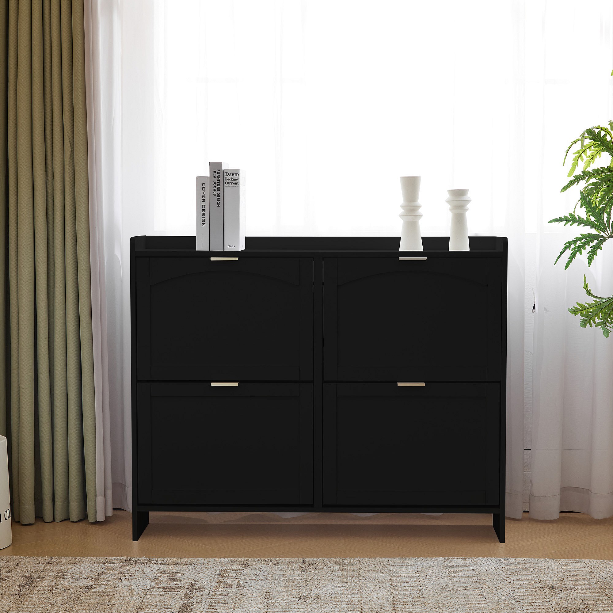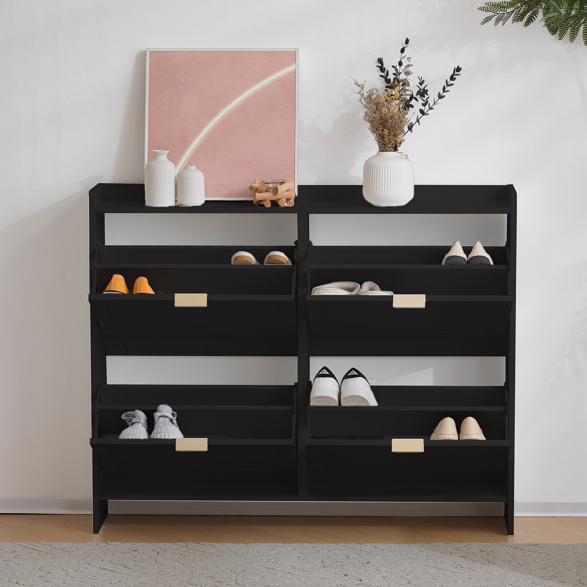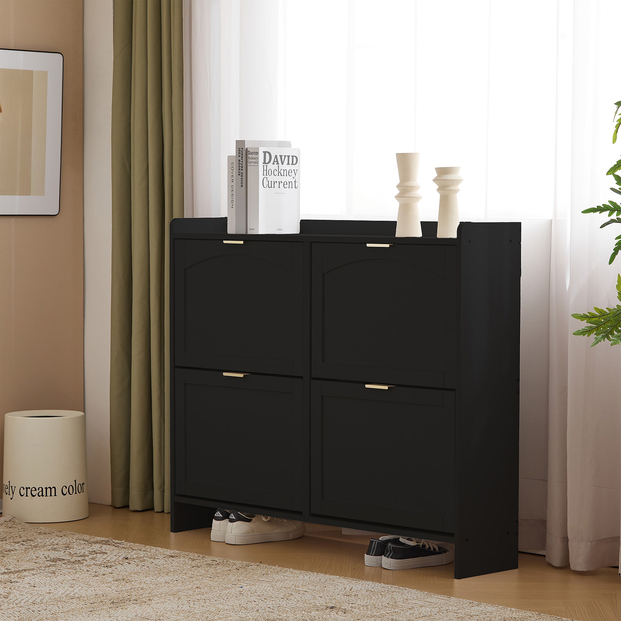 Meuble à chaussures moderne avec 4 rangement à rabat - 100 x 24 x 90 cm - aggloméré - noir