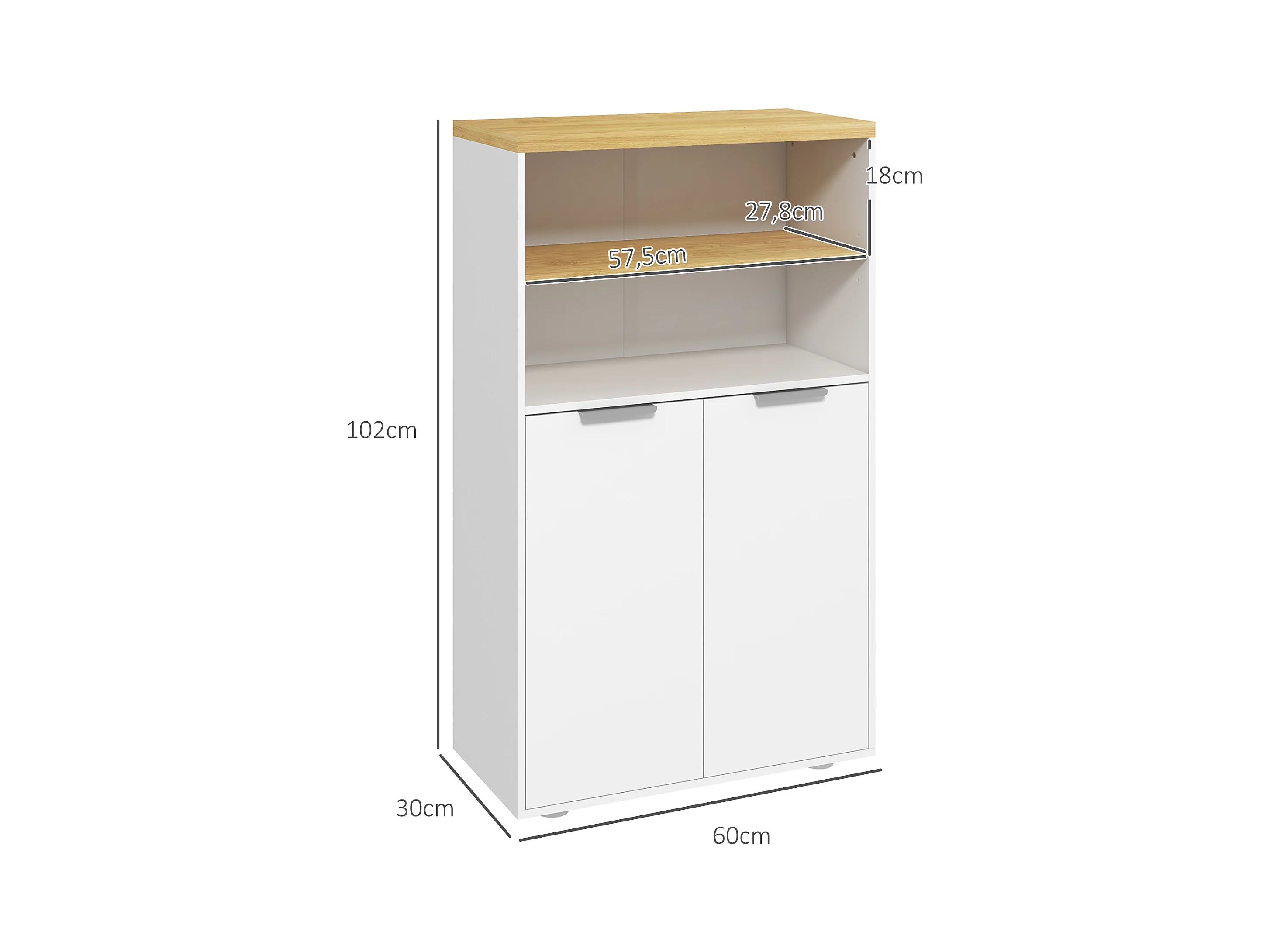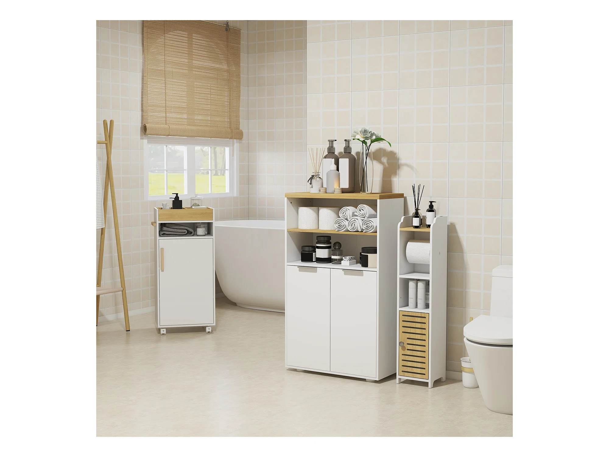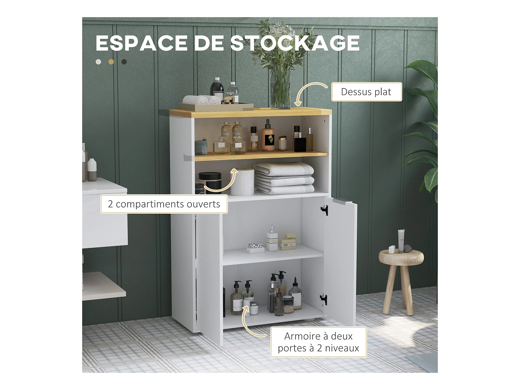 Meuble bas salle de bain - 2 portes, étagère, 2 niches - dim. 60L x 30l x 102H cm - blanc bois clair