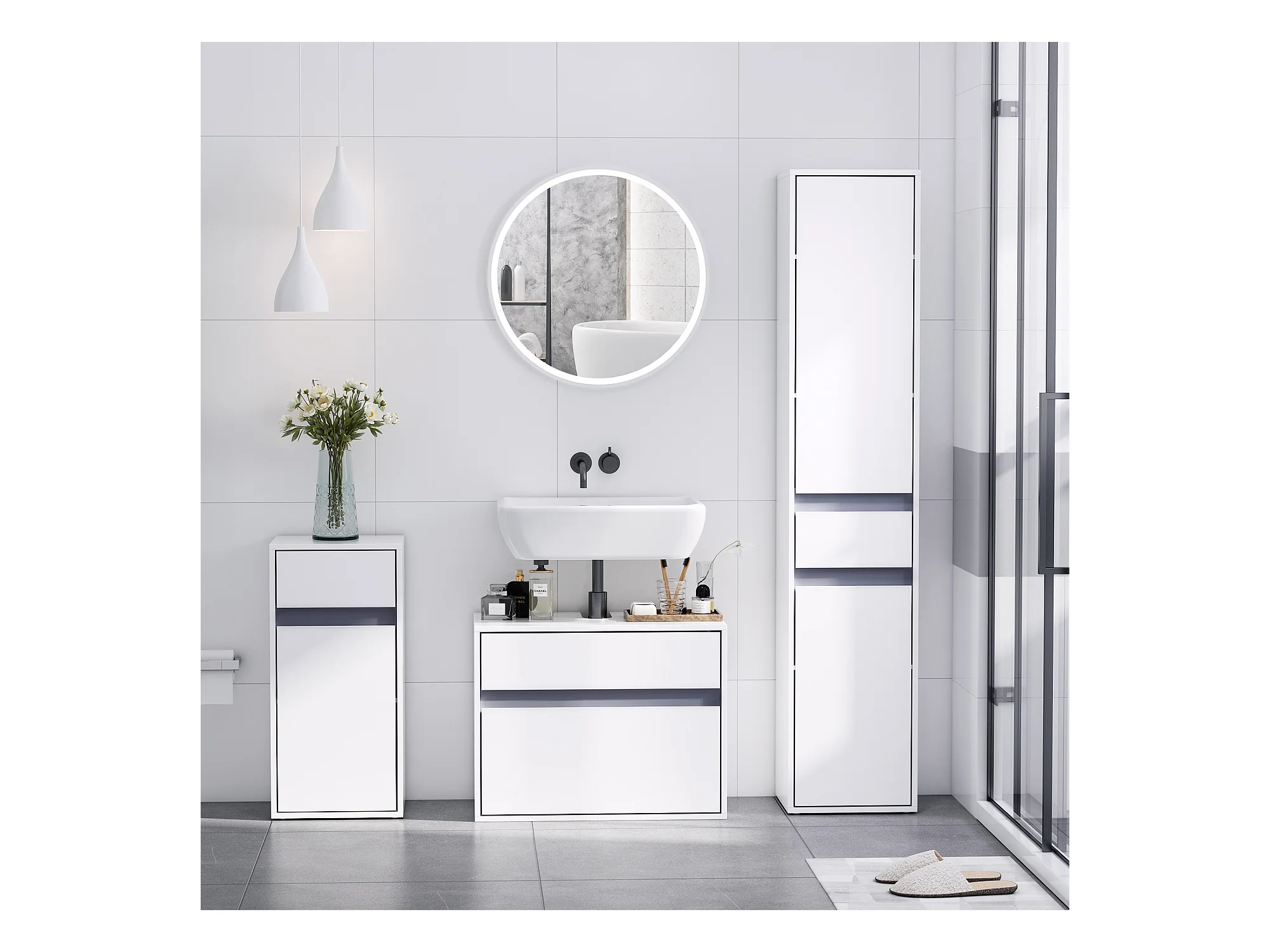 Meuble colonne salle de bain - 3 niches, placard porte étagère, tiroir - MDF blanc gris
